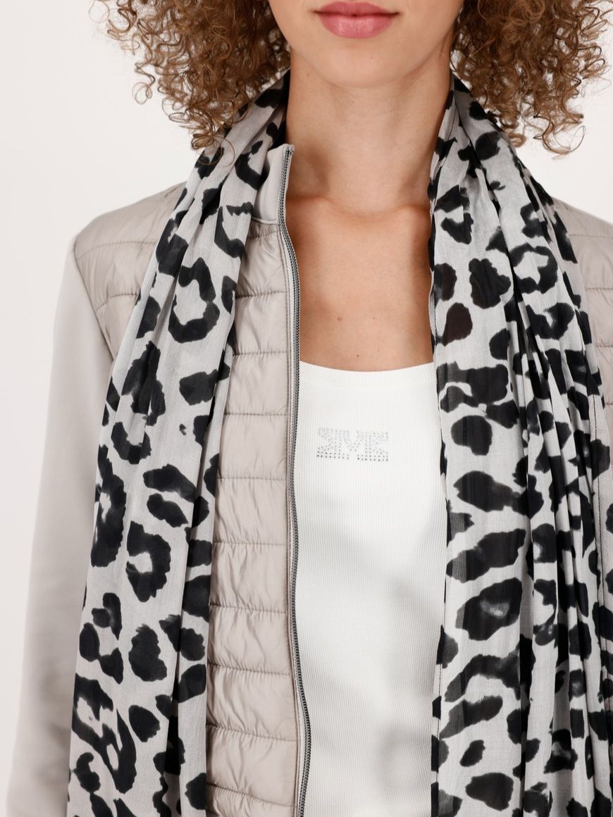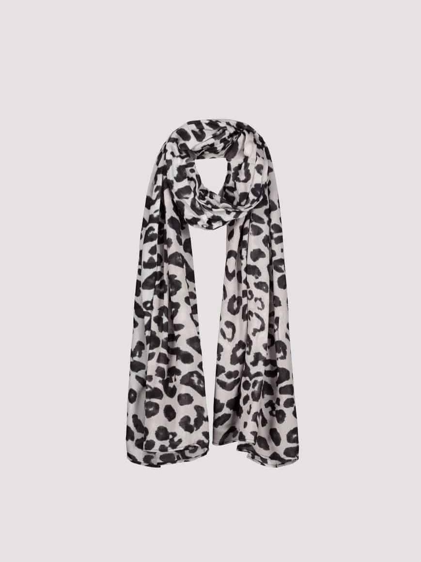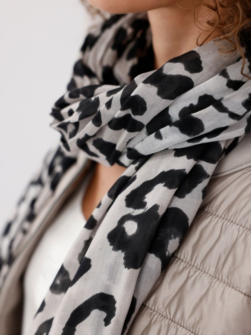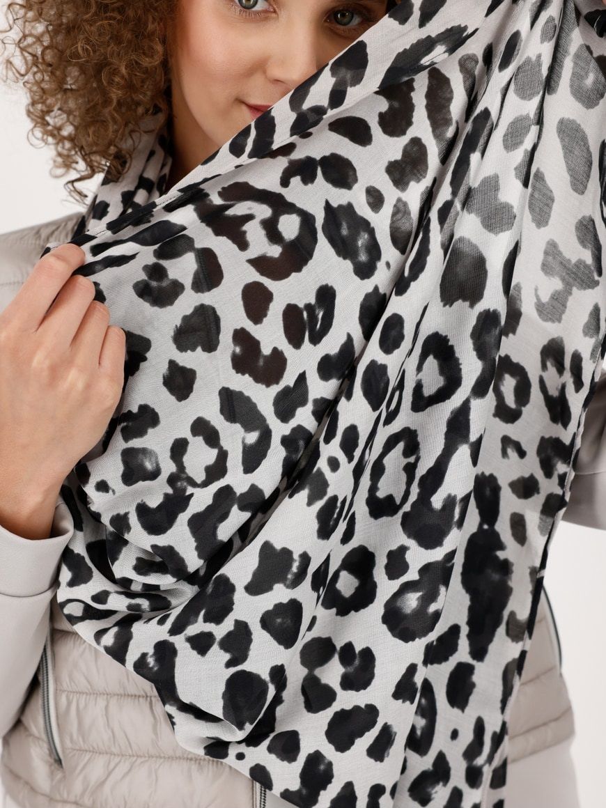 Этот модный шарф из струящейся вискозы украшен выразительным леопардовым принтом.