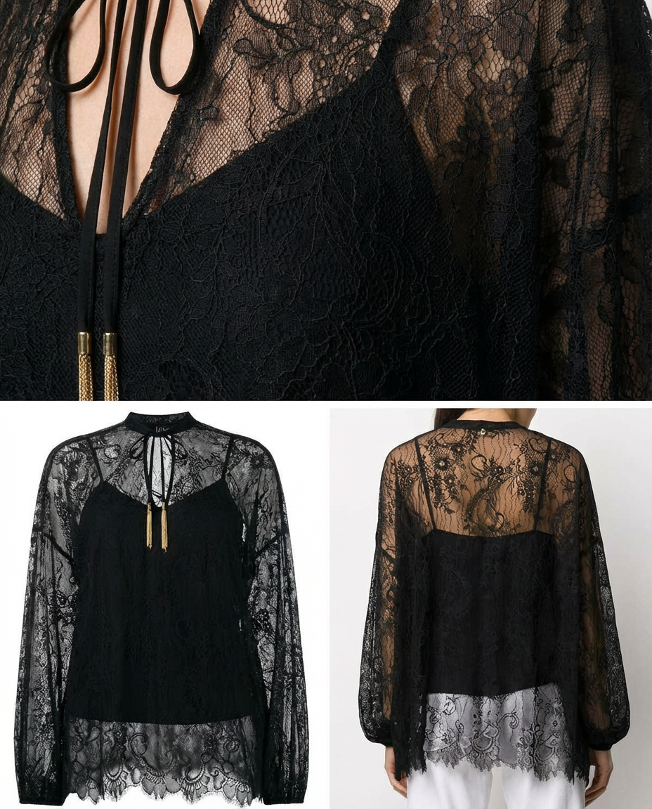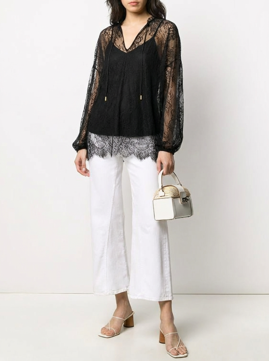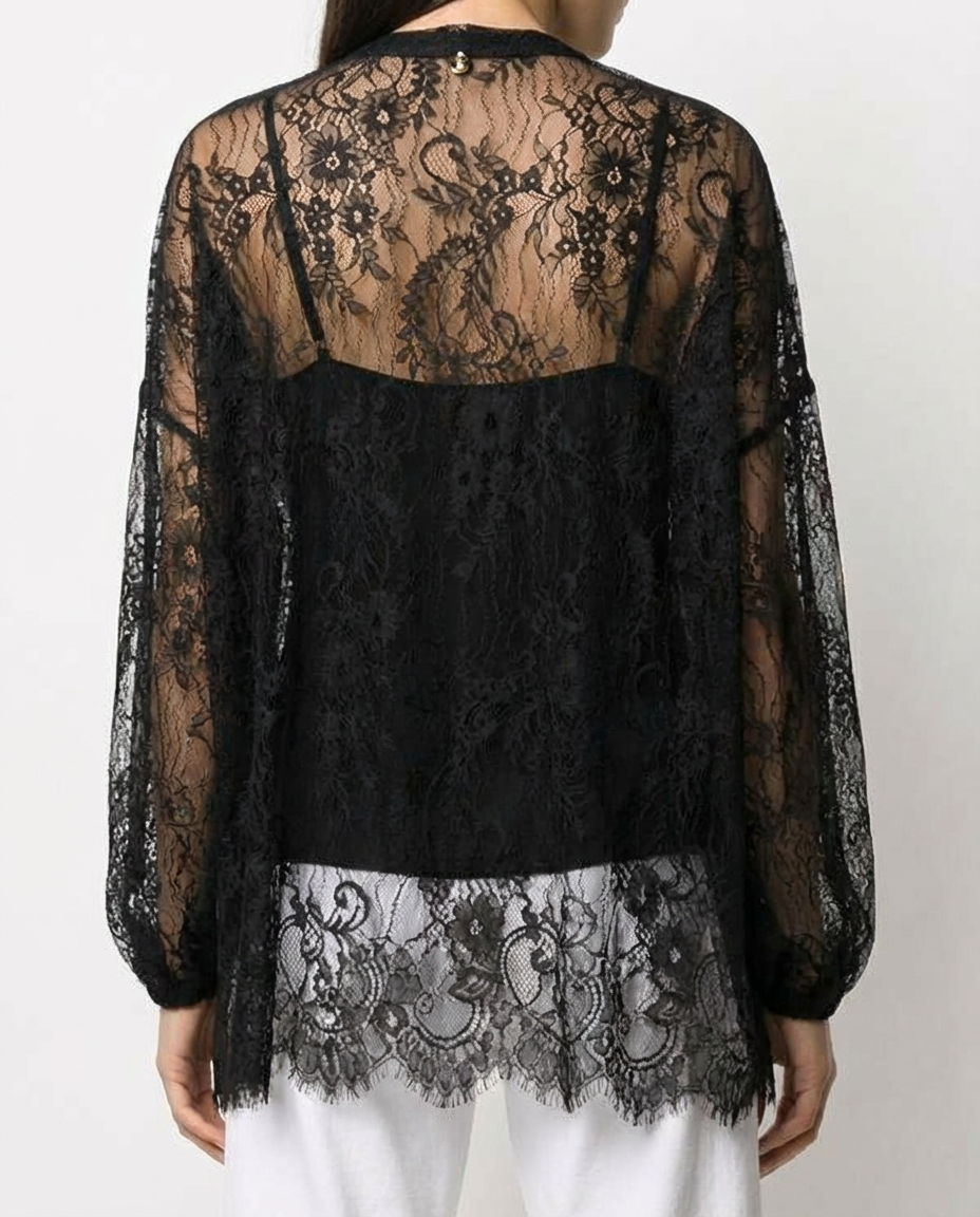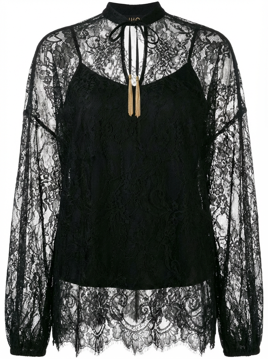 Блуза женская кружевная с длинными рукавами и внутренним топом итальянского бренда Liu Jo.