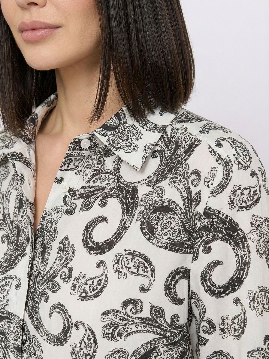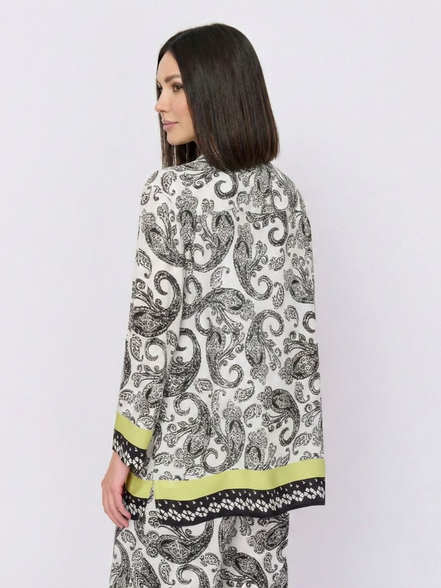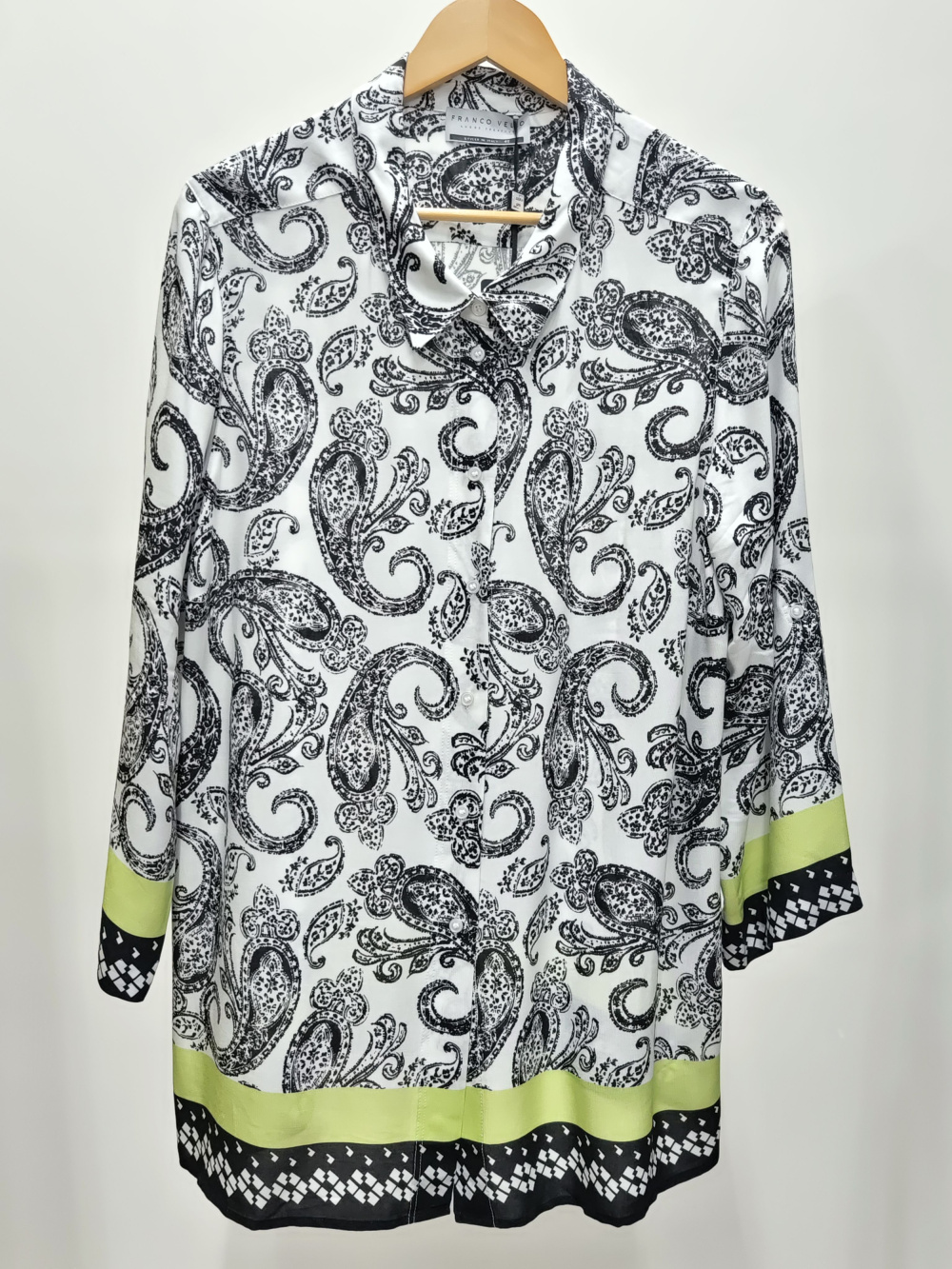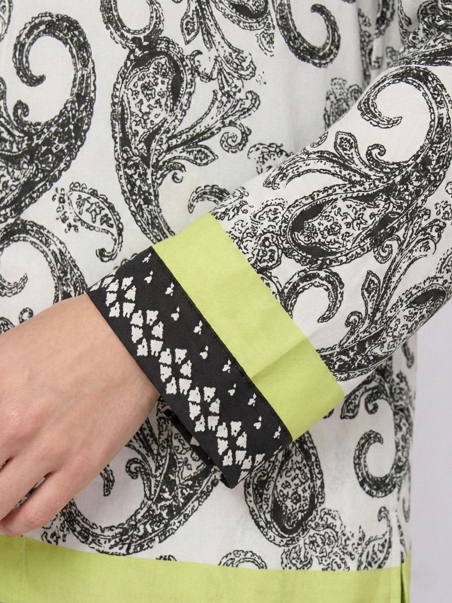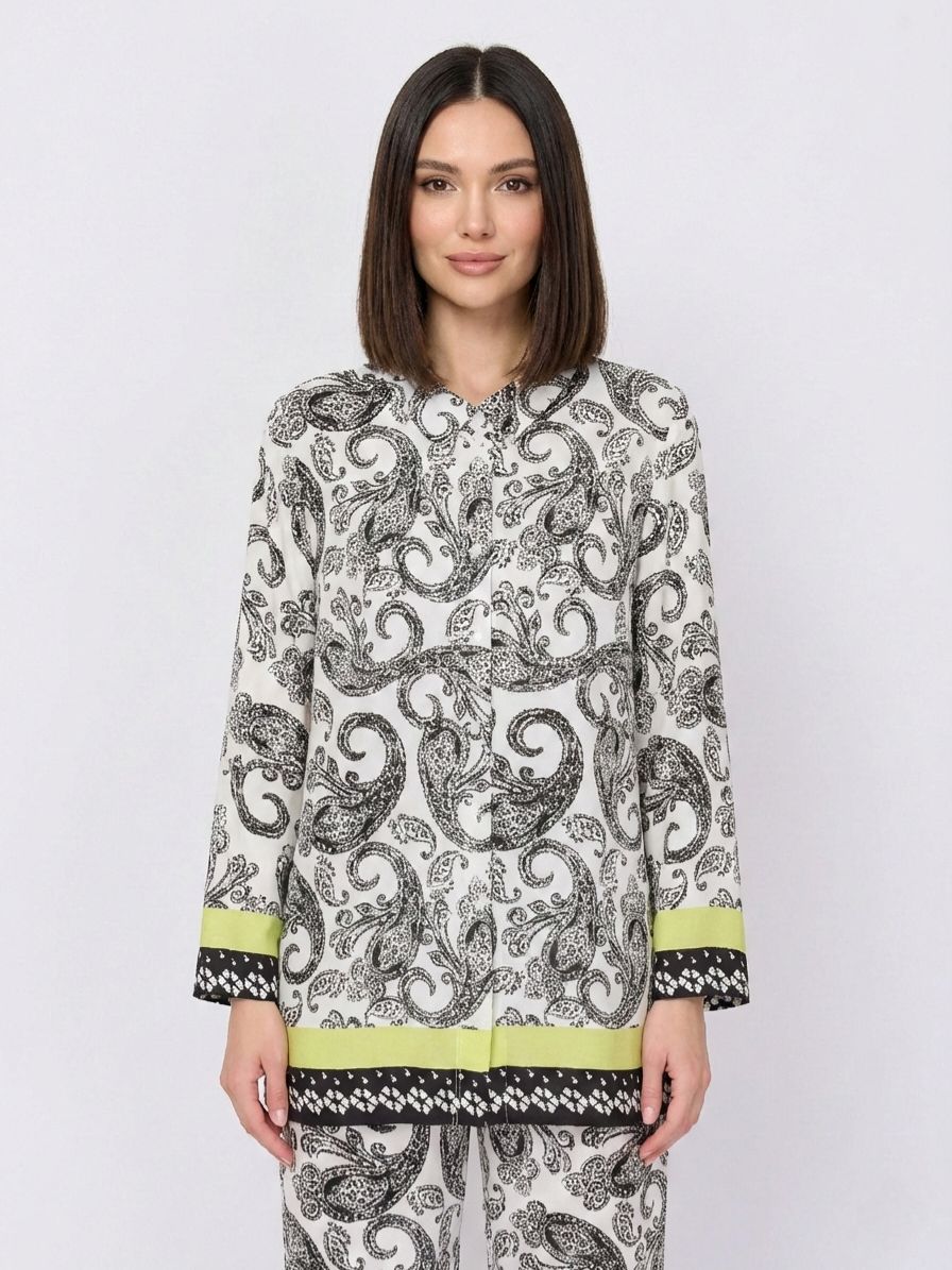 Женская удлиненная блузка-рубашка прямого кроя с принтом пэйсли и ярко-зеленой отделкой итальянского бренда Franco Vello.