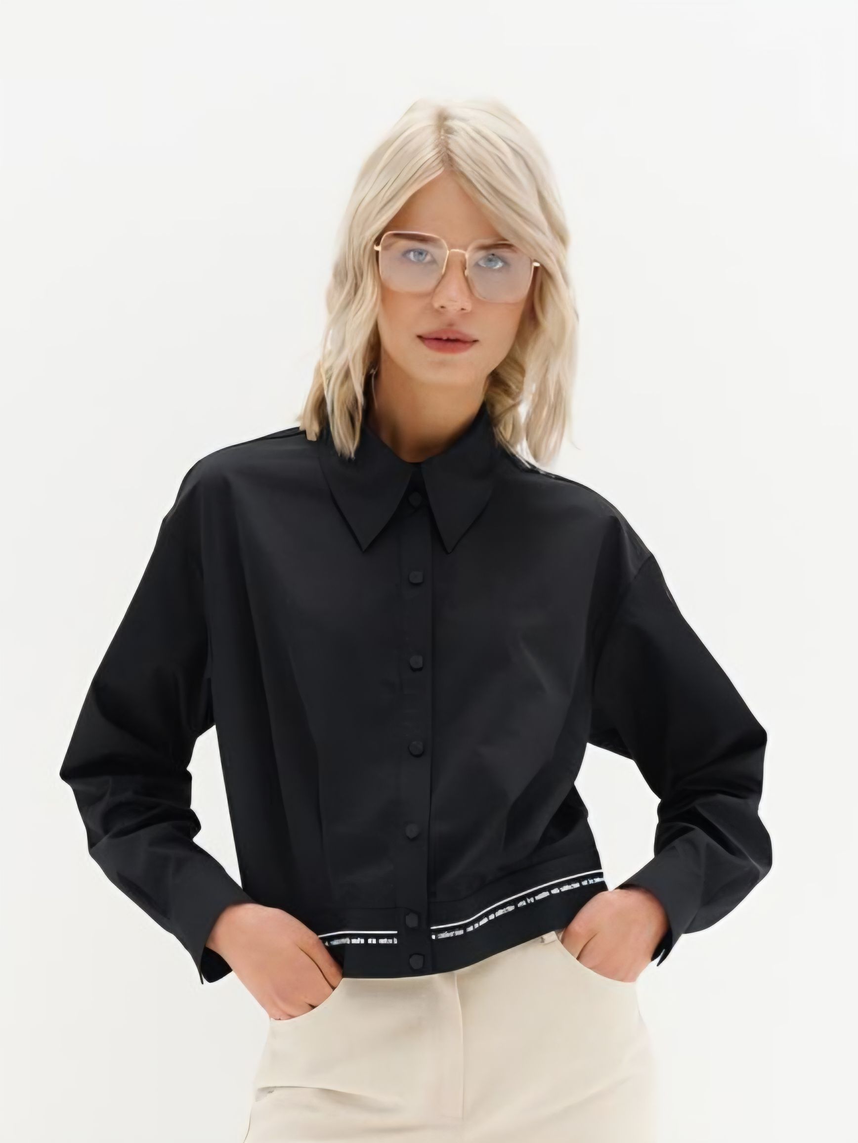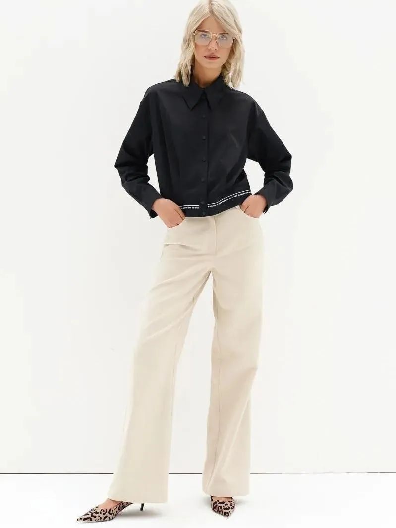 Укороченная чёрная блузка (рубашка) на кнопках с длинными рукавами и отложным воротником Noche Mio.
