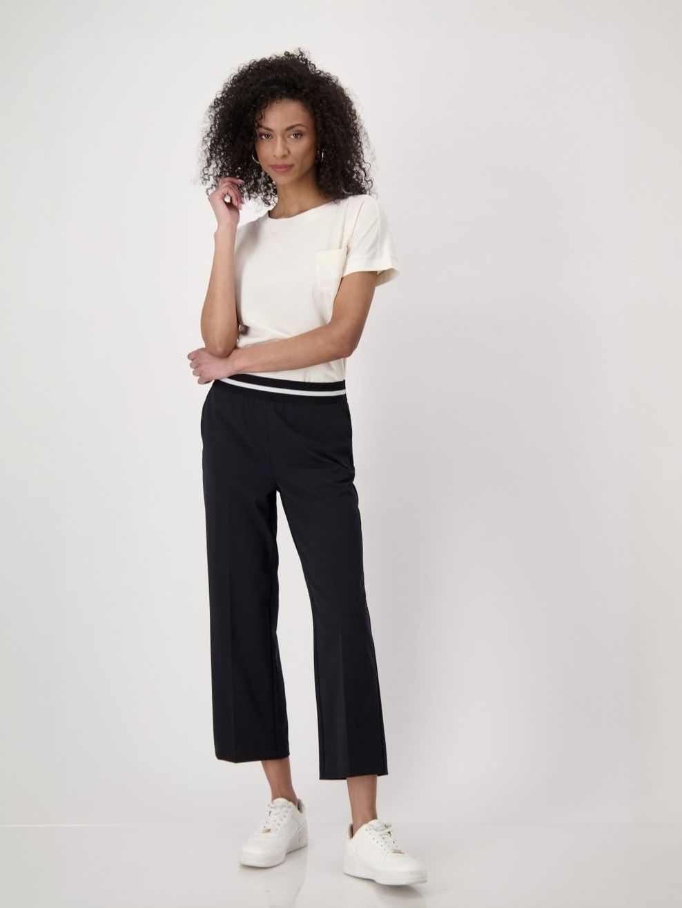 Брюки женские укороченные из тянущегося материала с эластичным поясом прямого кроя немецкого бренда Monari.