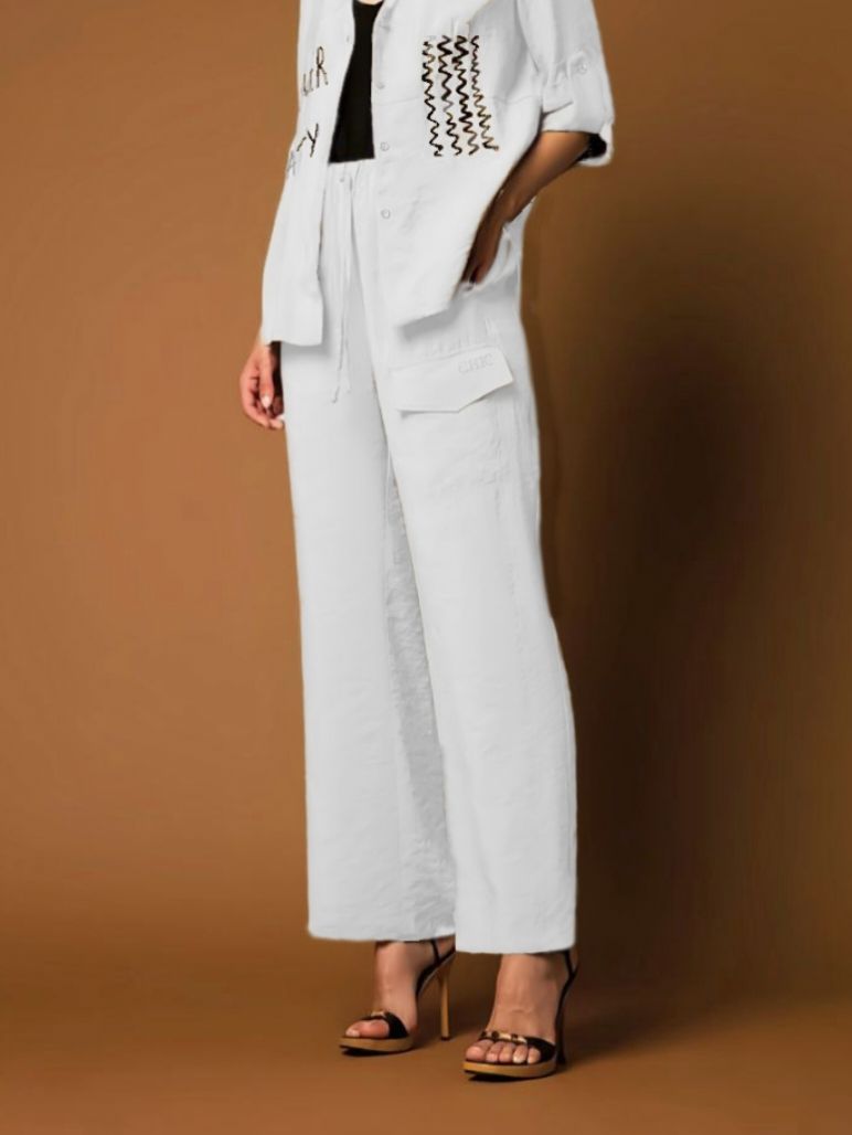 Брюки женские широкого кроя из слегка жатой струящейся ткани итальянского бренда Donne da Sogno.