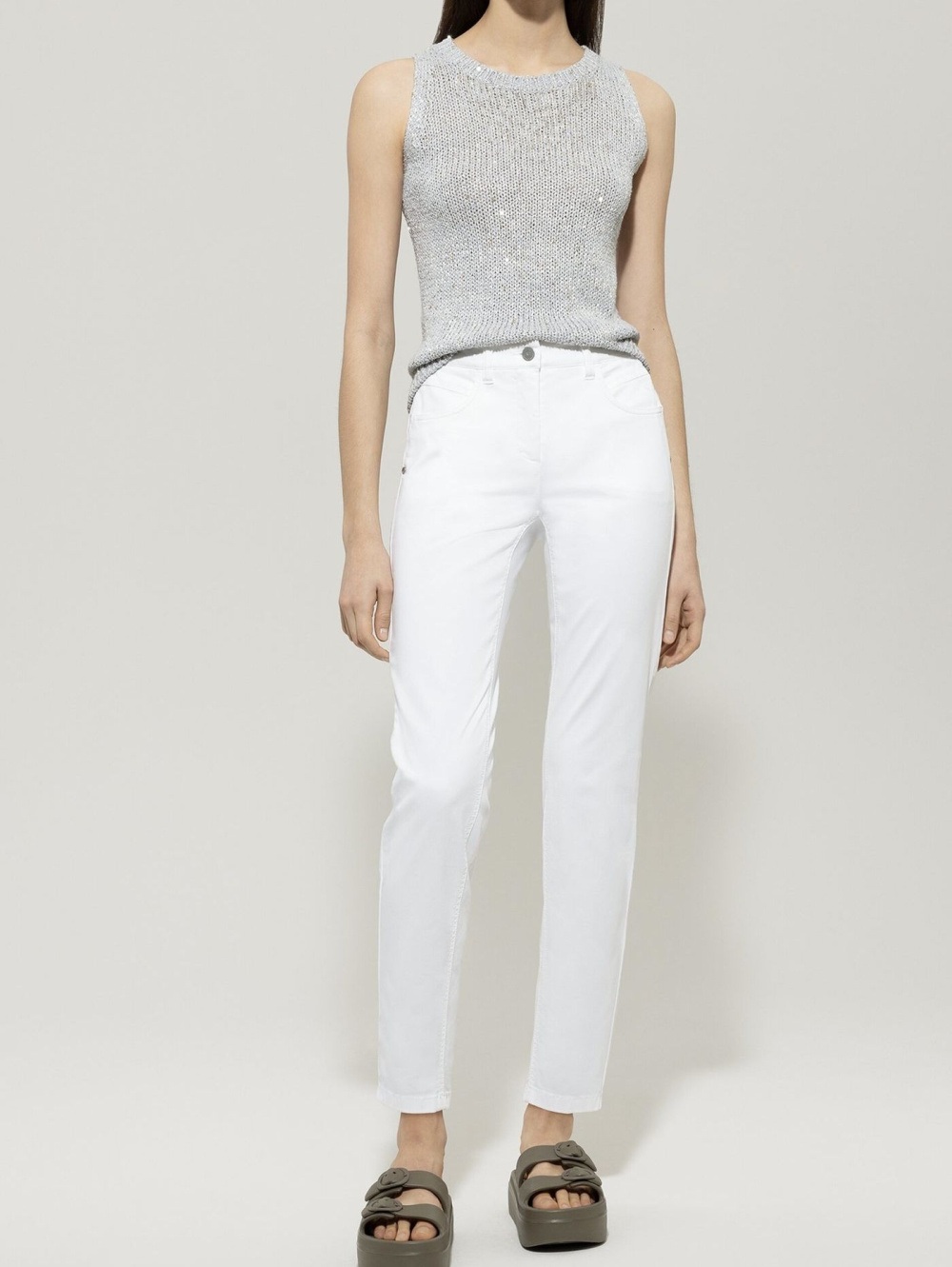 Мягкий эластичный материал и эластичный пояс сзади делают эти брюки особенно удобными.