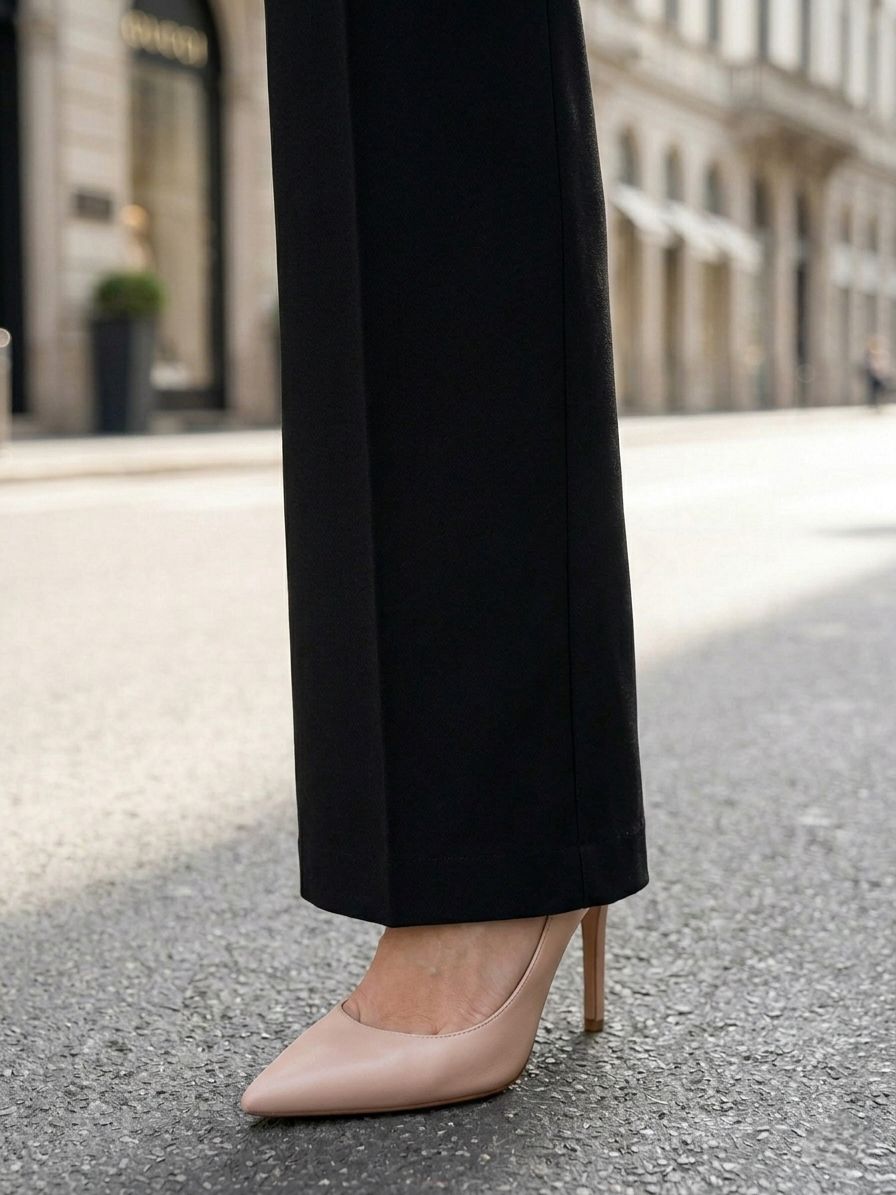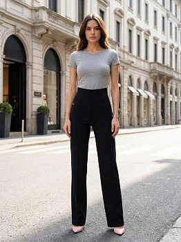 Женские брюки прямого кроя со стелками из плотной трикотажной ткани с эластаном чёрного цвета на широком поясе-резинке итальянского бренда Franco Vello.