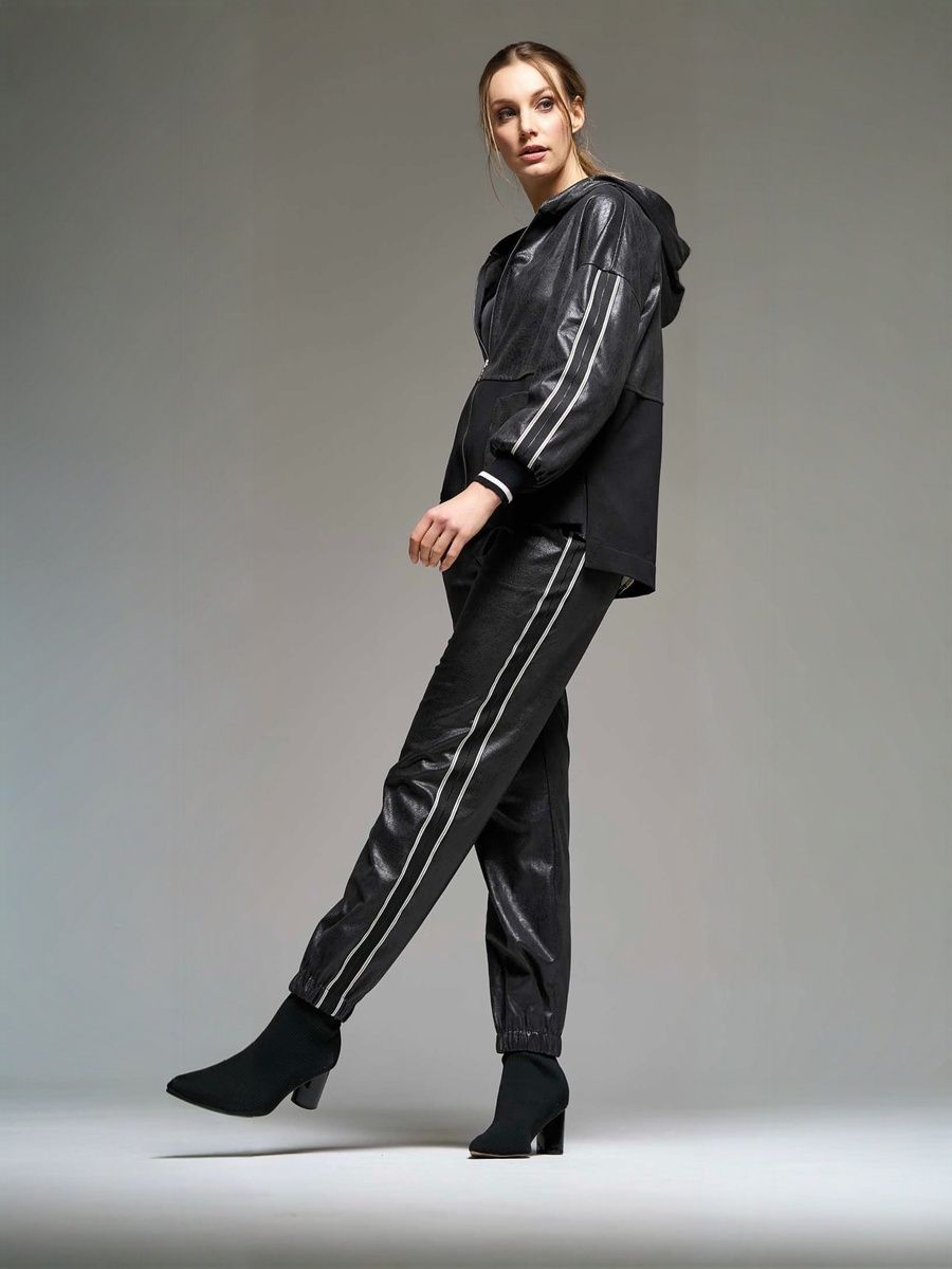 Женске брюки (джоггеры) из плотного, эластичного материала под "экокожу" с матовым блеском в стиле спорт-шик итальянского бренда Donne da Sogno.