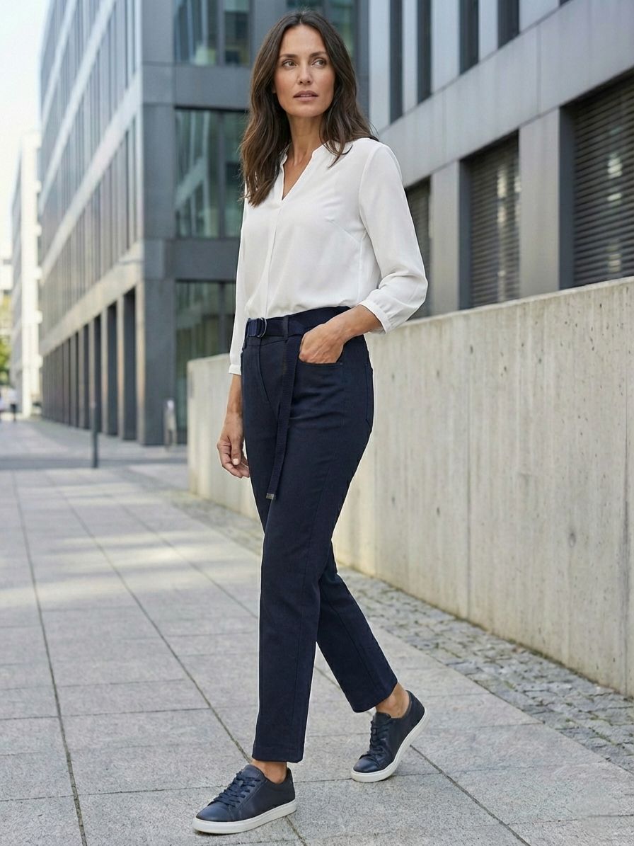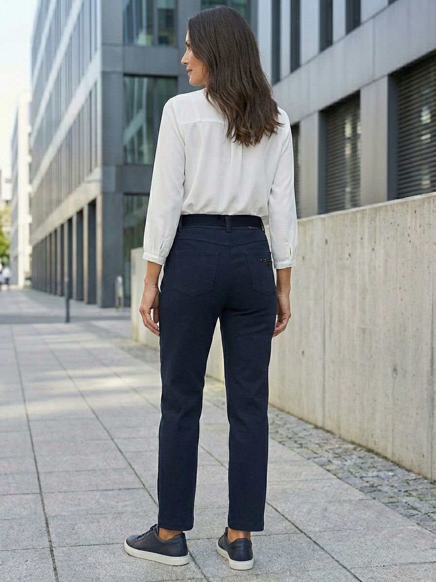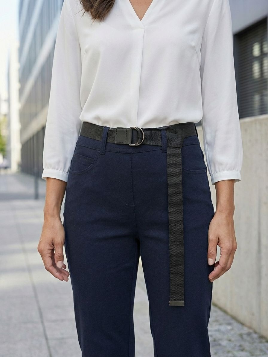 Женские слегка зауженные брюки из плотной, эластичной ткани с текстильным ремнём итальянского бренда Franco Vello.