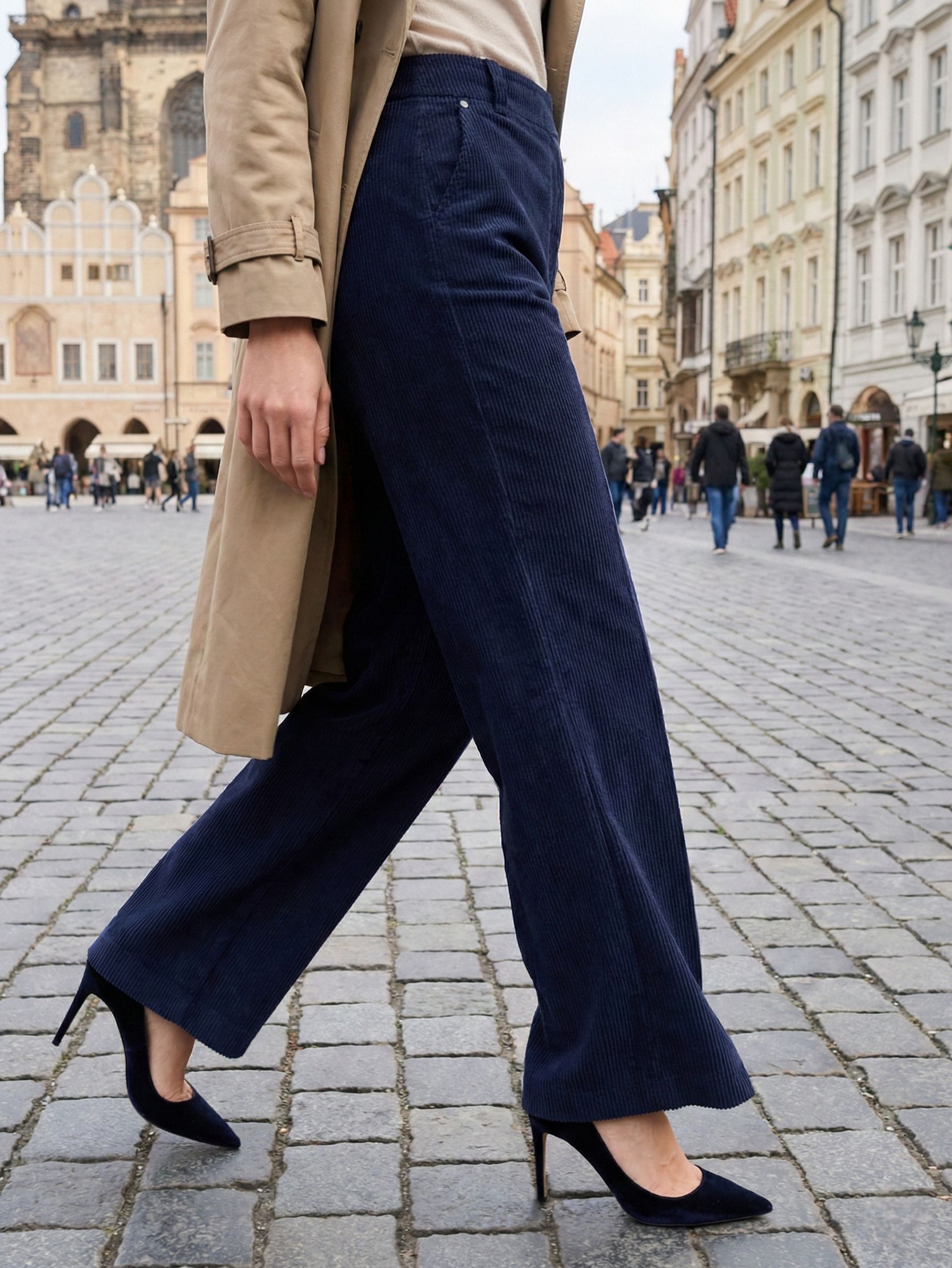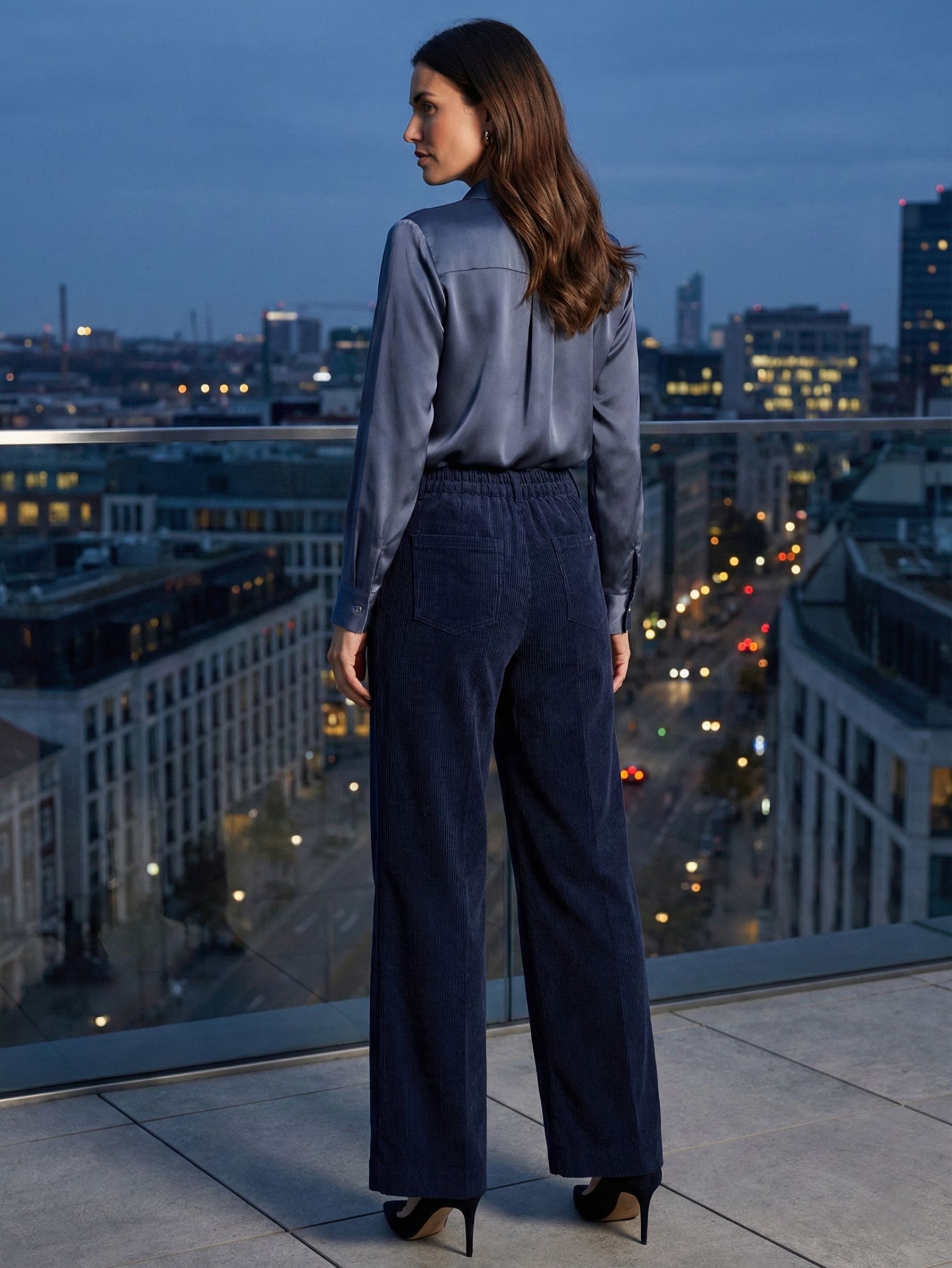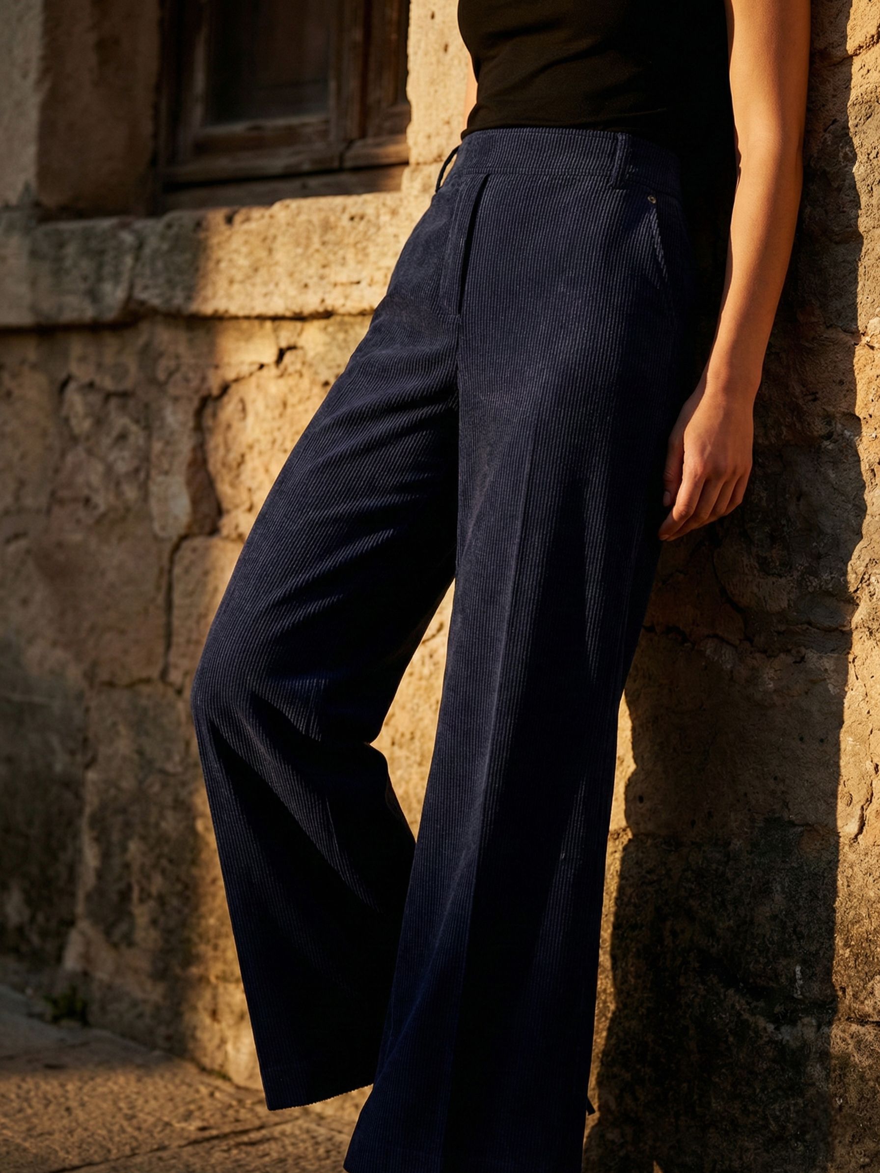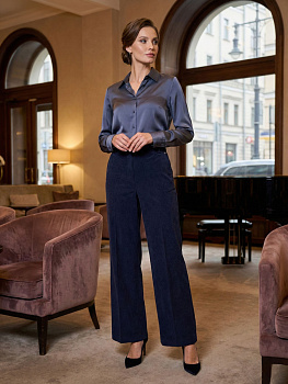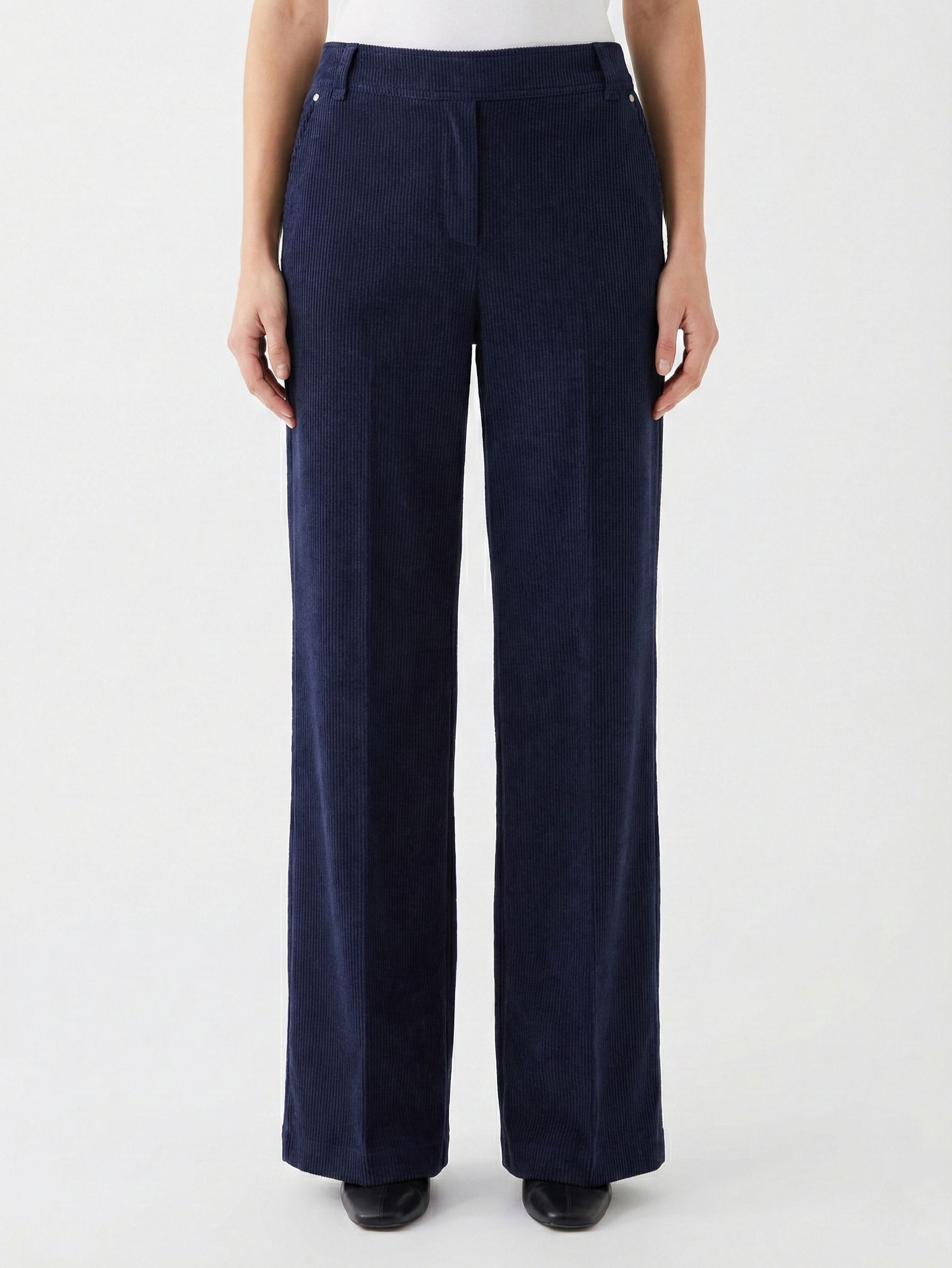 Женские брюки прямого кроя на поясе-резинке из эластичного материала с вельветовой фактурой итальянского бренда Franco Vello.