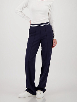 Непринуждённый стиль сочетается с повседневным комфортом благодаря этим свободным джоггерам немецкого бренда Monari насыщенного тёмно-синего оттенка.