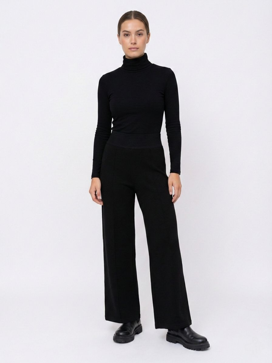 Широкие женские брюки прямого кроя на поясе-резинке итальянского бренда Franco Vello.
