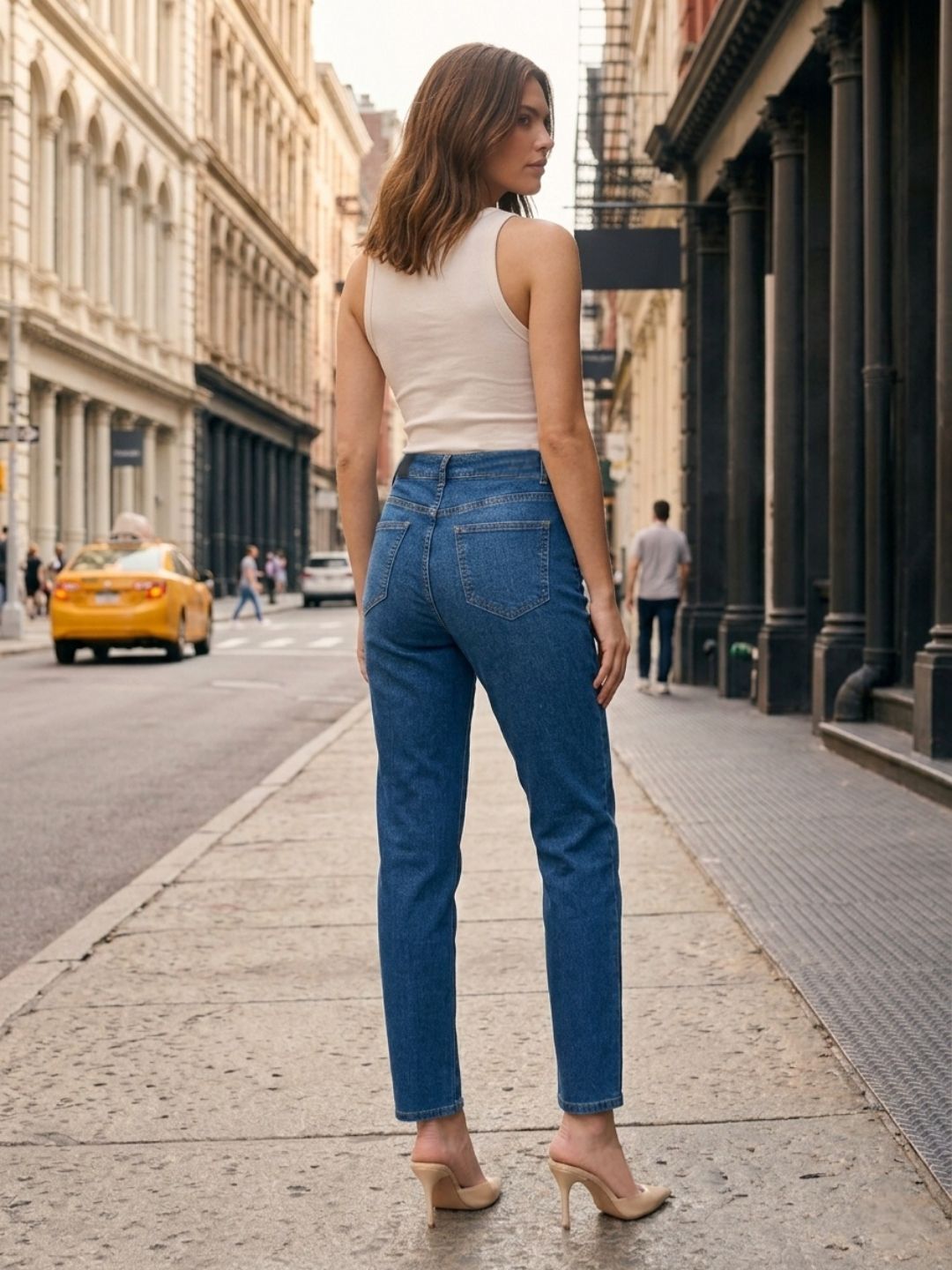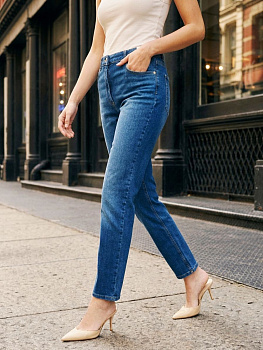 Джинсовые женские брюки (джинсы) прямого кроя из плотной хлопковой ткани с эластаном итальянского бренда Franco Vello.