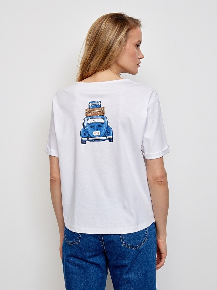 Футболка женская из 100% мерсеризованного хлопка с принтом «машинка» на спинке немецкого бренда BULMER.