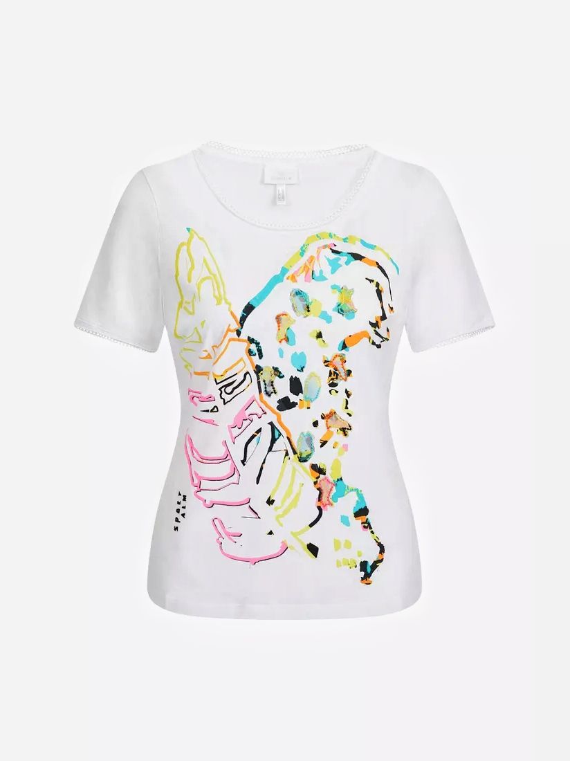Футболка с круглым вырезом и анималистическим принтом с вышивкой бисером австрийского бренда Sportalm.