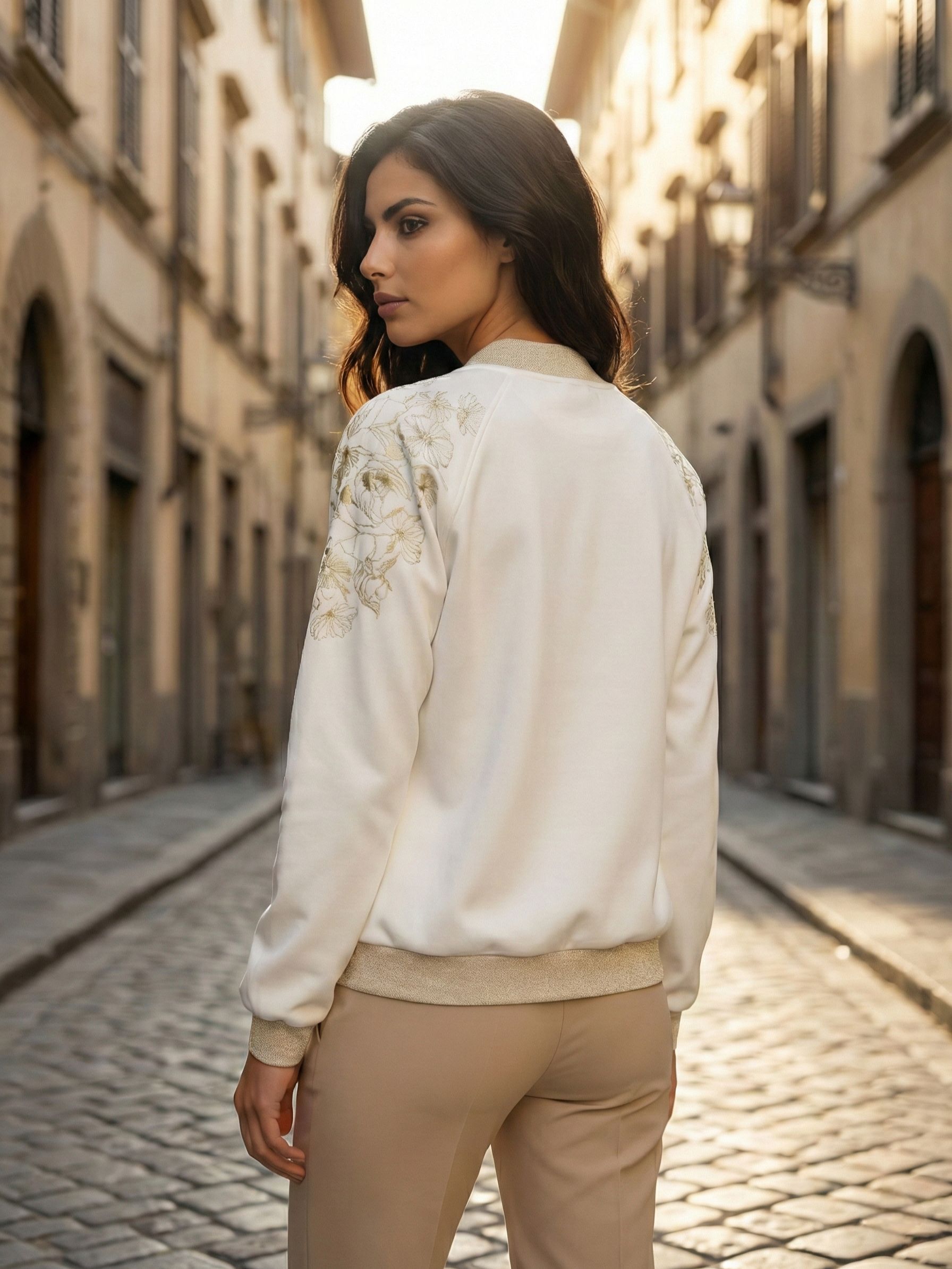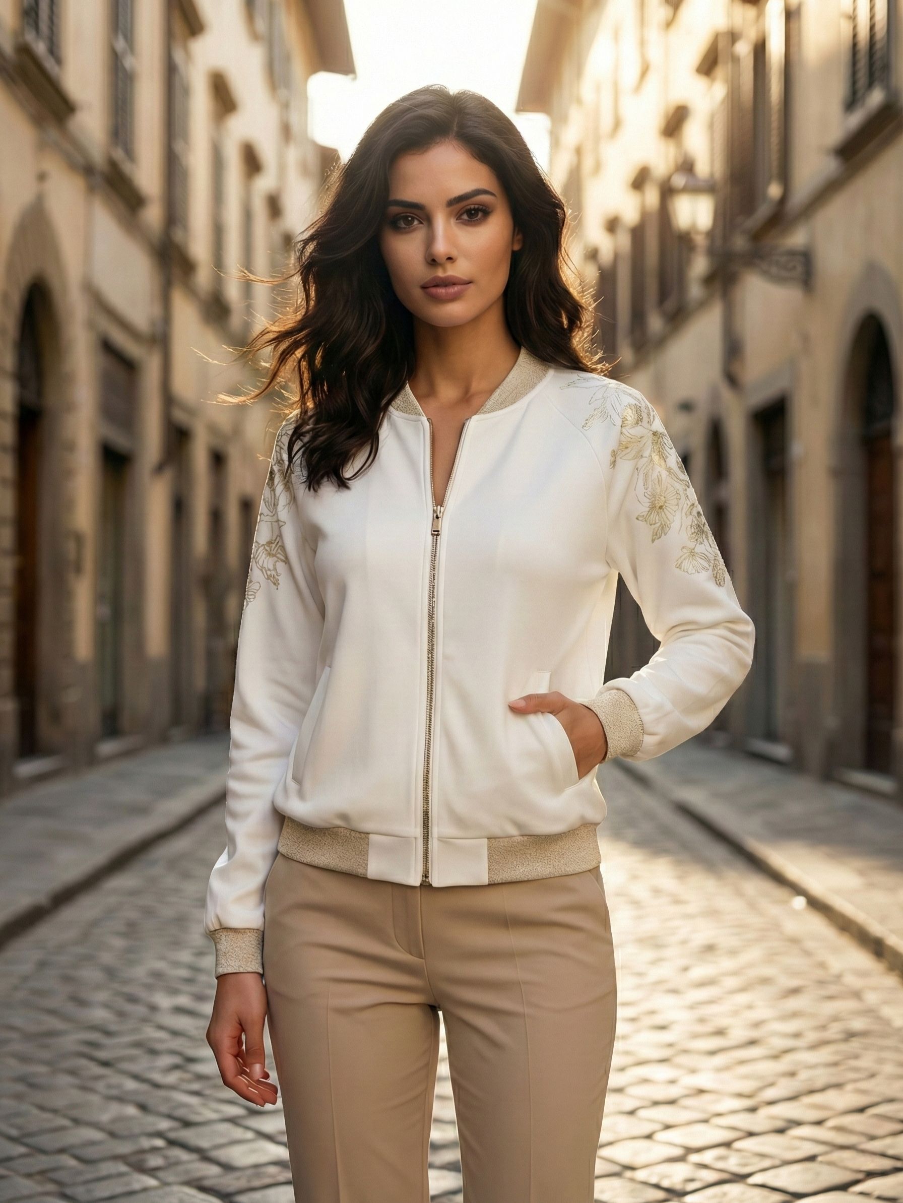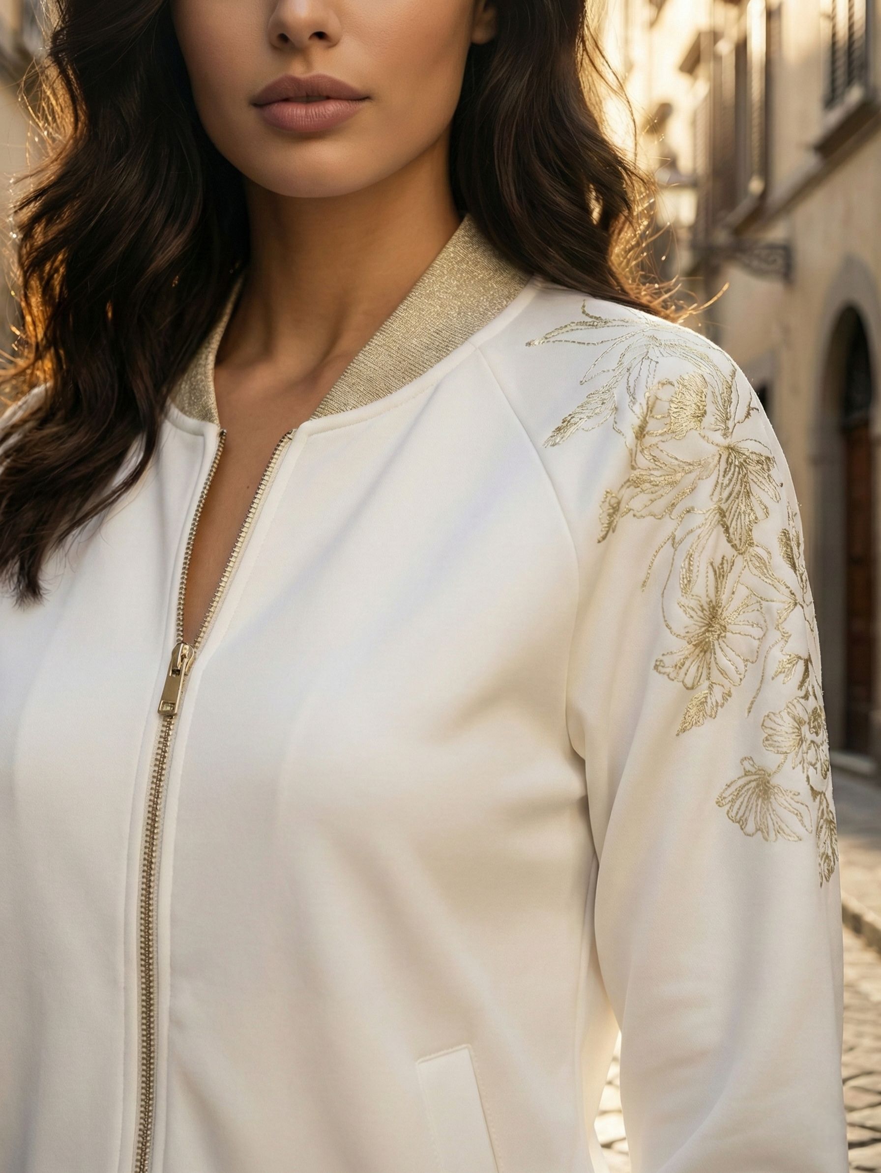 Женский жакет на молнии из эластичной трикотажной ткани итальянского бренда Franco Vello.