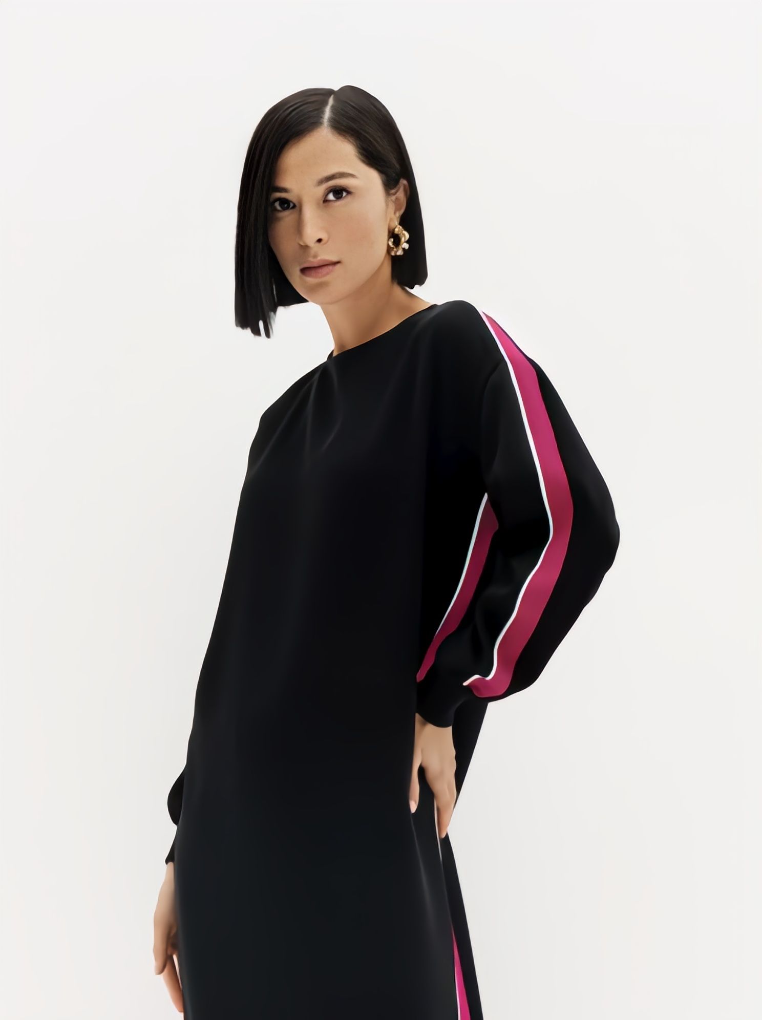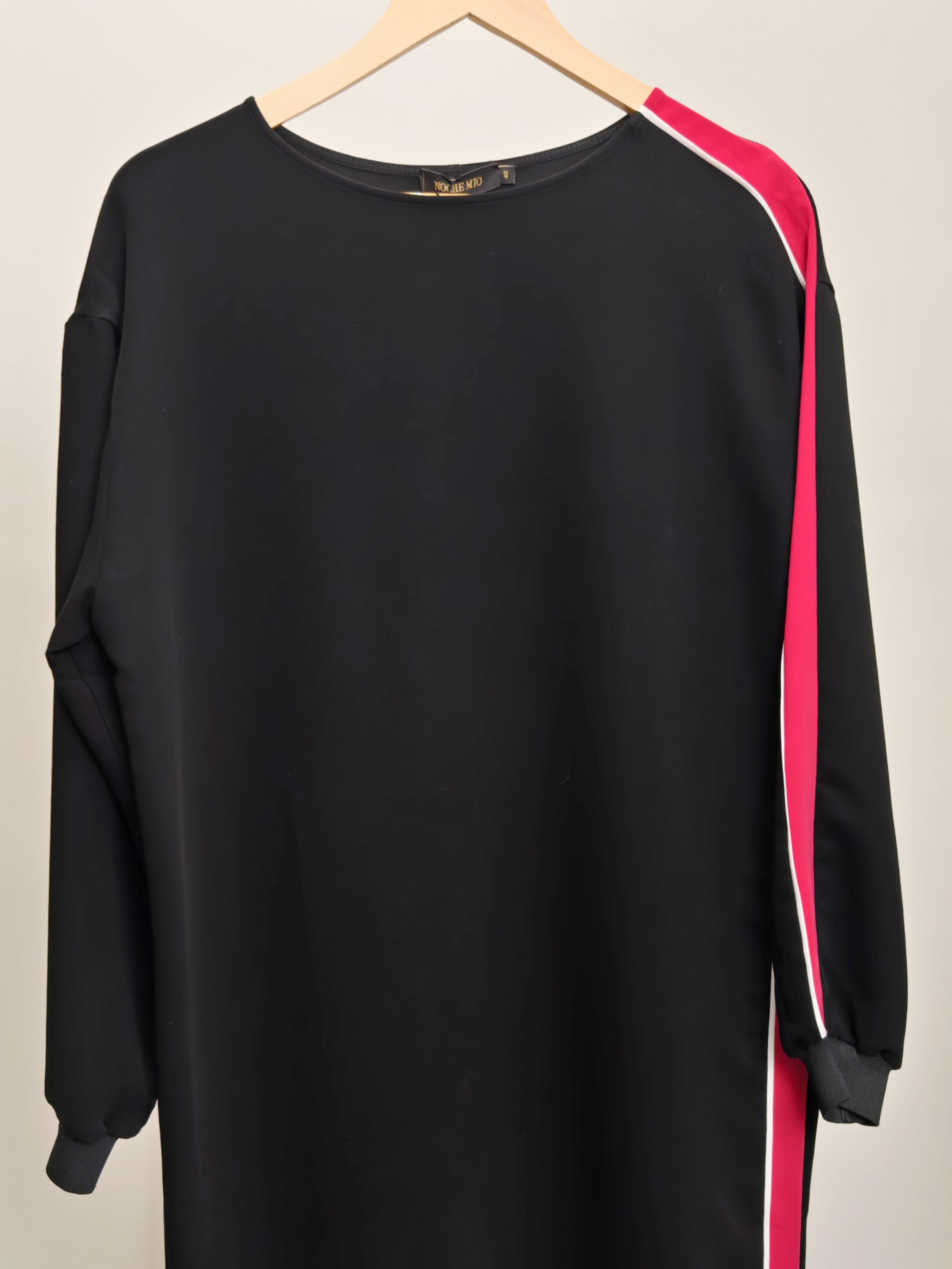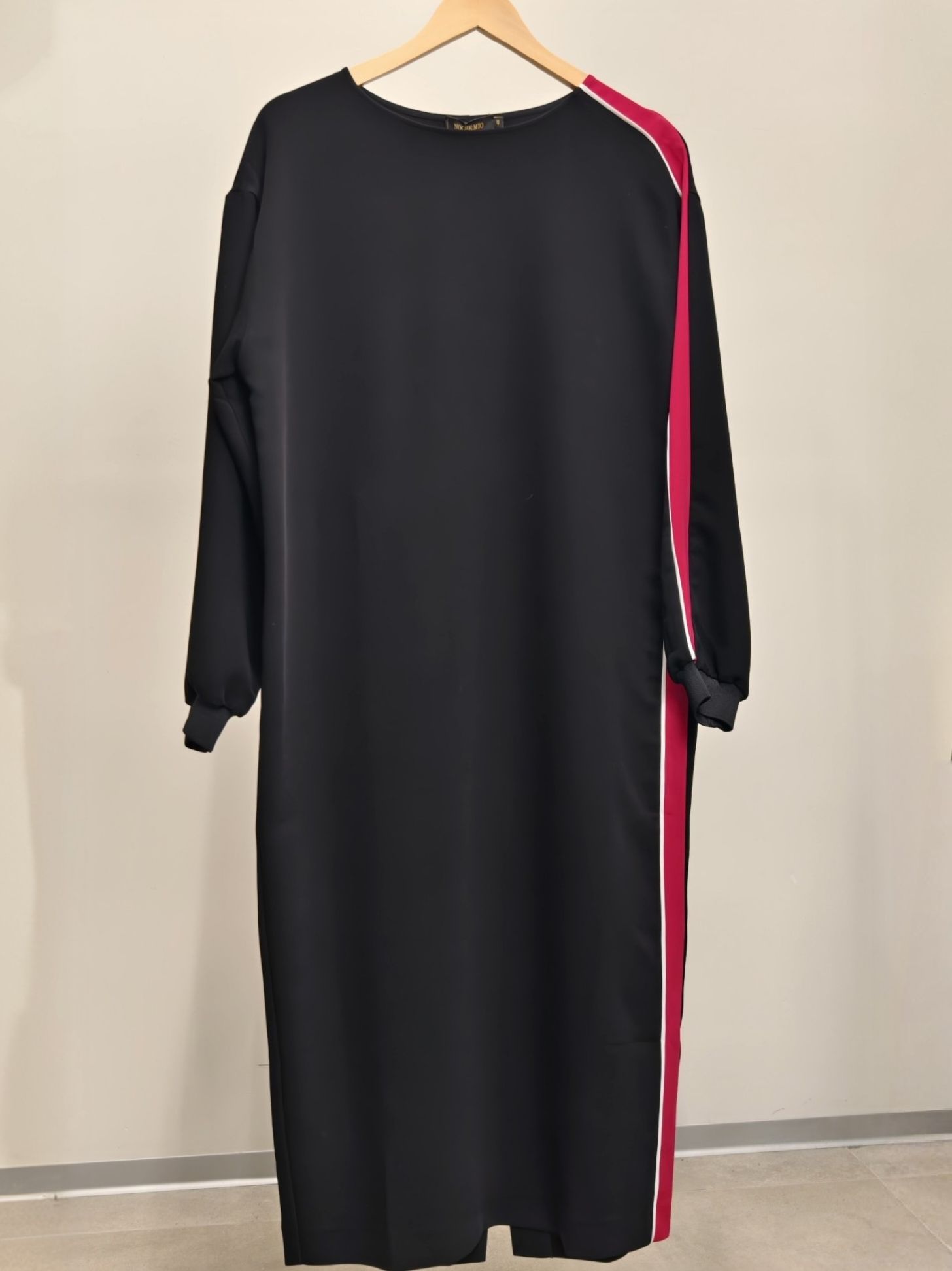Платье женское трикотажное длины миди с яркой отделкой цвета фуксия бренда Noche Mio.