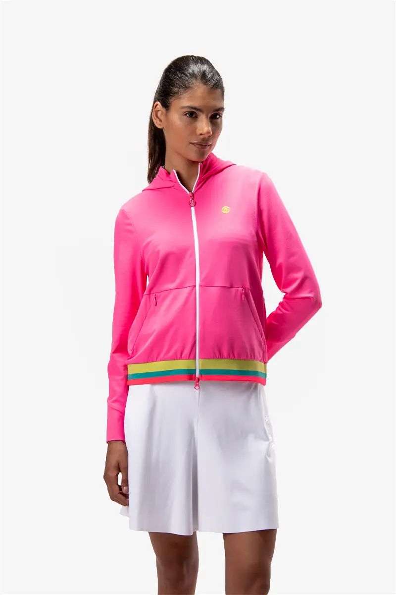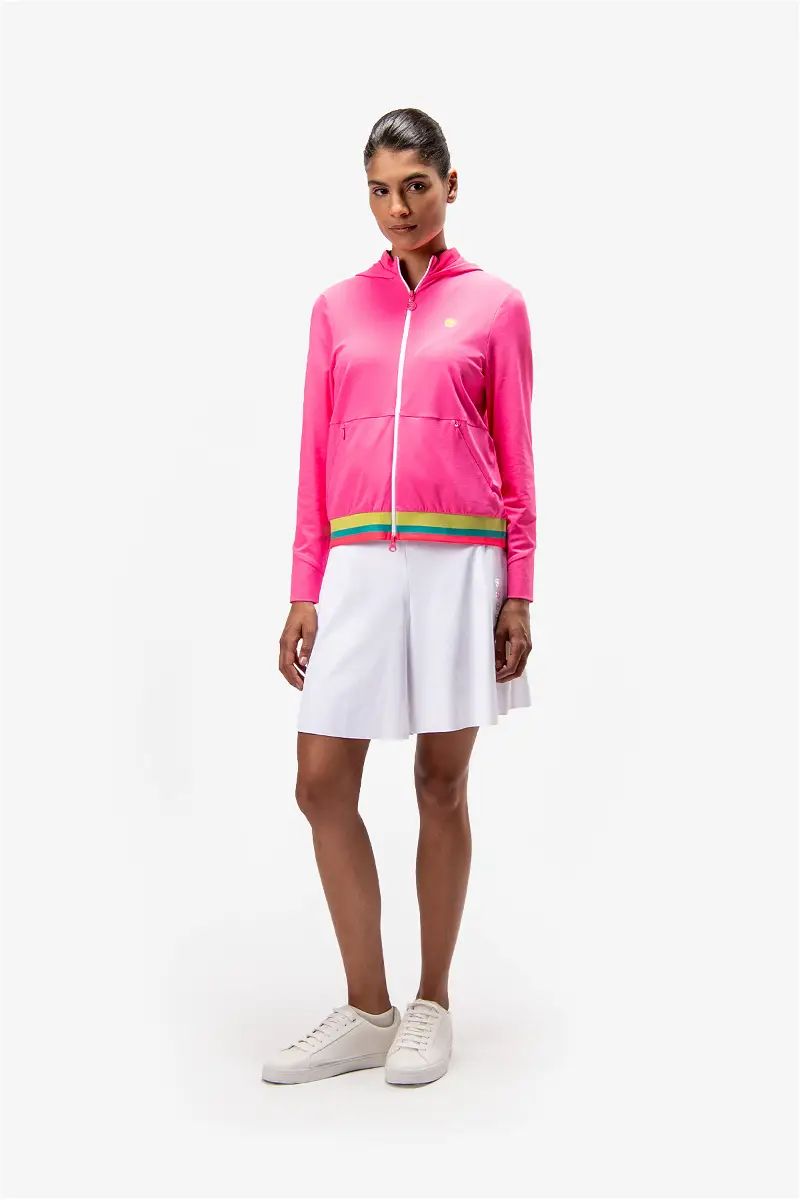 Толстовка спортивная (худи) с воротником-стойкой из воздушной перфорированной ткани в сочетании с эластичной тканью «скуба» австрийского бренда Sportalm.