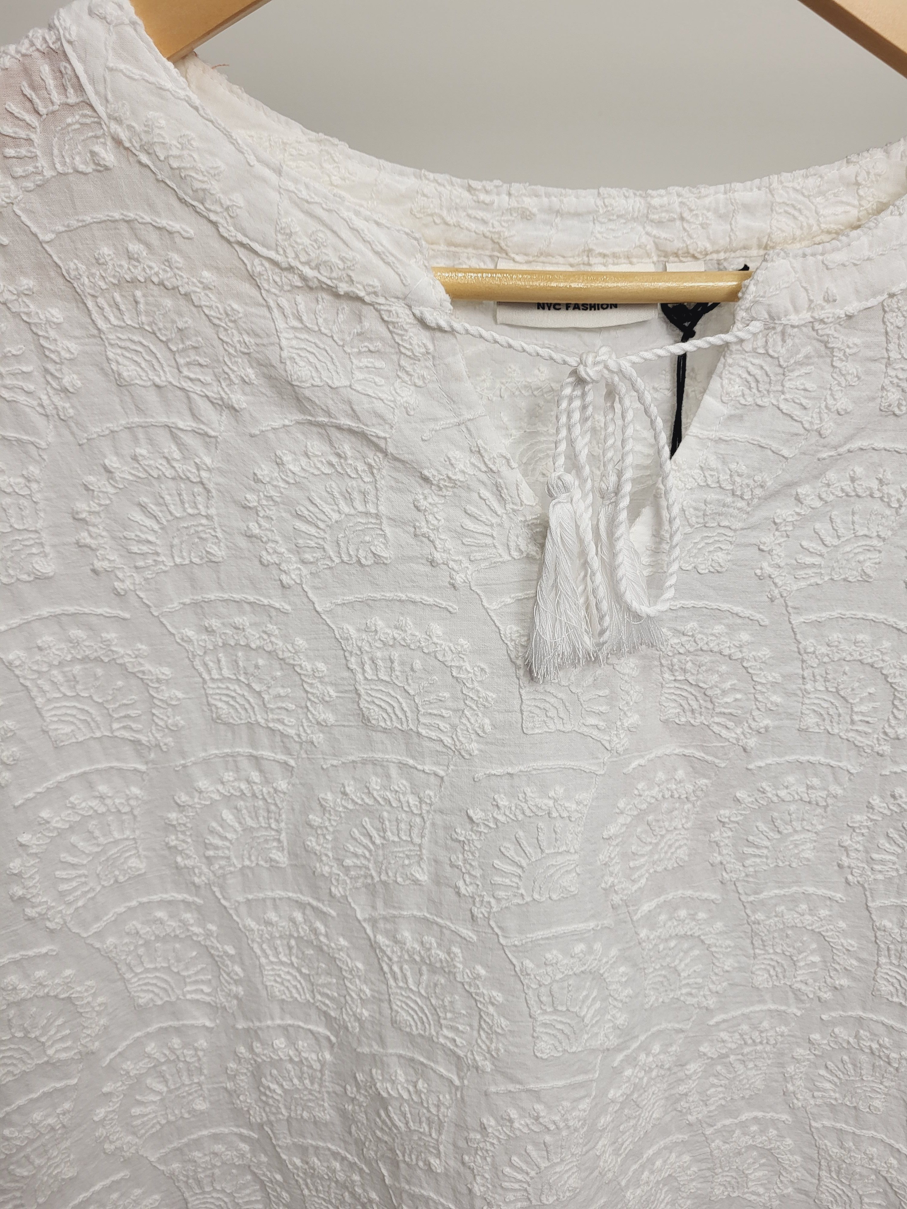 Легкая женская блуза прямого кроя из непрозрачного хлопкового шитья немецкого бренда Broadway NYC Fashion.
