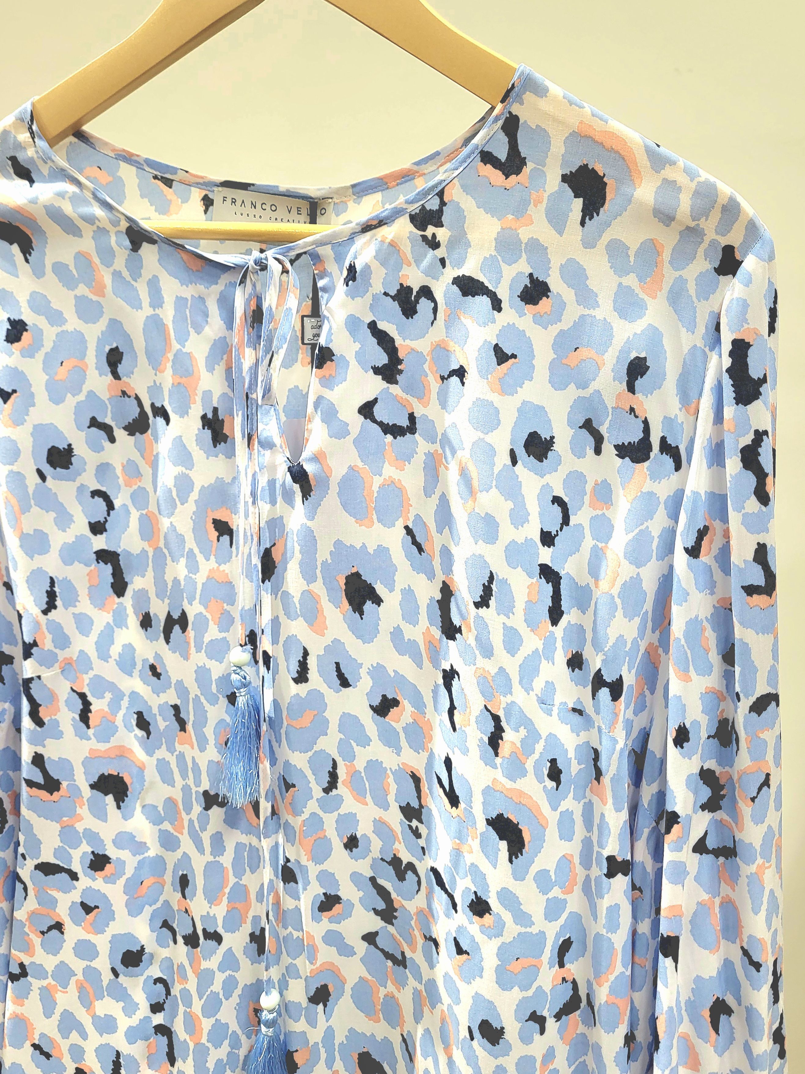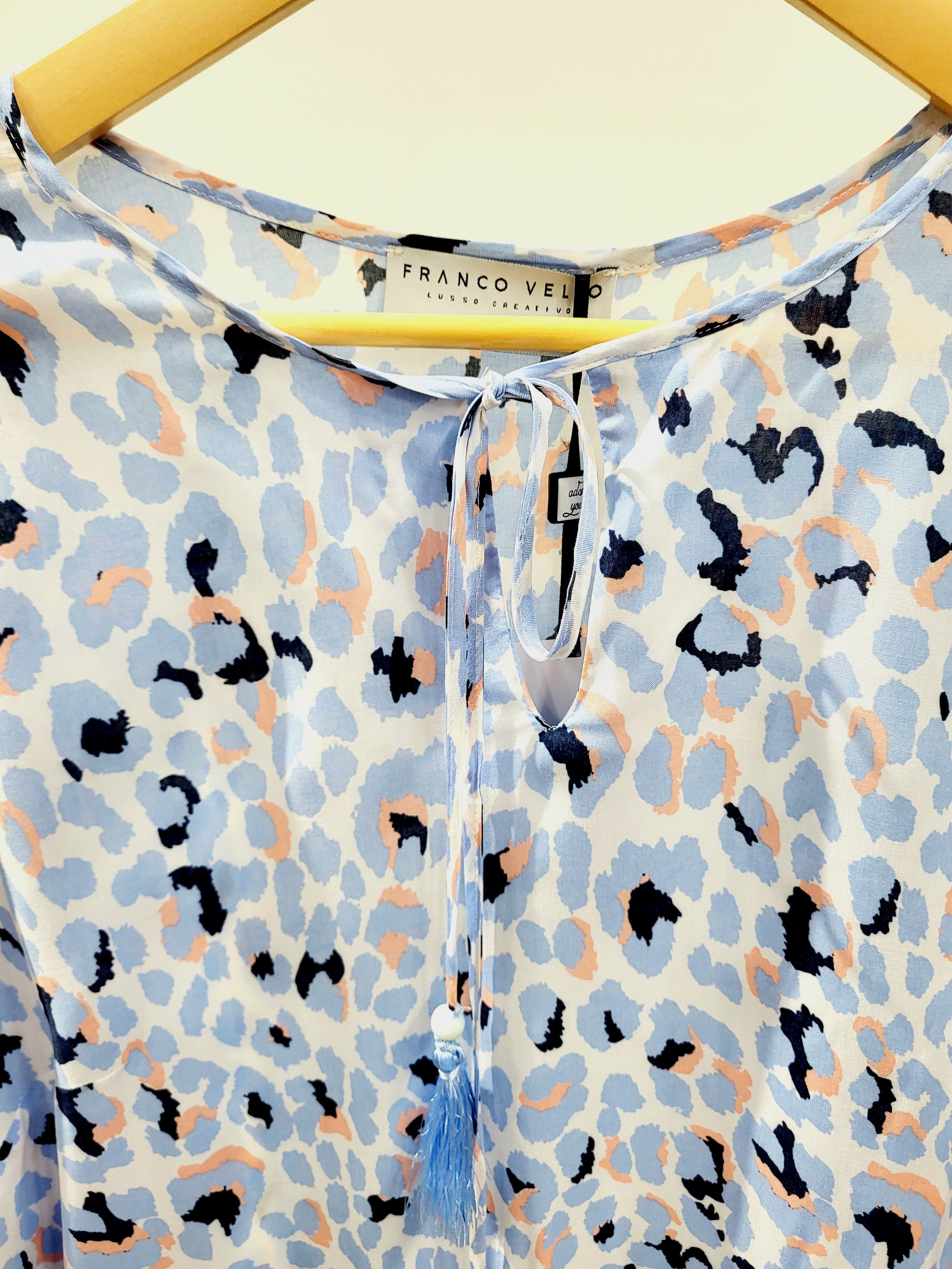 Блуза женская голубого цвета с анималистическим принтом итальянского бренда Franco Vello.