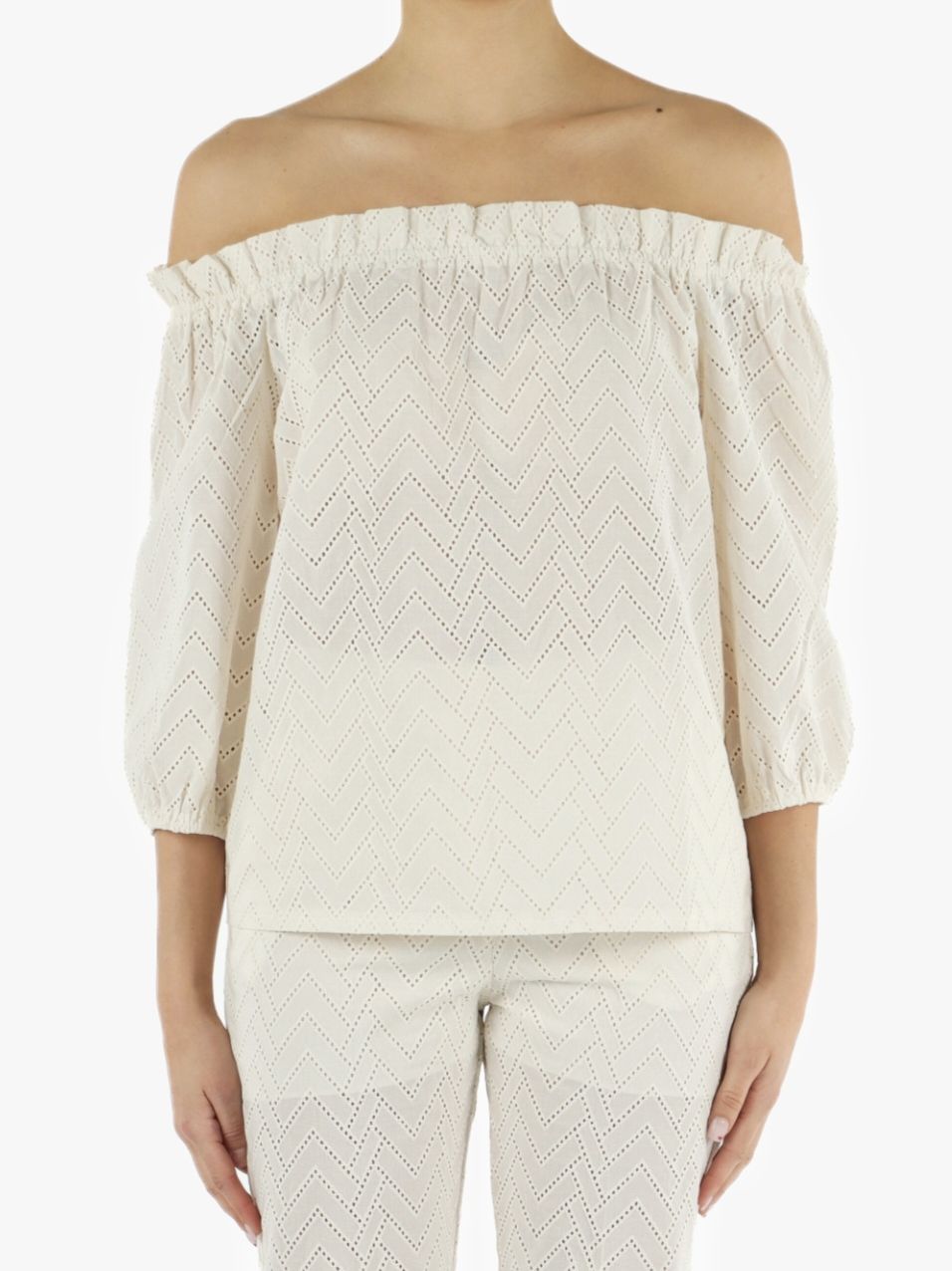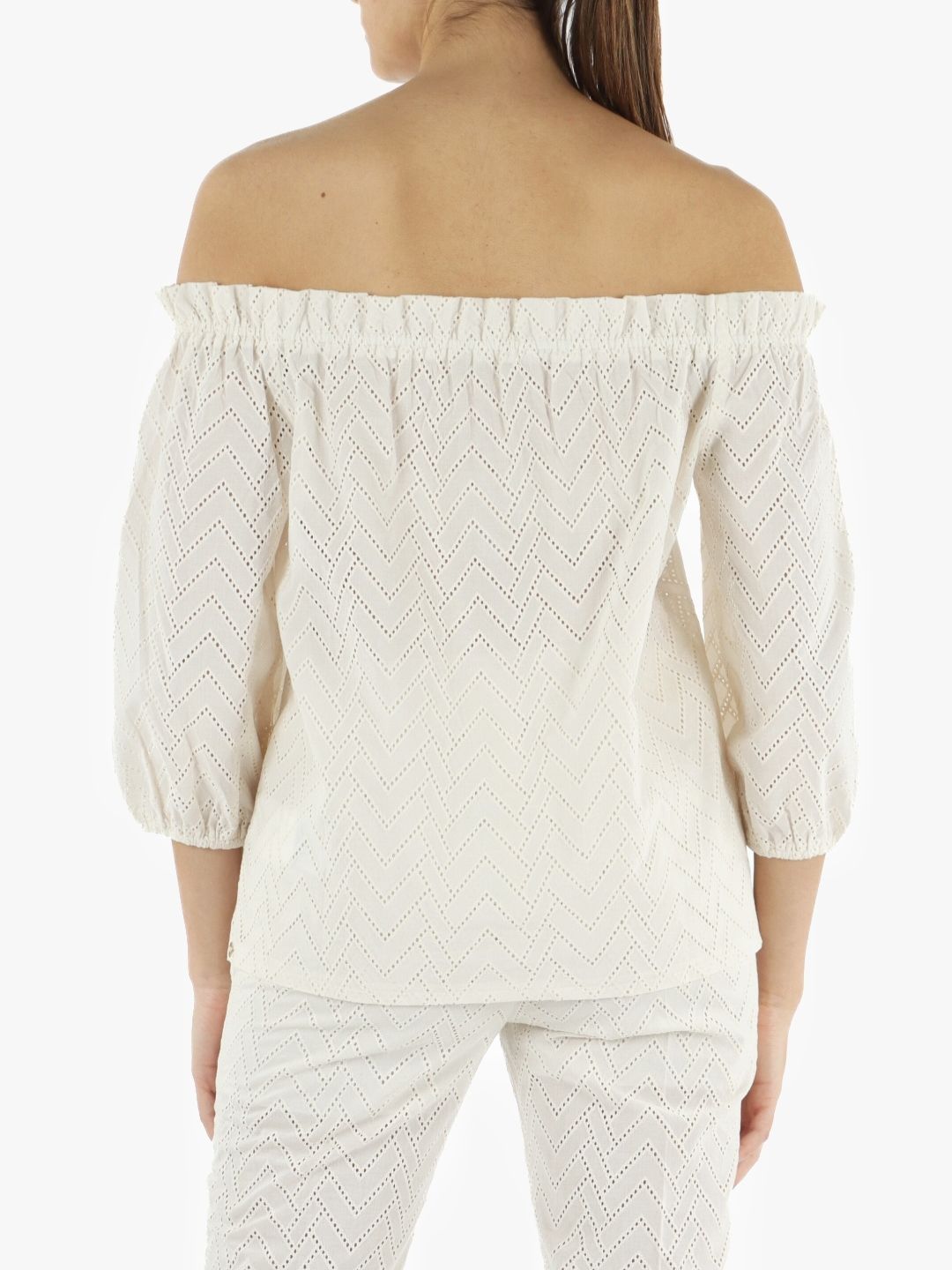 Блуза из хлопкового поплина с открытыми плечами и перфорацией итальянского бренда Pennyblack.