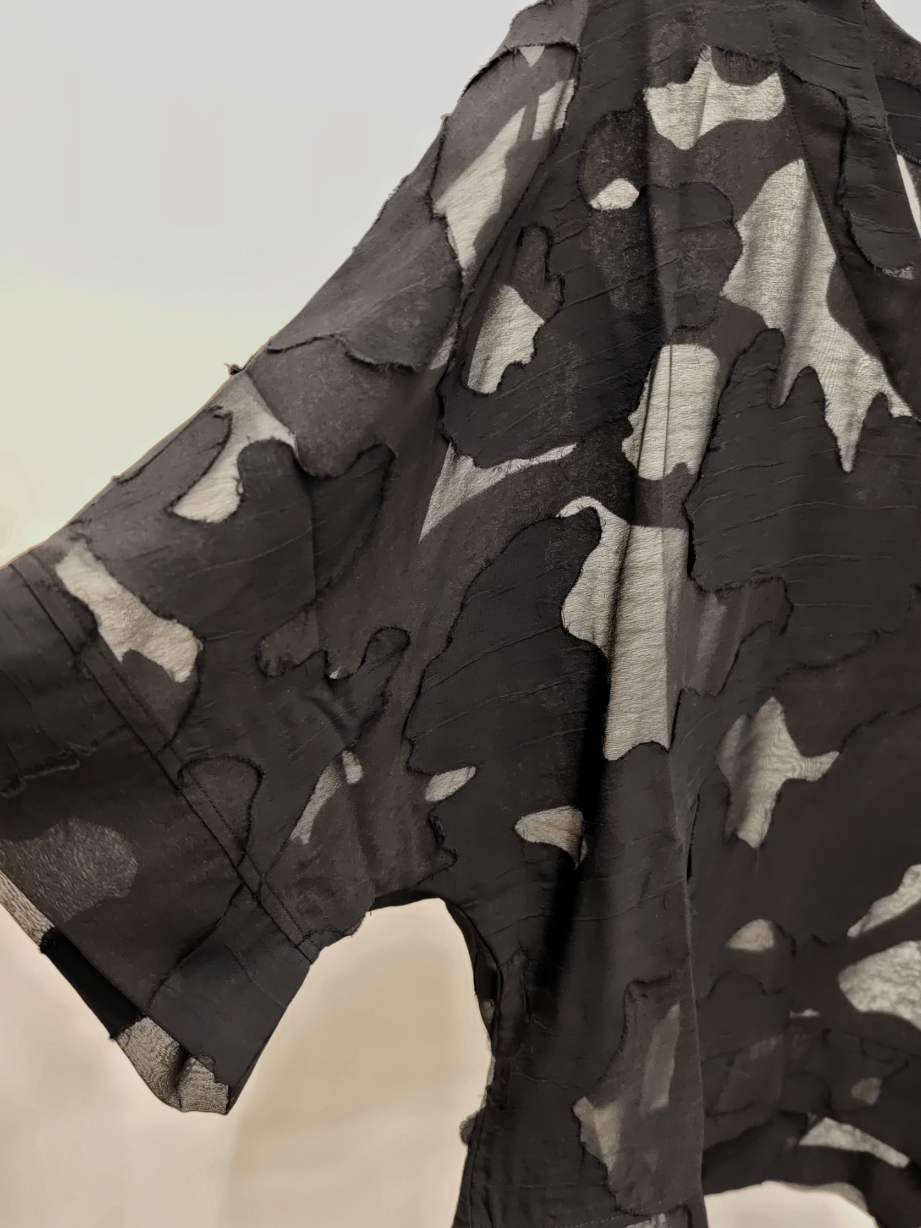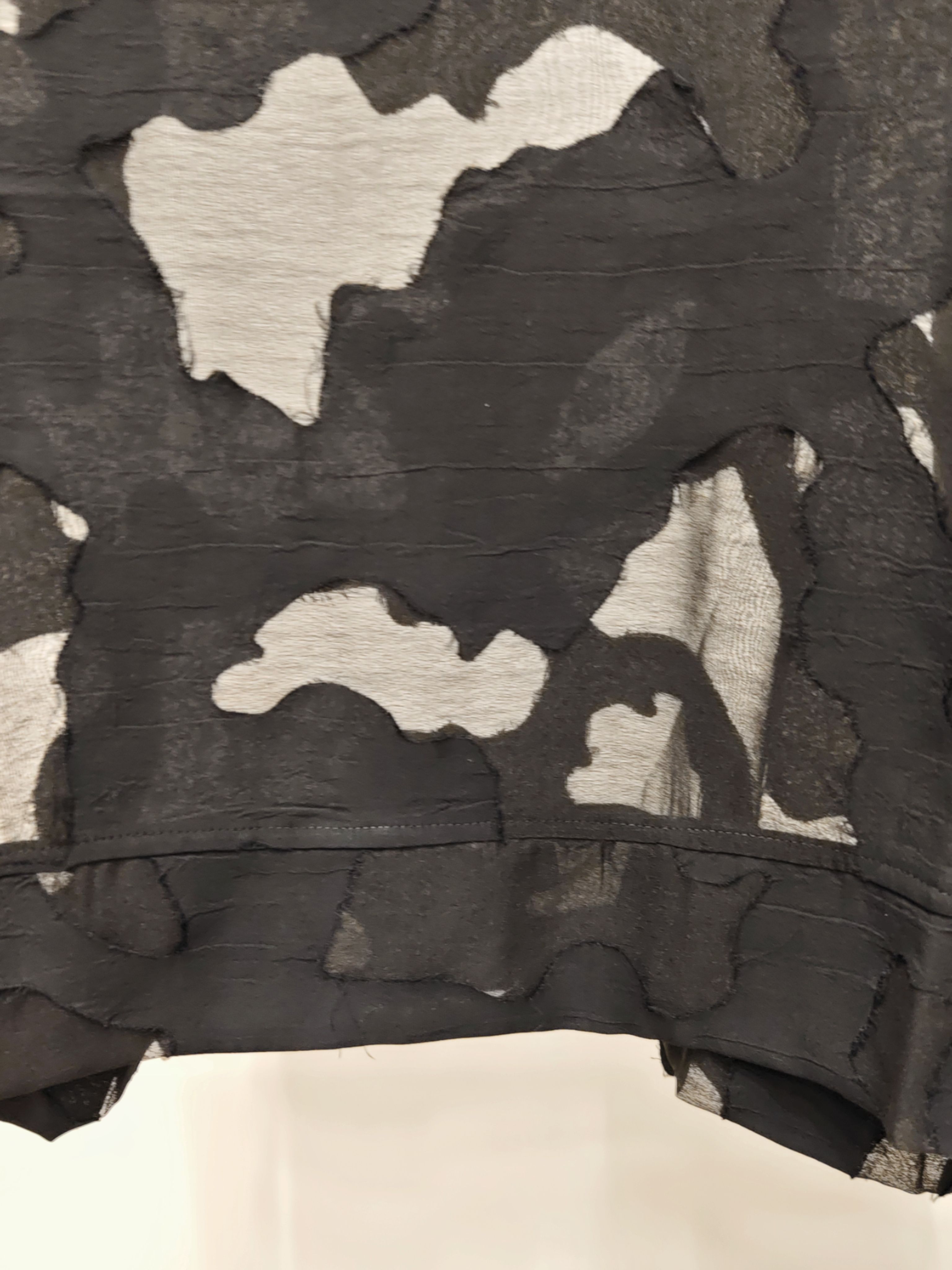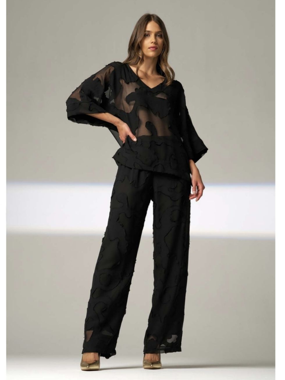 Женская полупрозрачная блузка с рукавами 3/4 и абстрактной аппликацией в тон изделия итальянского бренда Donne da Sogno.