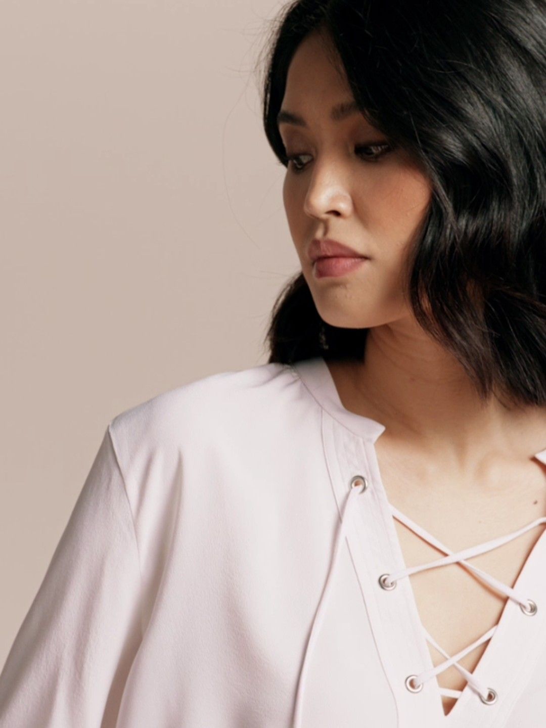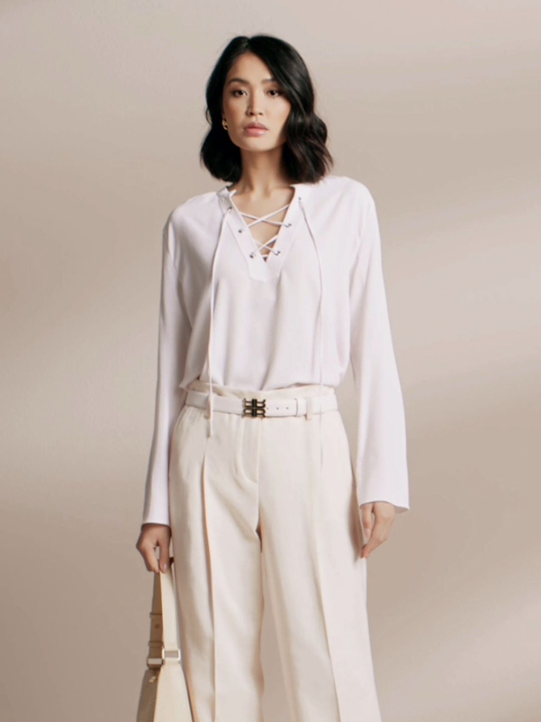 Воздушная блузка-туника с модной шнуровкой немецкого бренда Riani придаст вашим нарядам женственность.