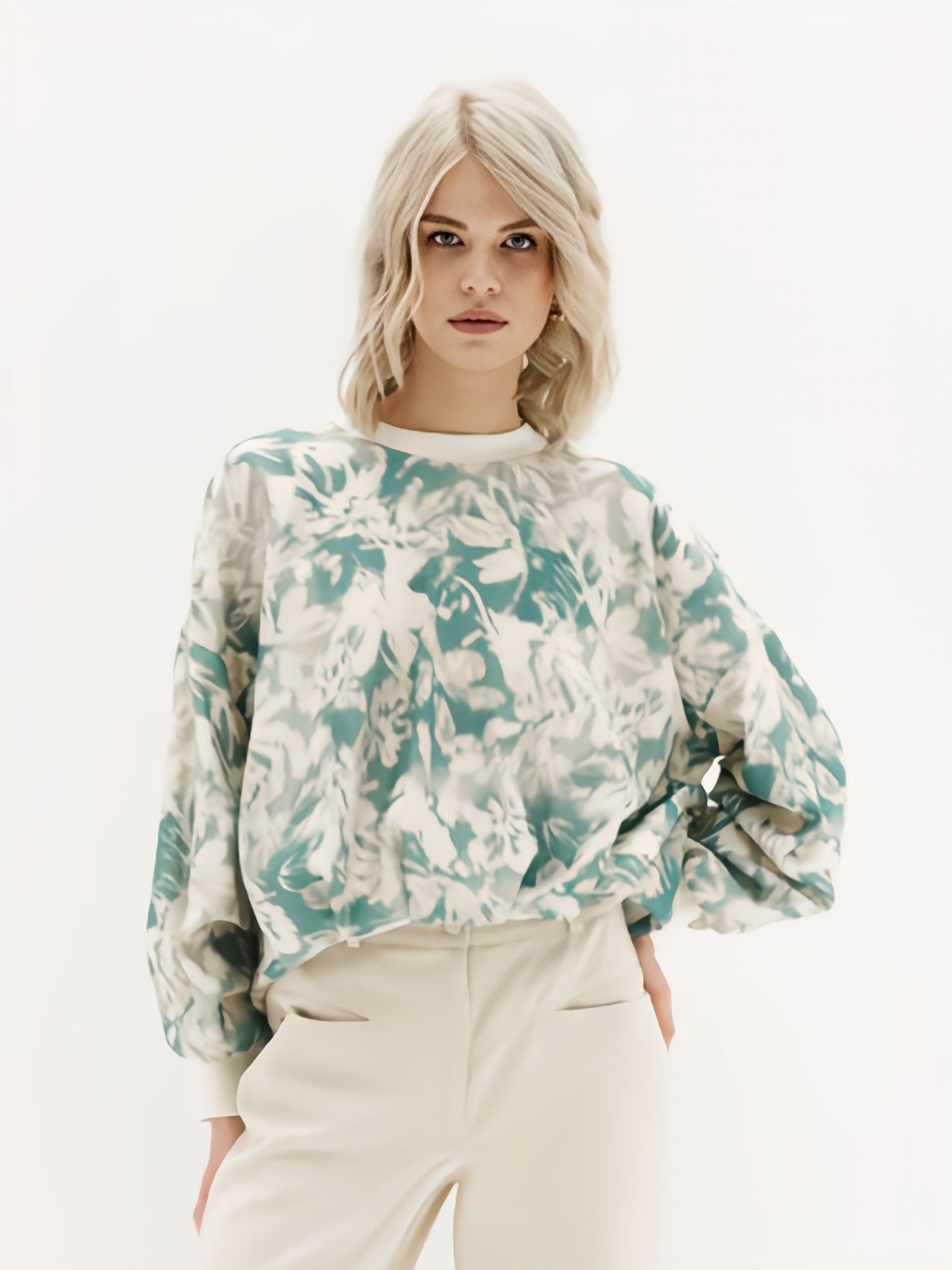 Блузка женская укороченная с длинными рукавами и флористическим принтом бренда Noche Mio.