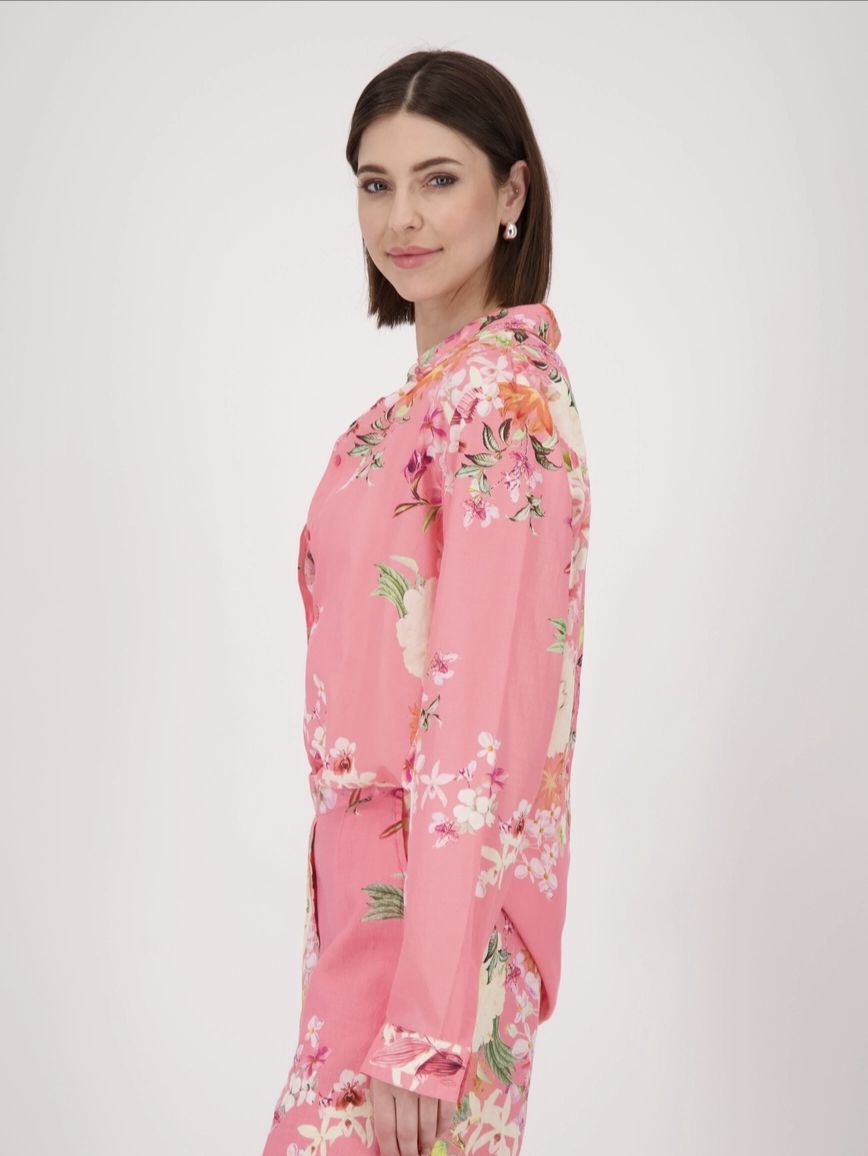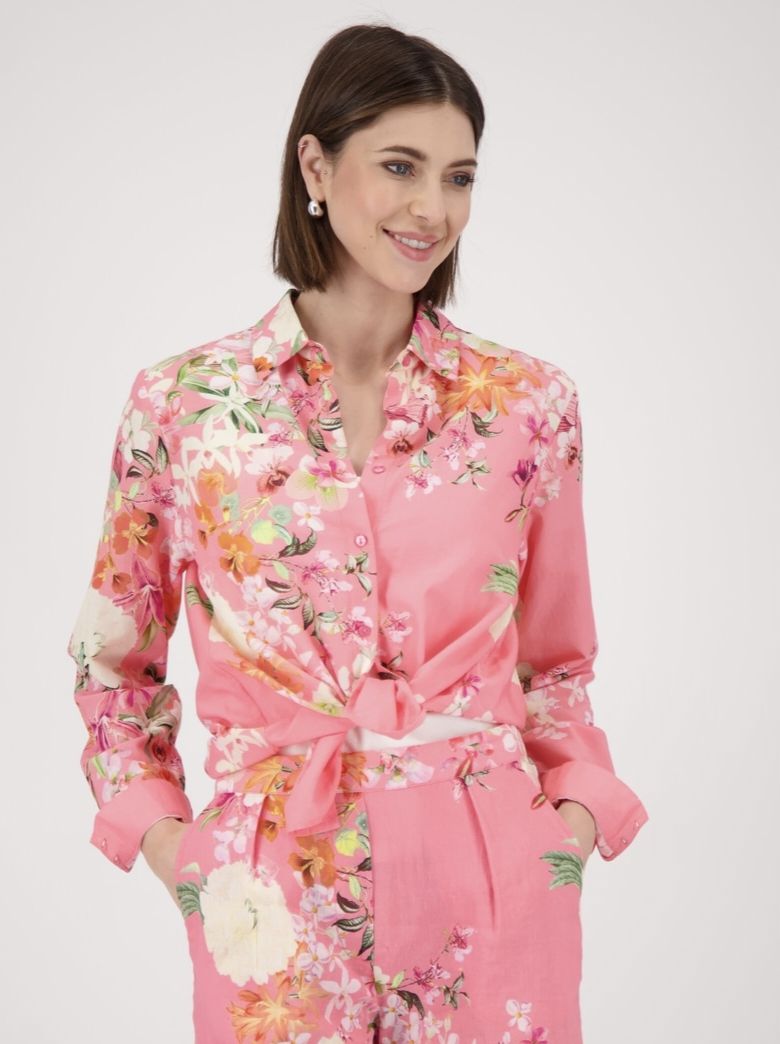 Эта красивая блузка немецкого бренда Monari изготовлена из высококачественной смеси хлопка и модала и украшена романтичным цветочным принтом.