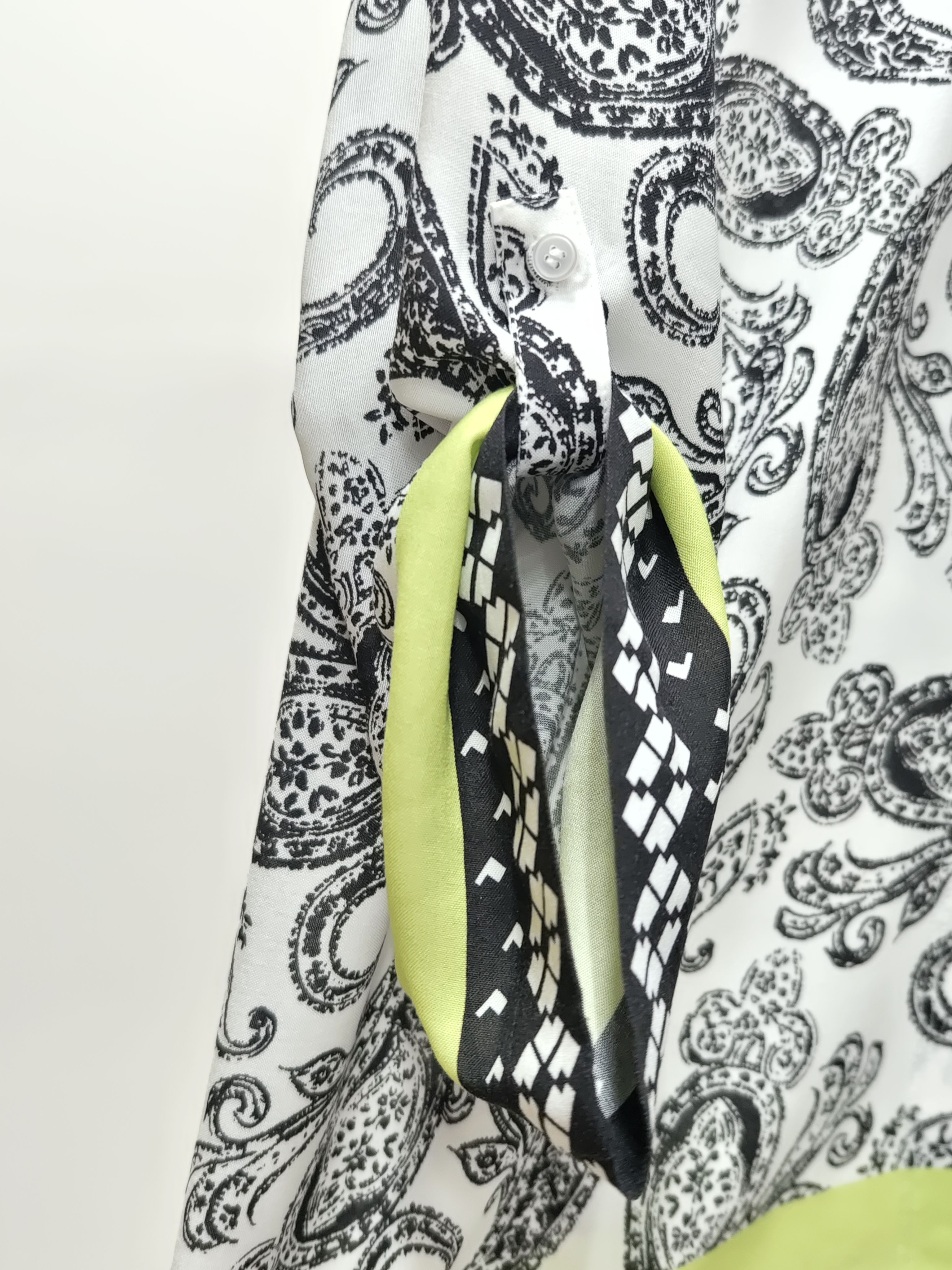 Женская удлиненная блузка-рубашка прямого кроя с принтом пэйсли и ярко-зеленой отделкой итальянского бренда Franco Vello.