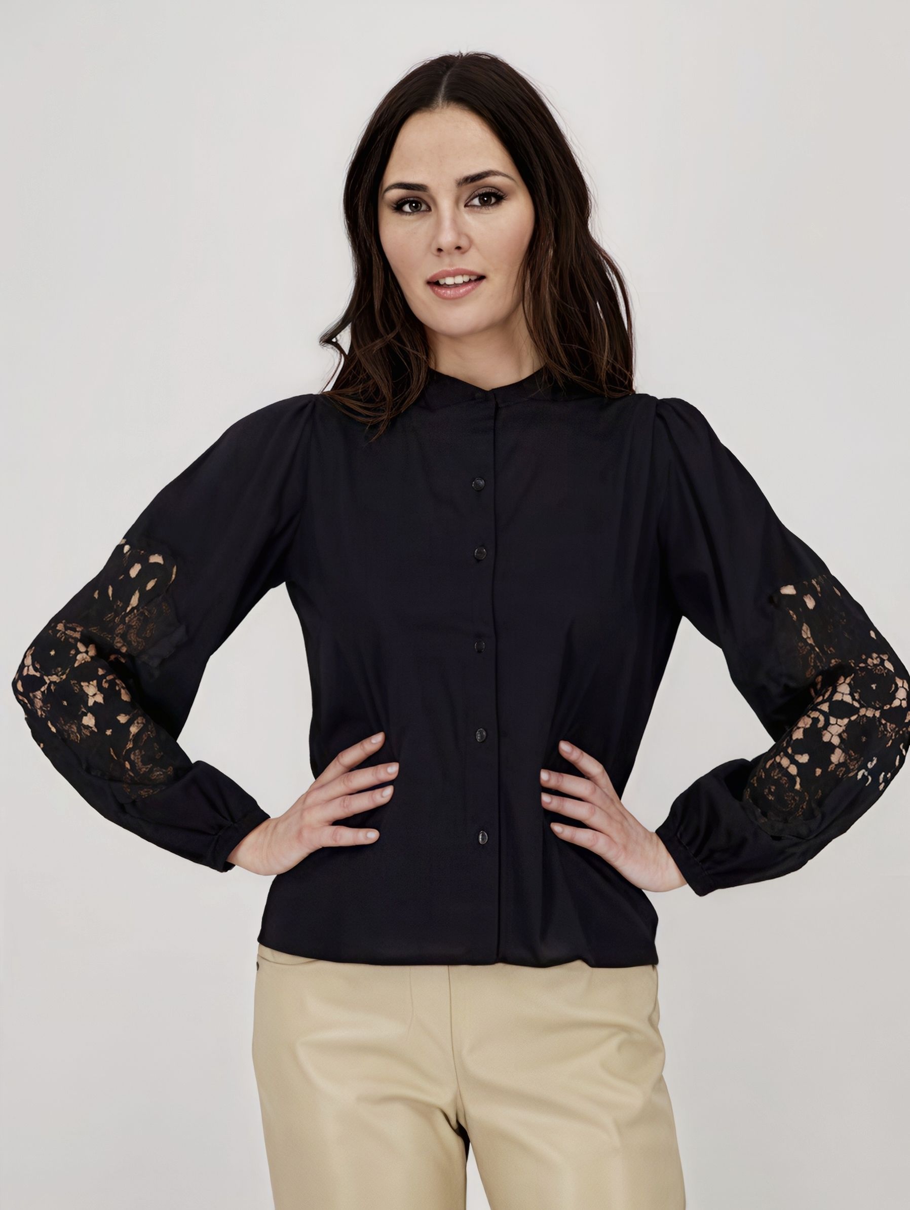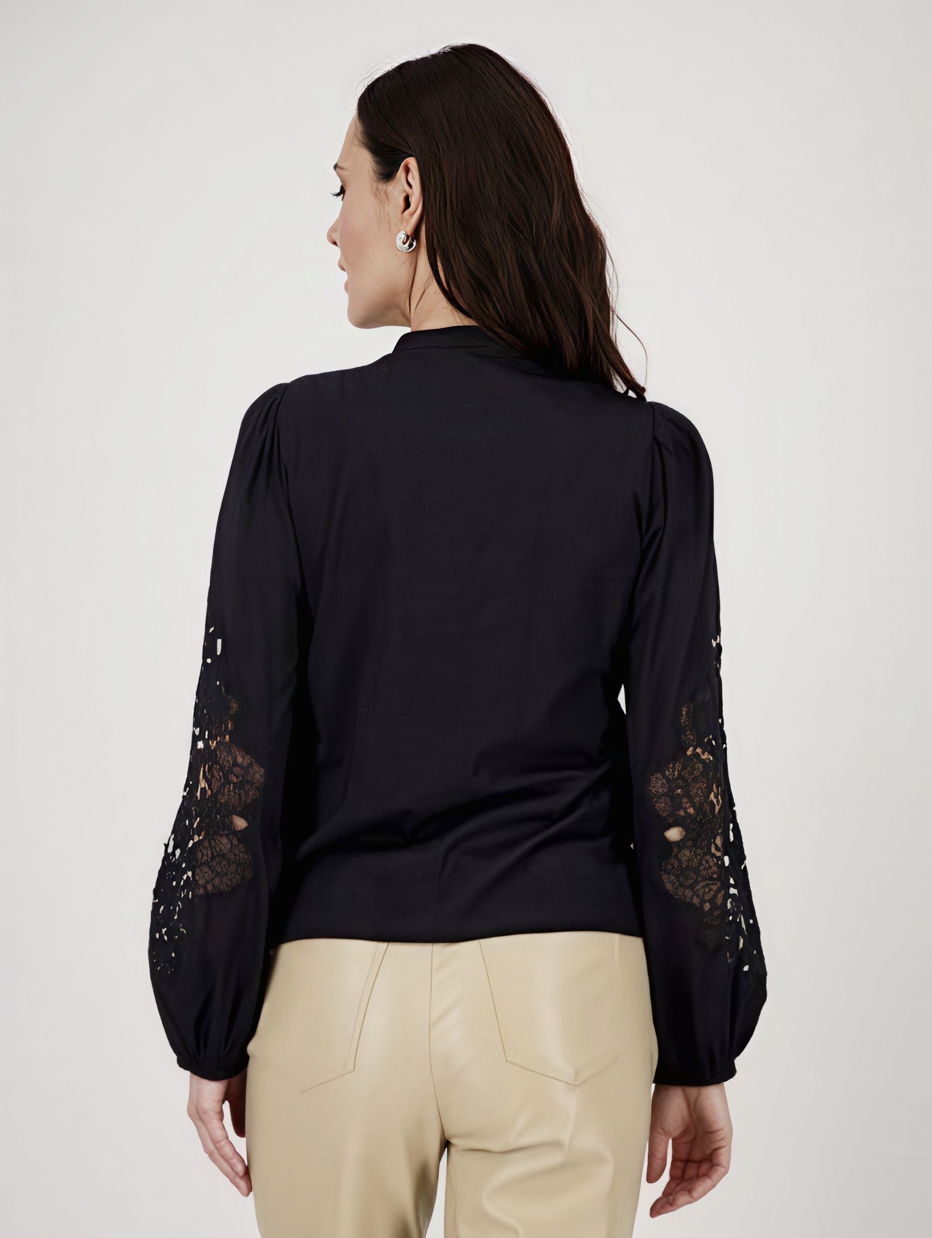 Кружевная вставка на рукавах.