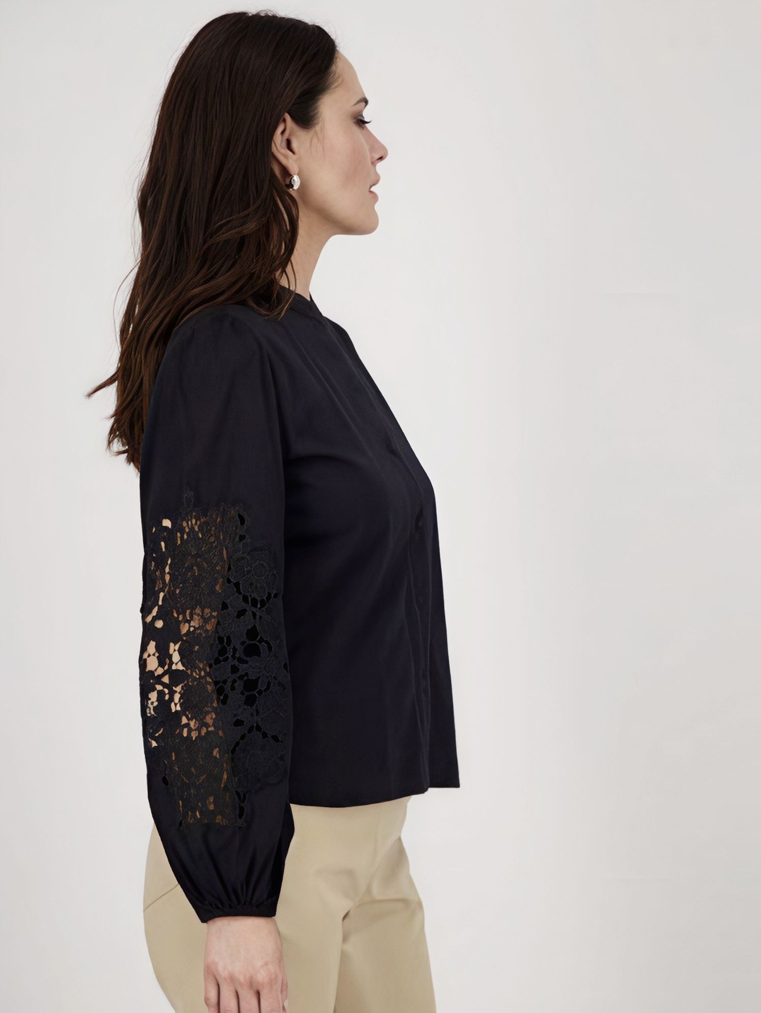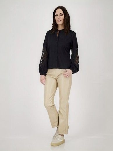 Женская блузка из хлопка немецкого бренда Monari с кружевными вставками на рукавах.