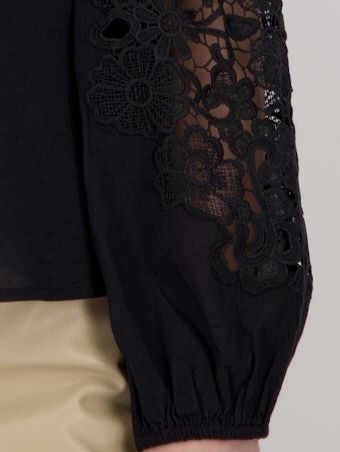 Блузка из хлопка и модала и длинными рукавами реглан с резинкой и кружевными вставками.