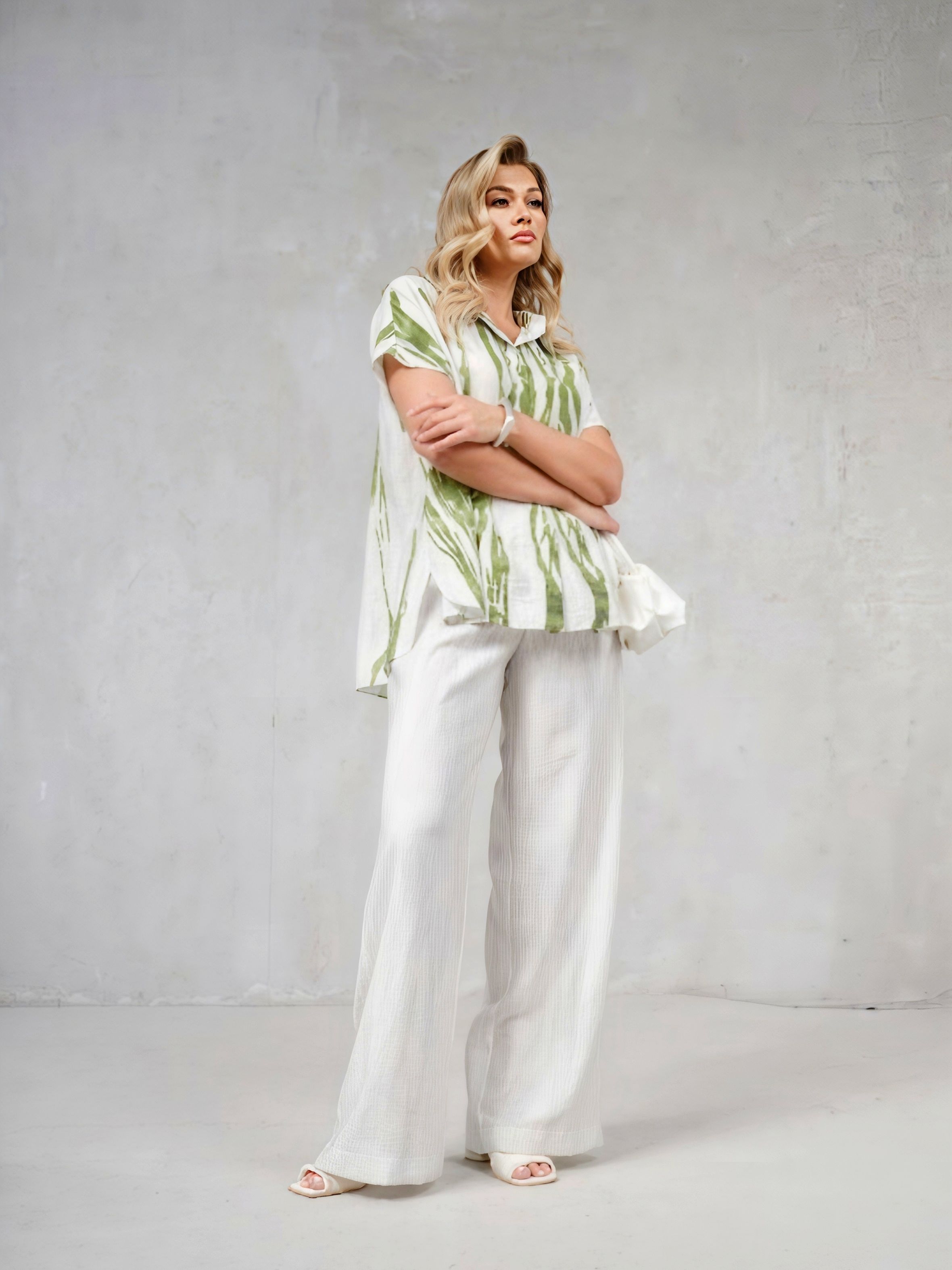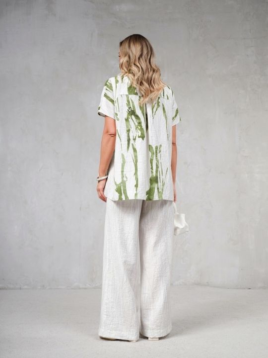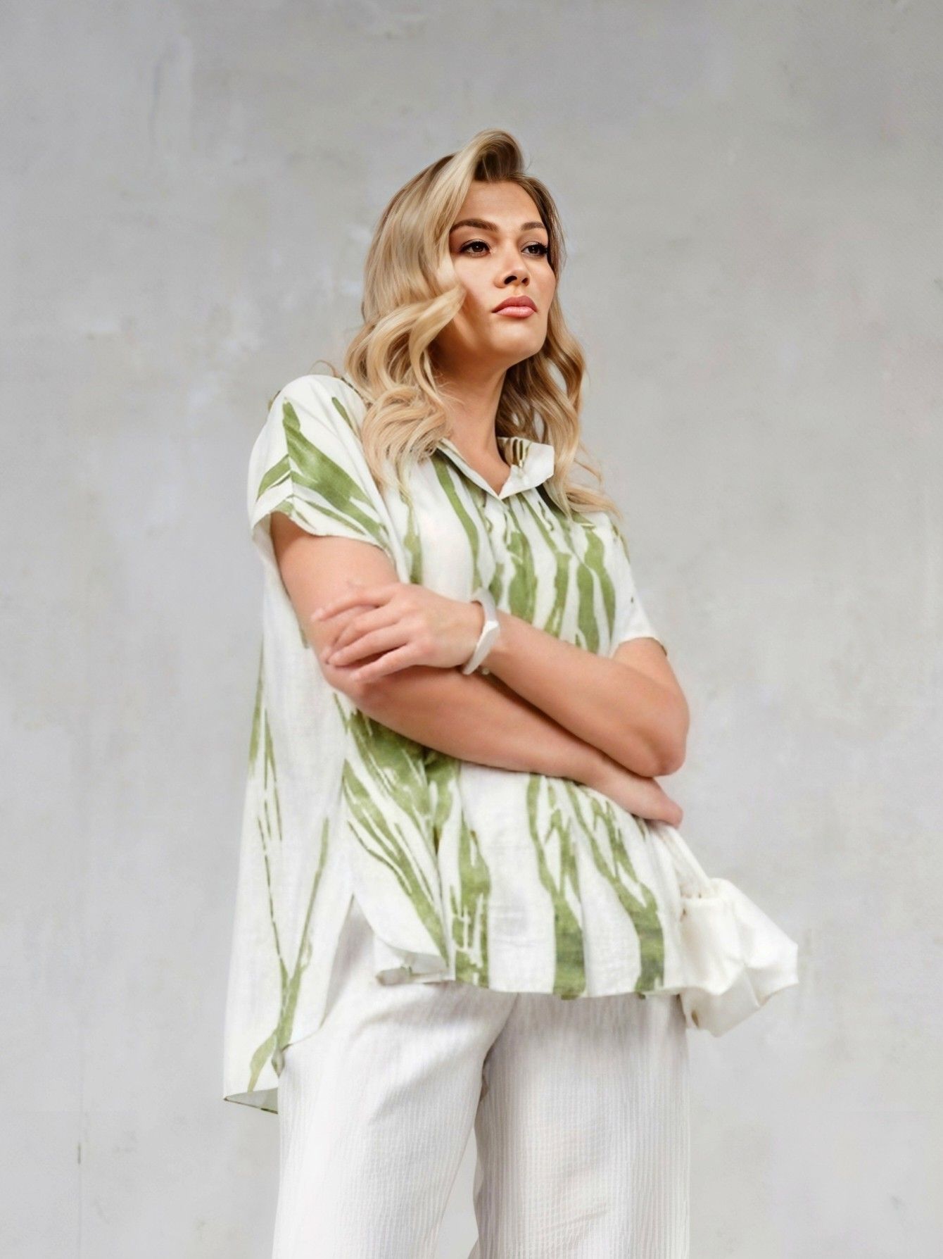 Женская блузка из итальянской вискозы свободного кроя с абстрактным принтом белорусского бренда Erika.