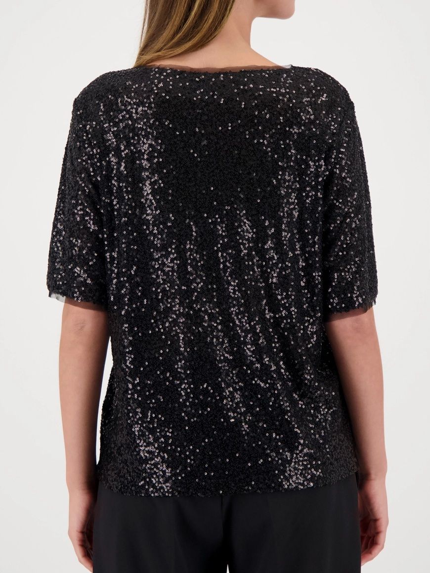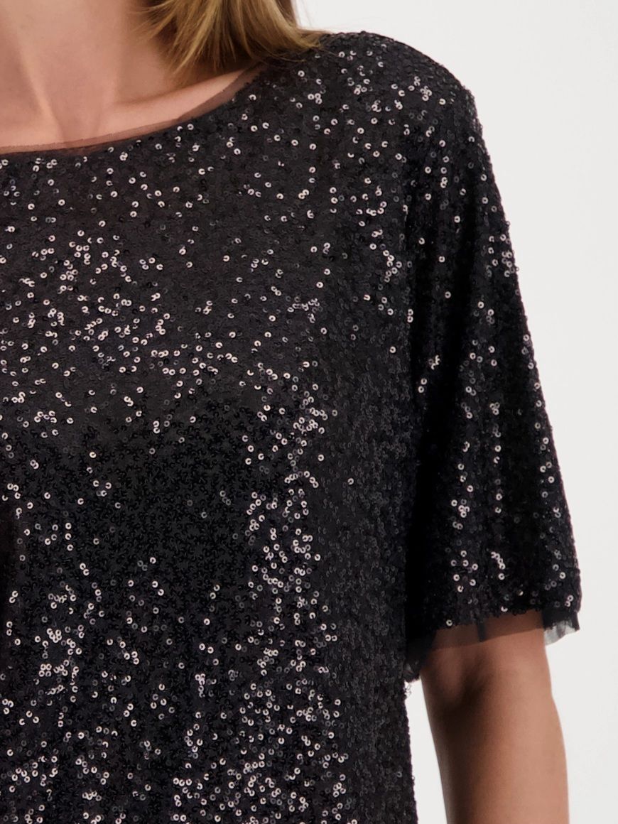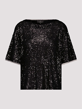 Сияющая элегантность: блузка с пайетками, короткими рукавами и круглым вырезом выглядит потрясающе.