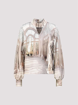 Стильная блузка из эластичного модала с галерейным принтом и вырезами — современная и уникальная.