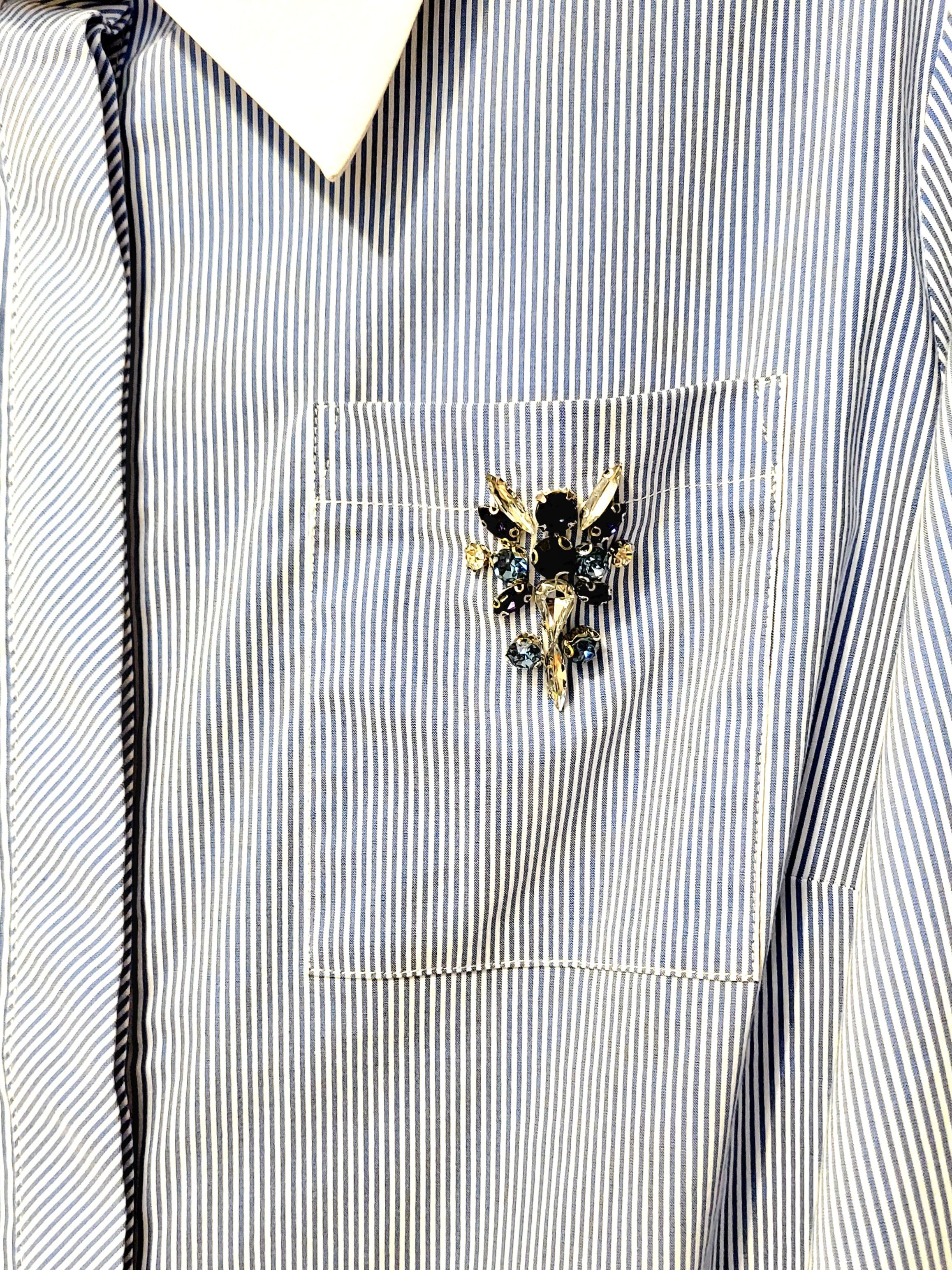 Накладной нагрудный карман с брошью из кристаллов.