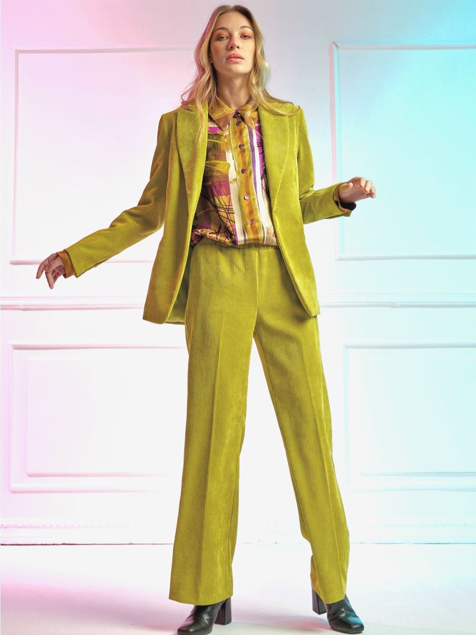 Женские широкие вельветовые брюки с поясом на резинке итальянского бренда Donne da Sogno.