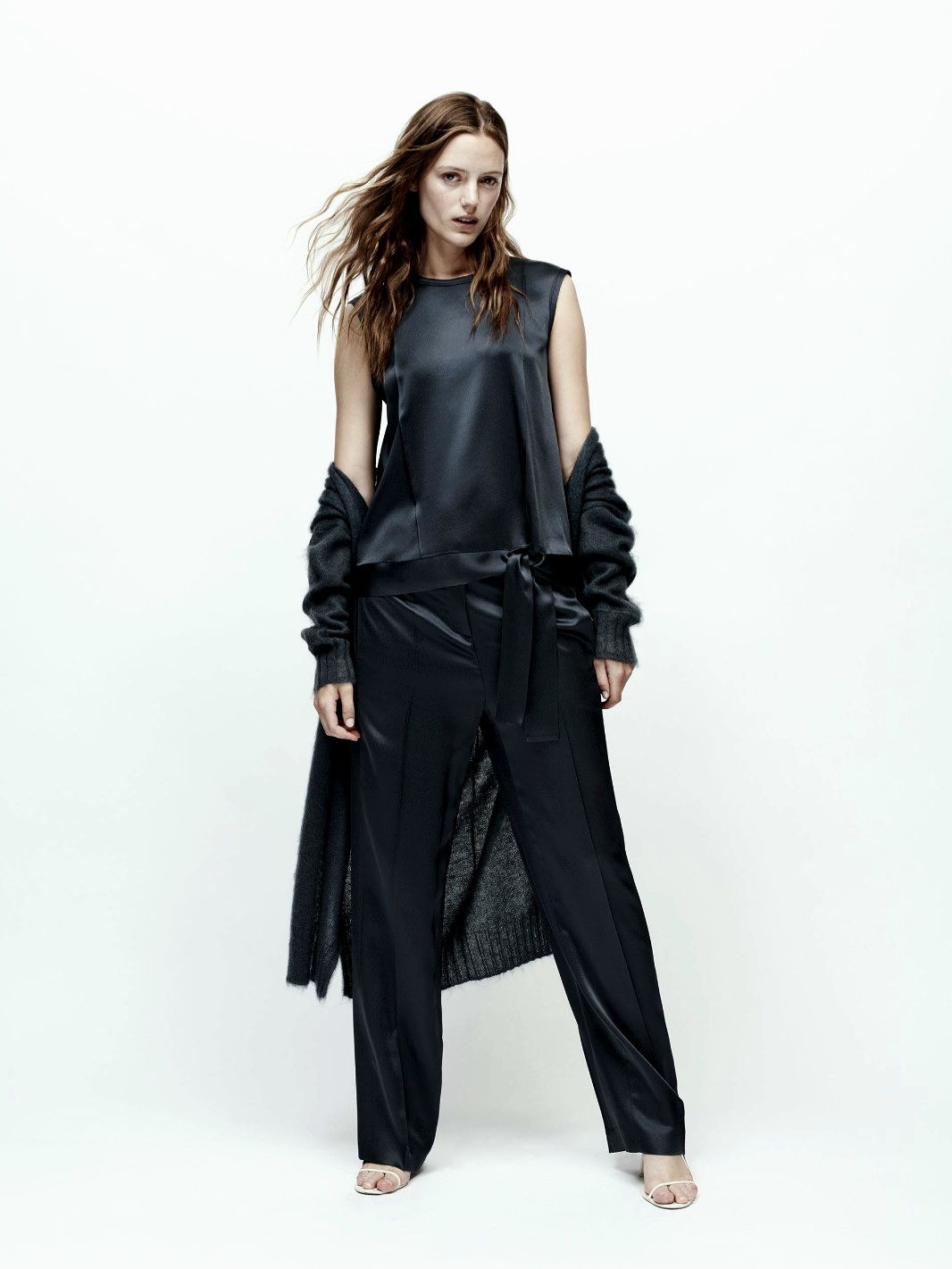 Атласная, струящаяся ткань.