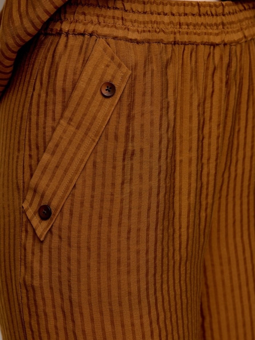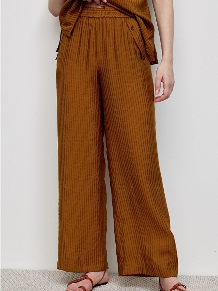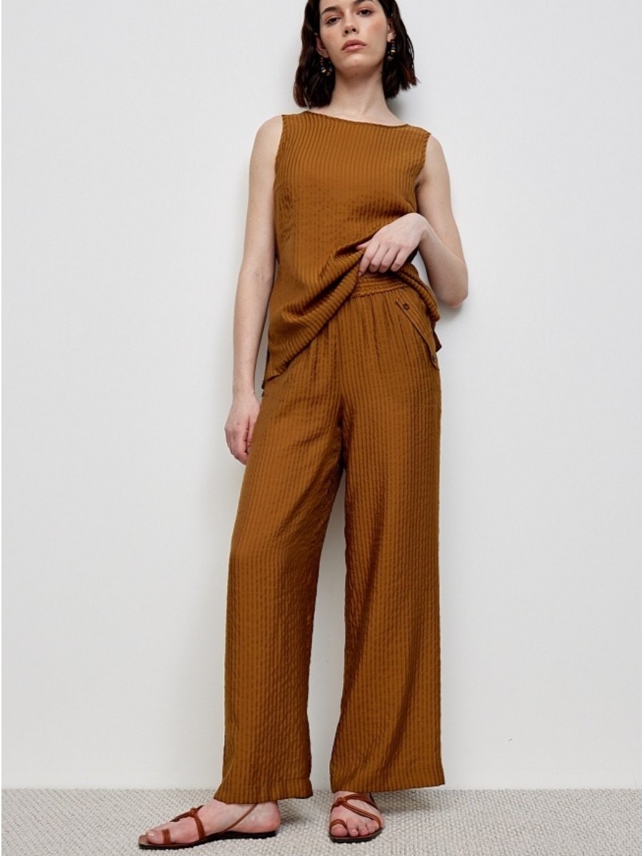 Широкие женские брюки из тисненой ткани на поясе-резинке немецкого бренда BULMER.