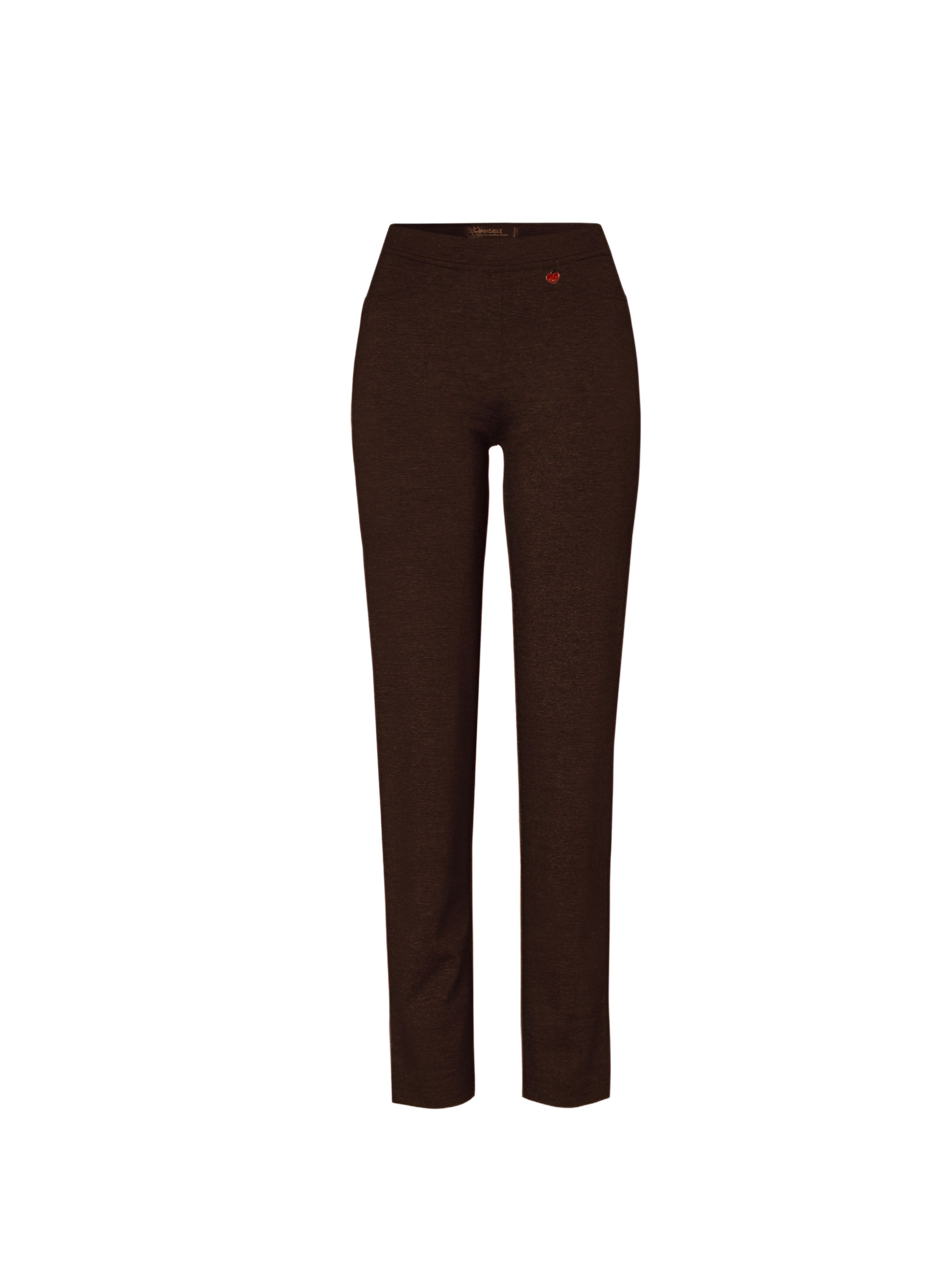 Трикотажные женские брюки slim-fit немецкого бренда Relaxed by Tony. Цвет: тёмно-коричневый. Бренд: Relaxed by Tony. Страна бренда: Германия. Страна производитель: Литва. Пояс-резинка. Зауженные брюки. Трикотажные брюки. Нашивка в виде сердца на поясе. Состав материала: 68% вискоза, 72% полиамид, 5% эластан. Рекомендации по уходу: Стирать перед первым использованием. Стирать отдельно от других вещей. Деликатная стирка наизнанку при 30 градусах жидким моющим средством. Не отбеливать. Не сушить в сушильной машине. Гладить на минимальном температурном режиме наизнанку. Разрешена только щадящая чистка.