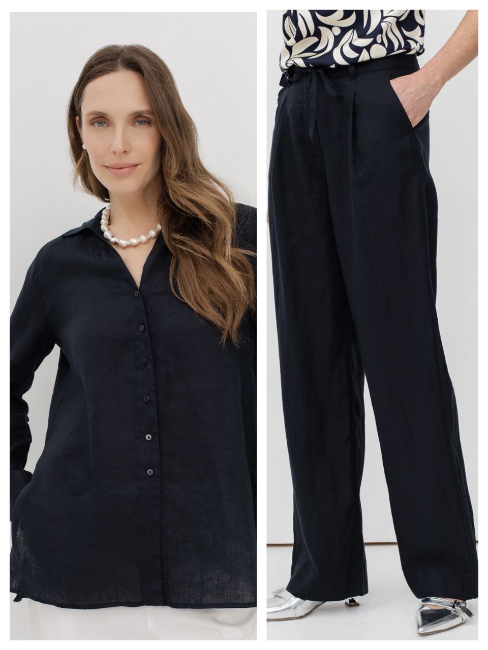 Брюки женские летние широкого кроя из 100% льна немецкого бренда Bulmer.