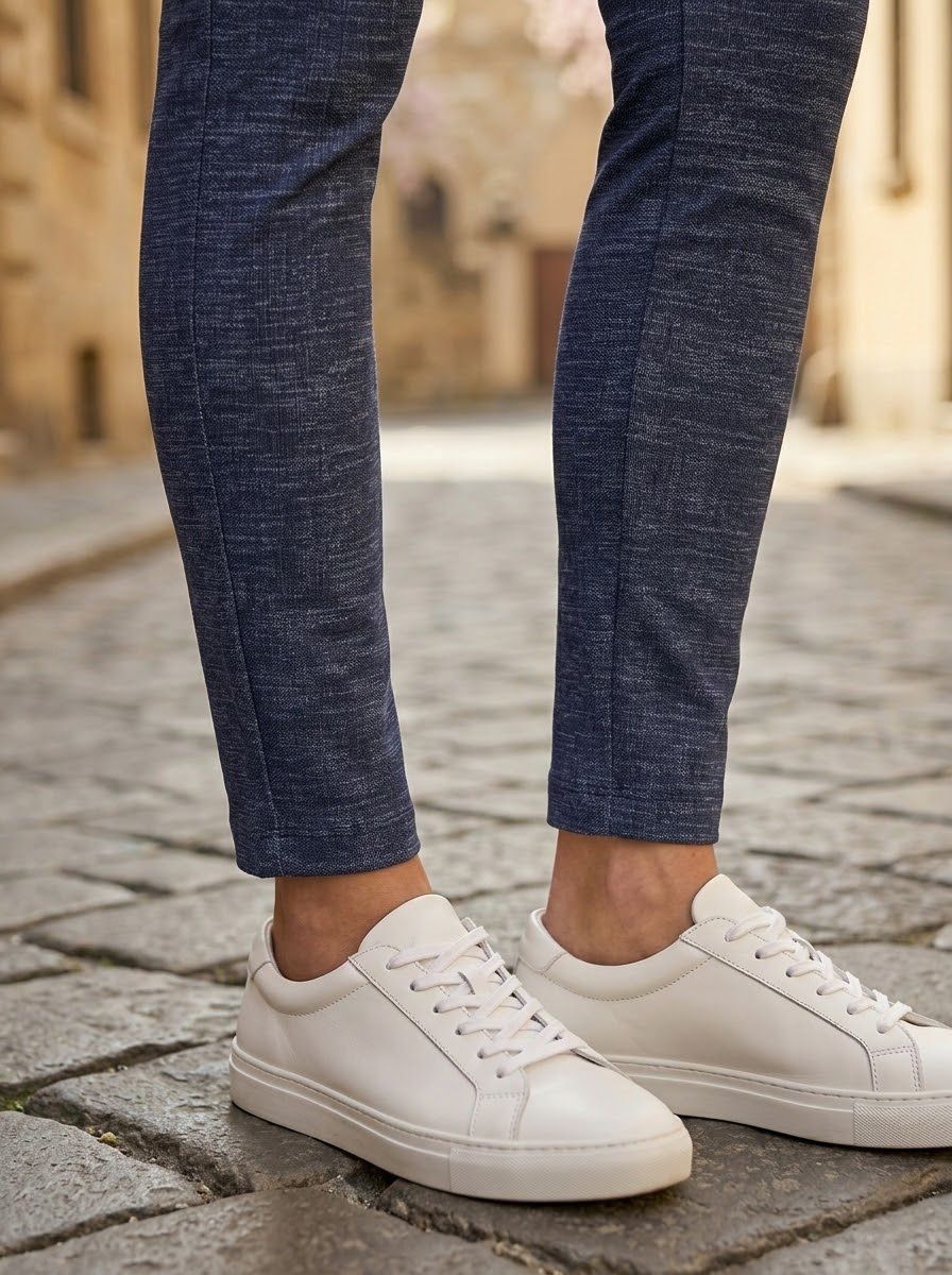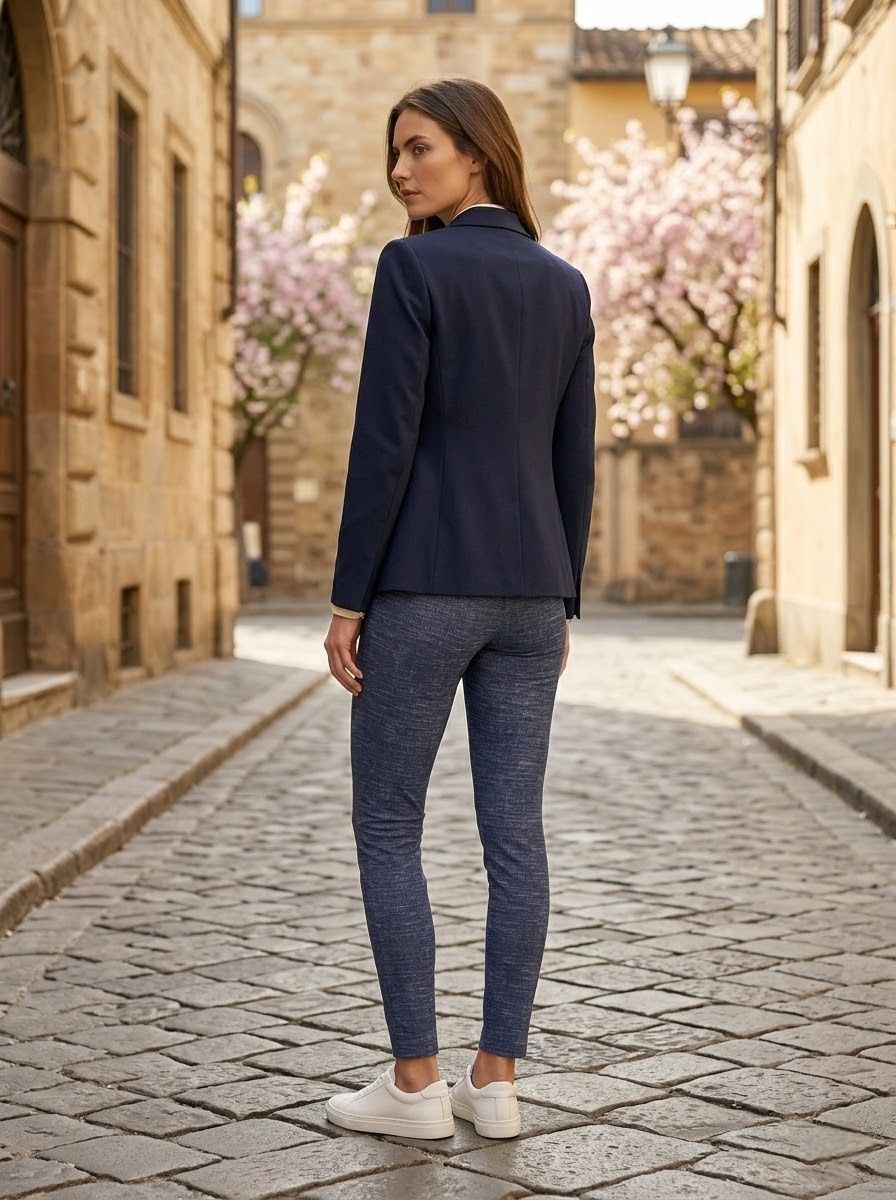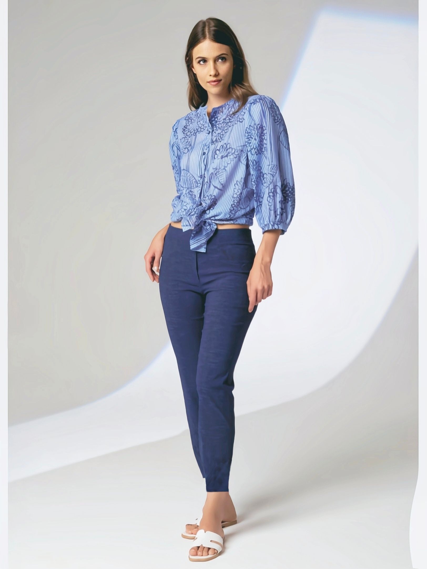 Брюки женские трикотажные из эластичной вискозной ткани цвета джинсовый меланж итальянского бренда Donne da Sogno.