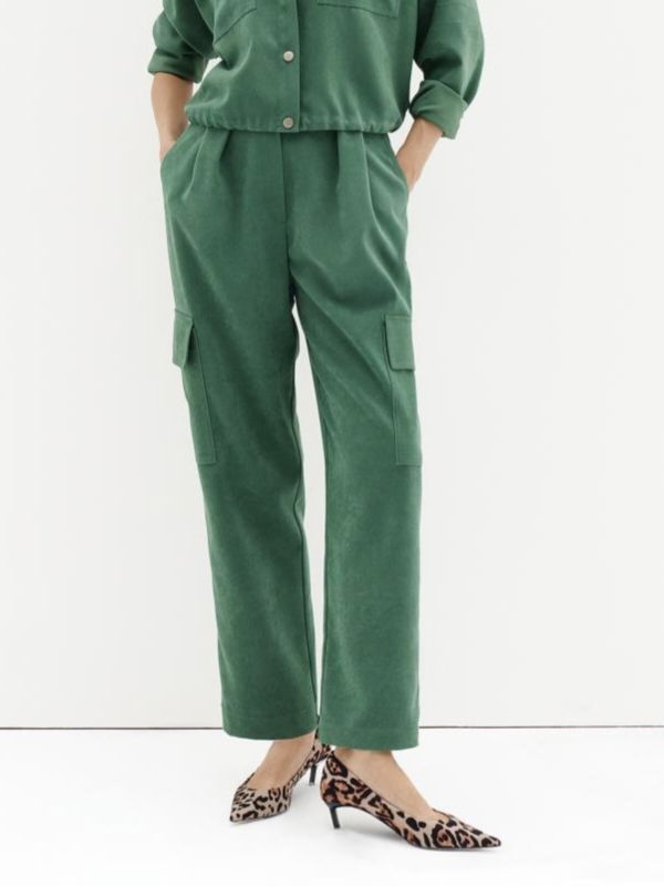 Брюки женские укороченные карго из микровельвета с накладными карманами Noche Mio.