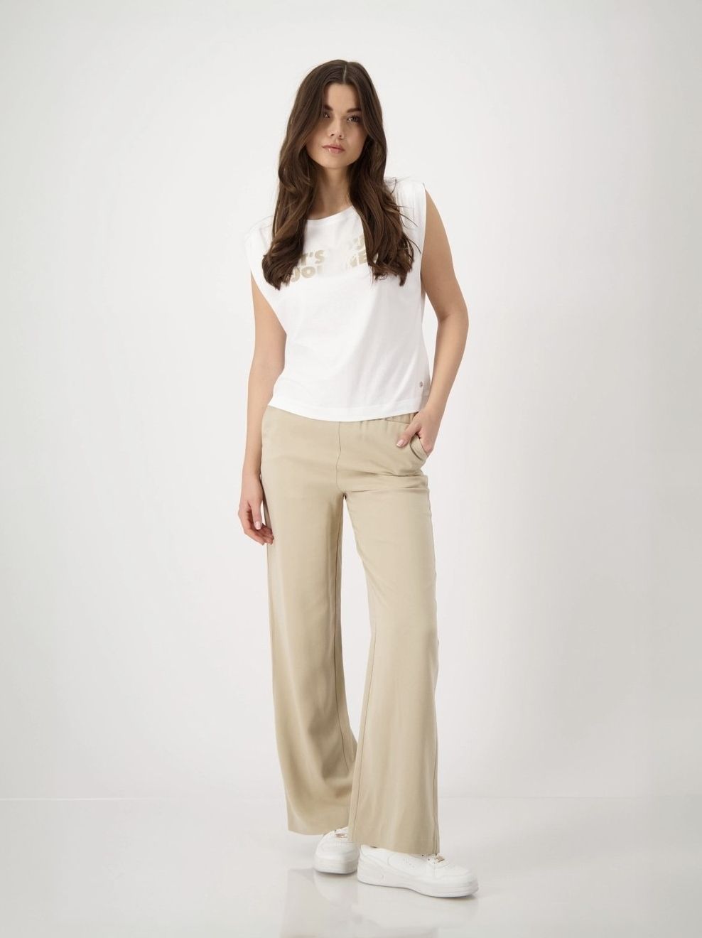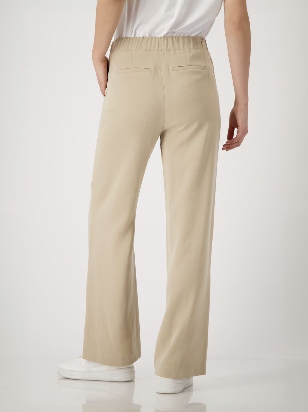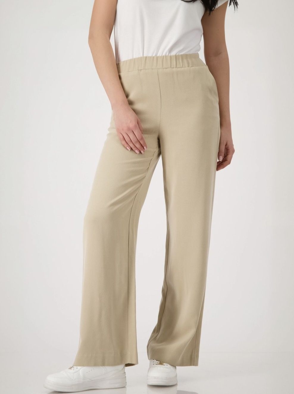 Эти брюки-стрейч из 100% лиоцелла немецкого бренда Monari впечатляют своей широкой посадкой и эластичным поясом.