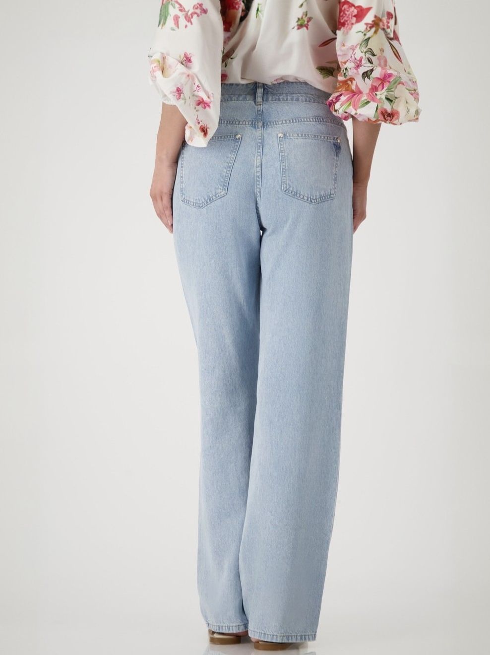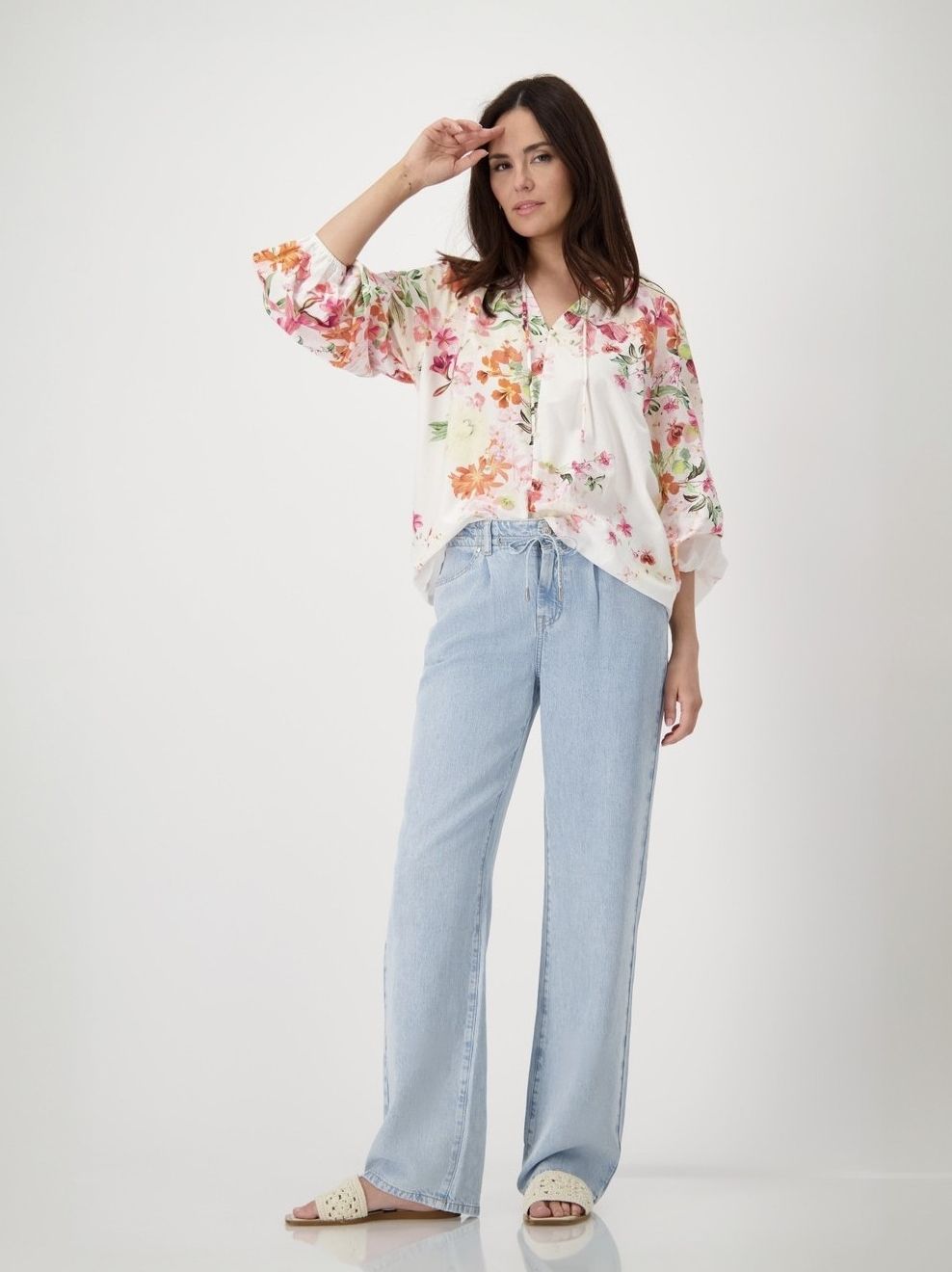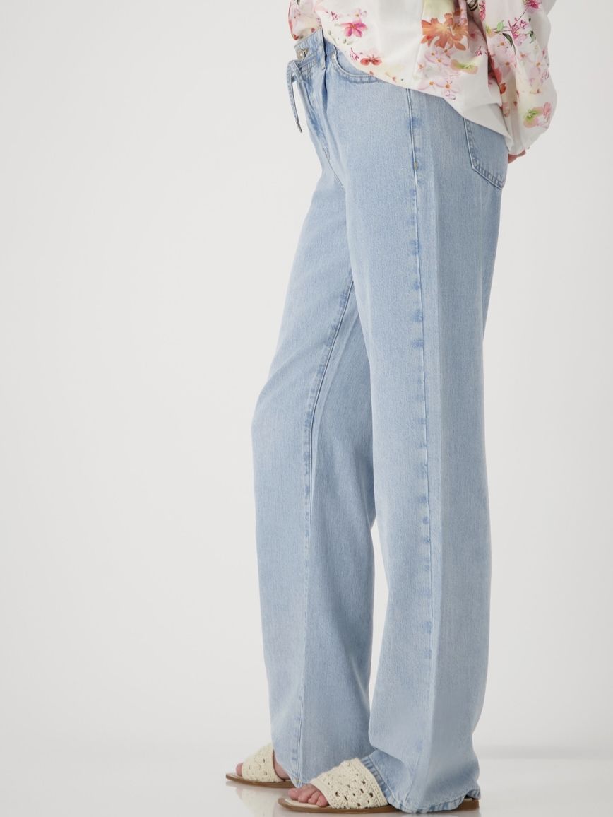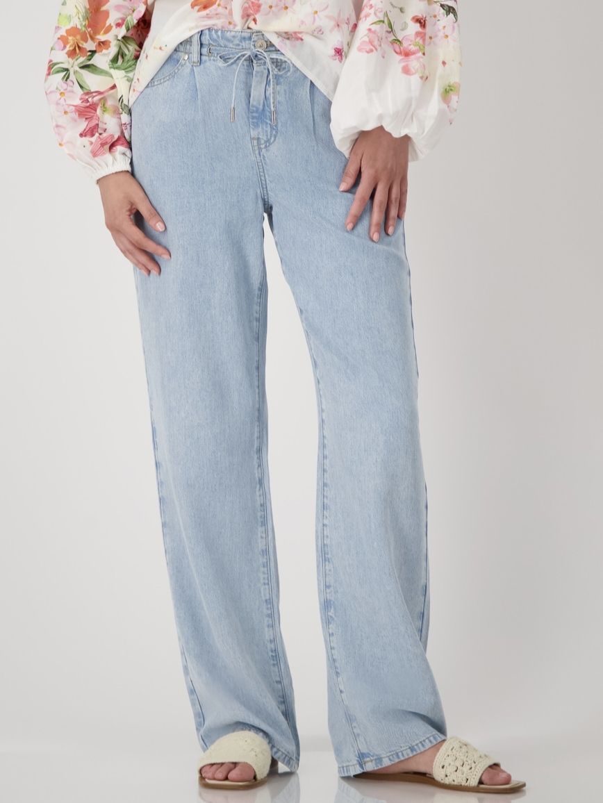 Эти джинсовые брюки из 100 % лиоцелла немецкого бренда Monari впечатляют своей модной широкой посадкой и стильным поясом с завязками.