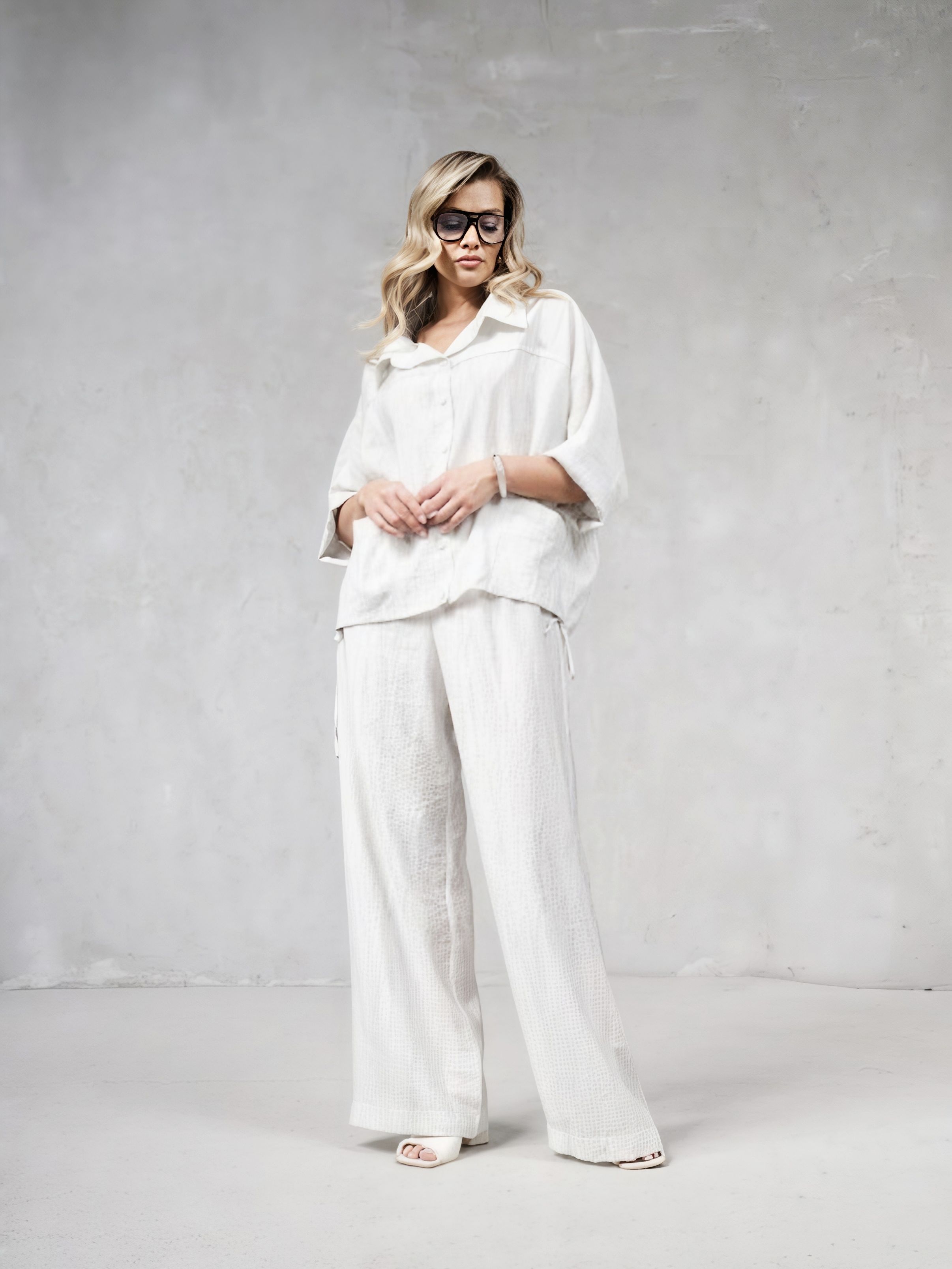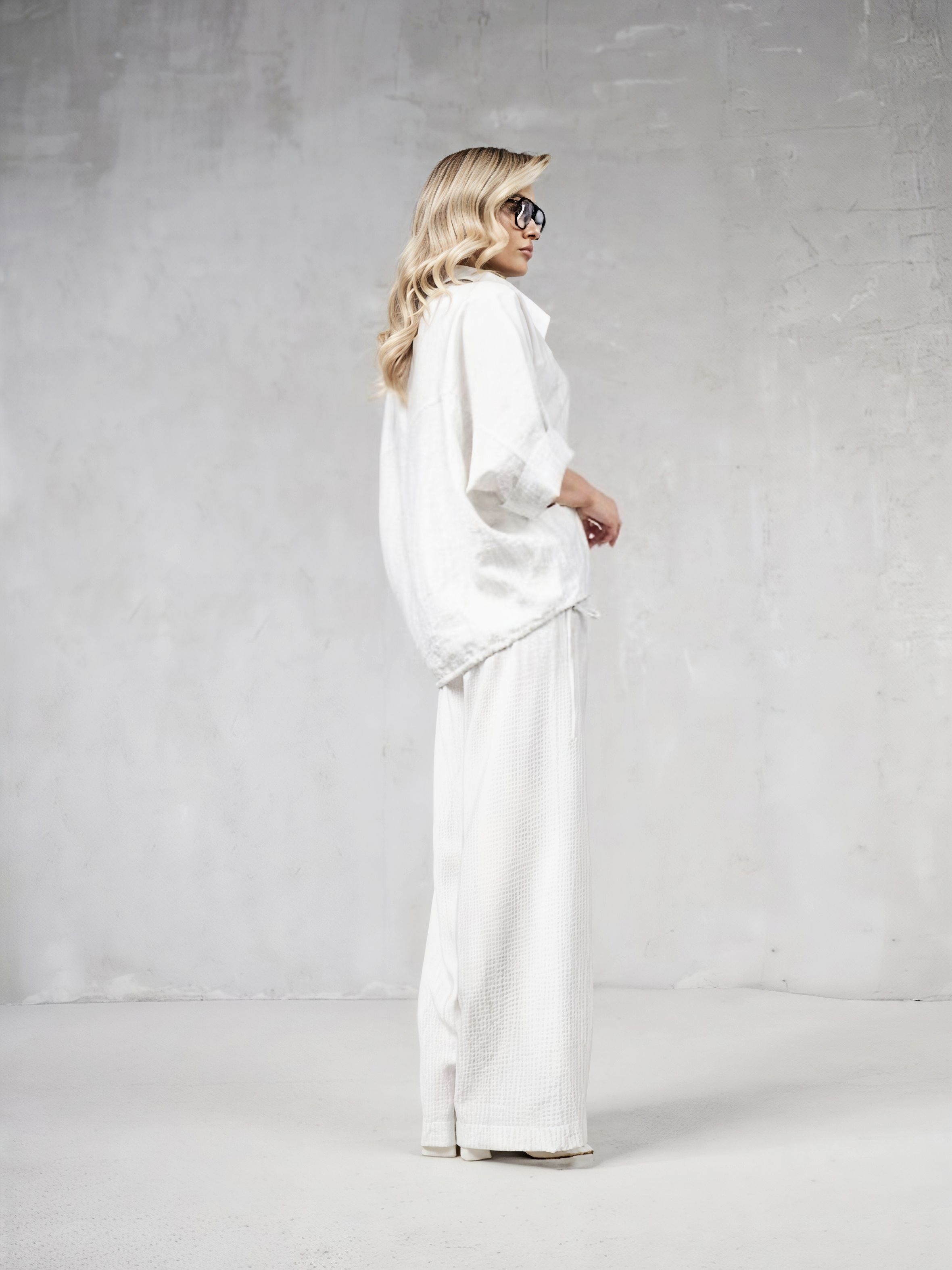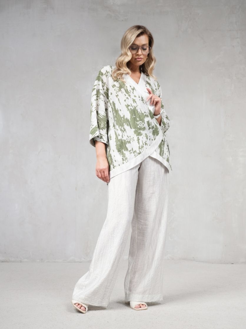 Брюки женские из немнущегося, слегка жатого материала с эластичным поясом на кулиске белорусского бренда Erika.