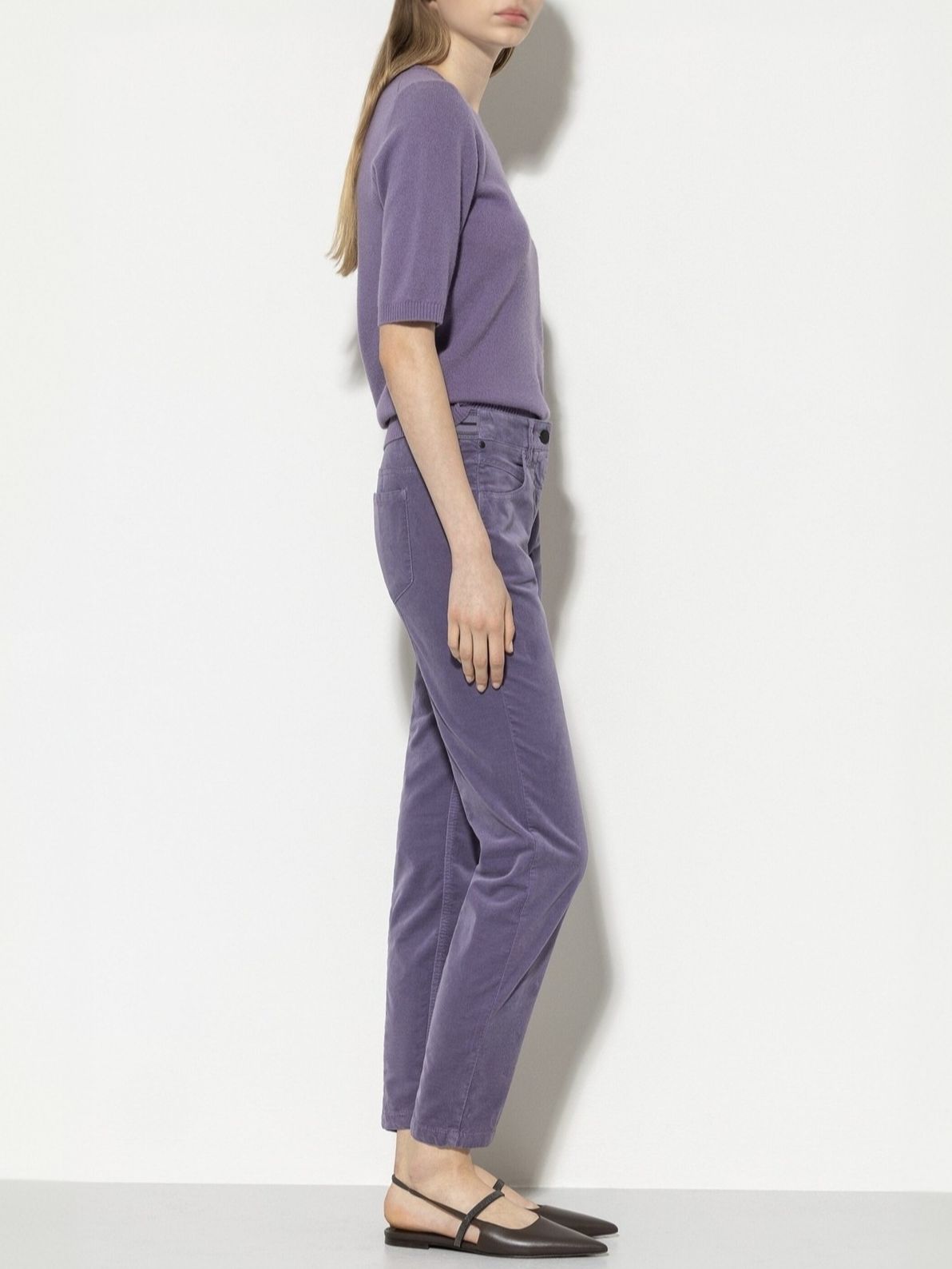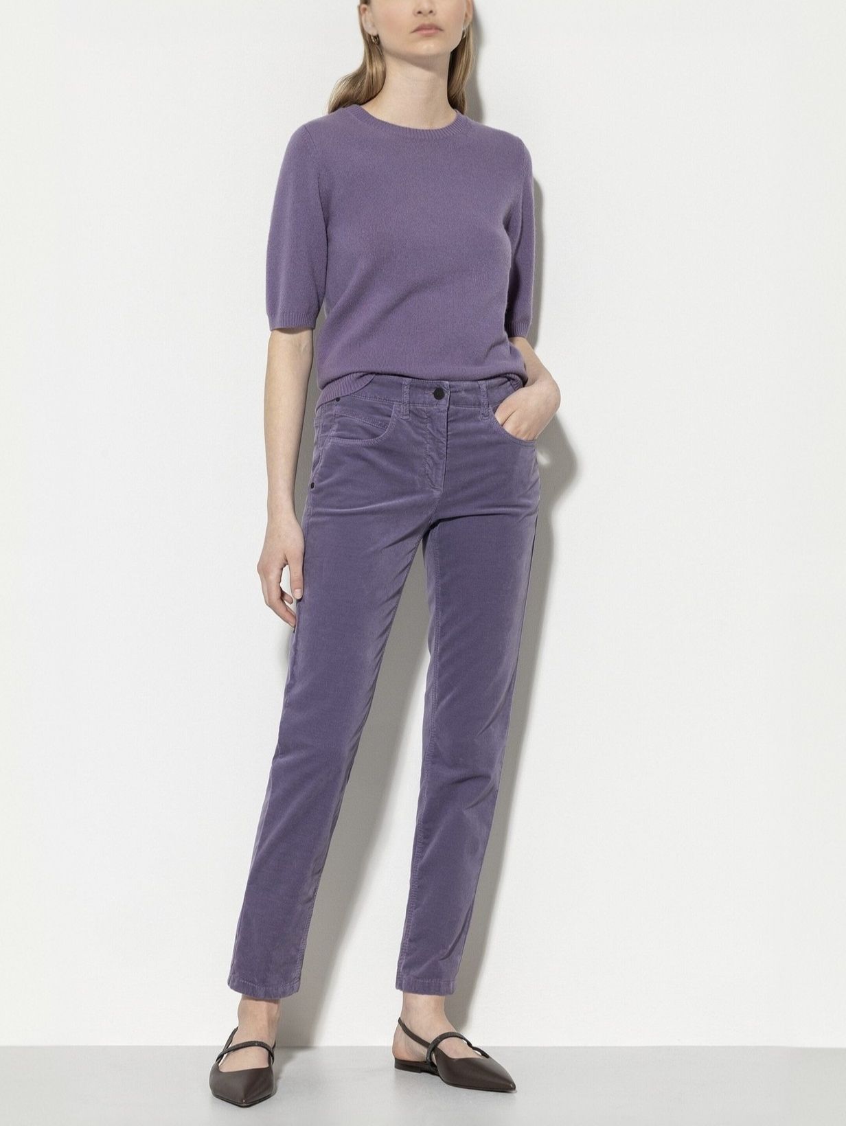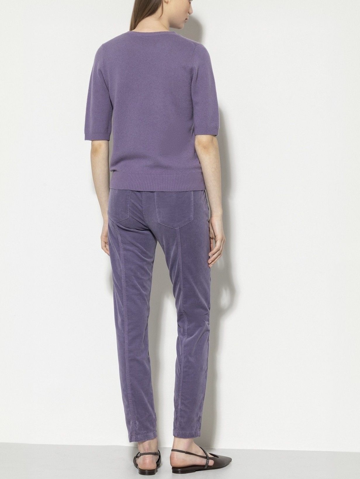 Слегка укороченные брюки прямого кроя из мягкого бархата немецкого бренда Luisa Cerano.