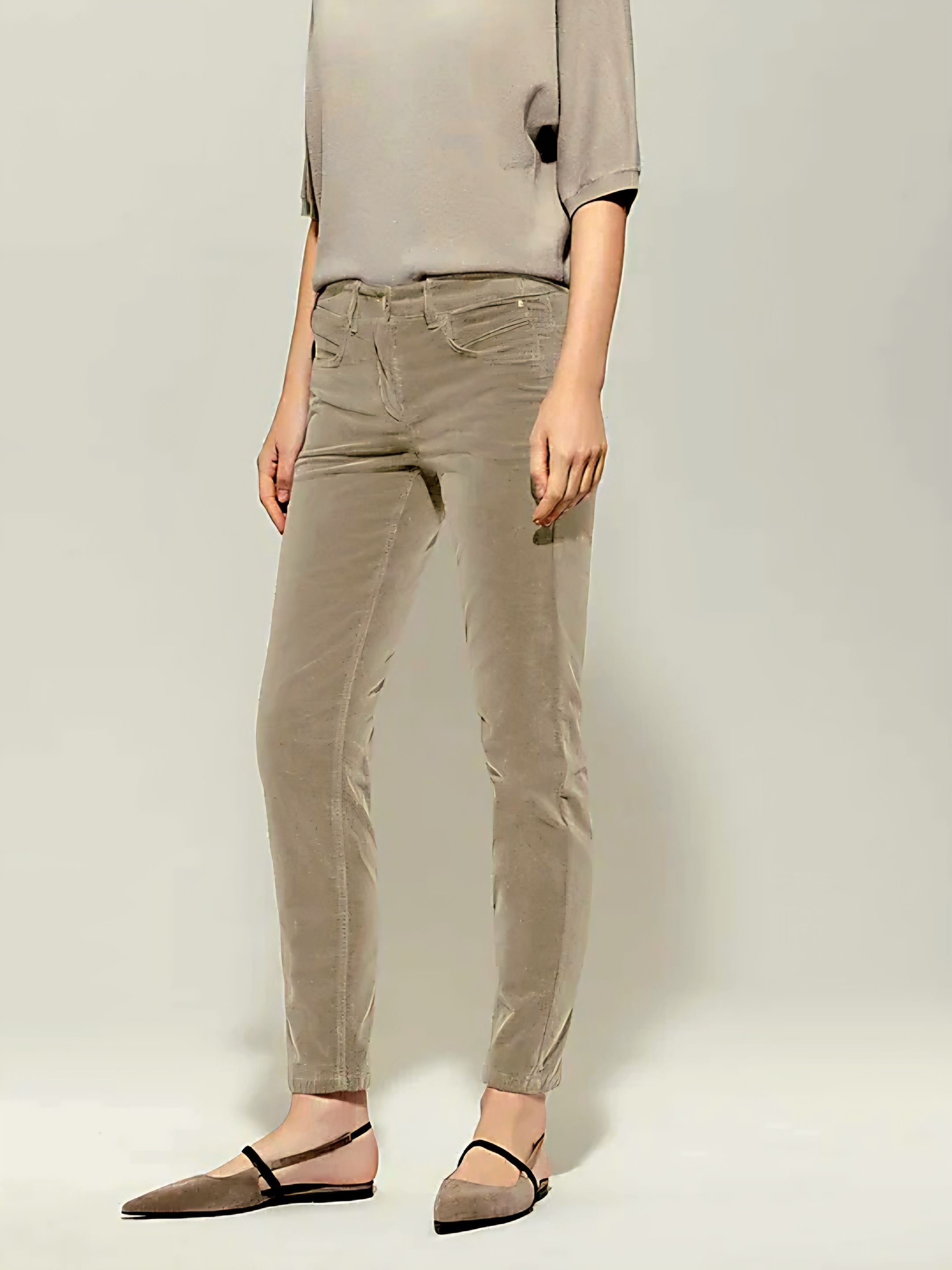Высокая эластичность и частично эластичный пояс делают эти брюки особенно удобными в носке.