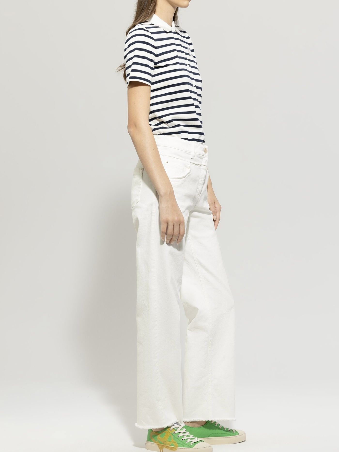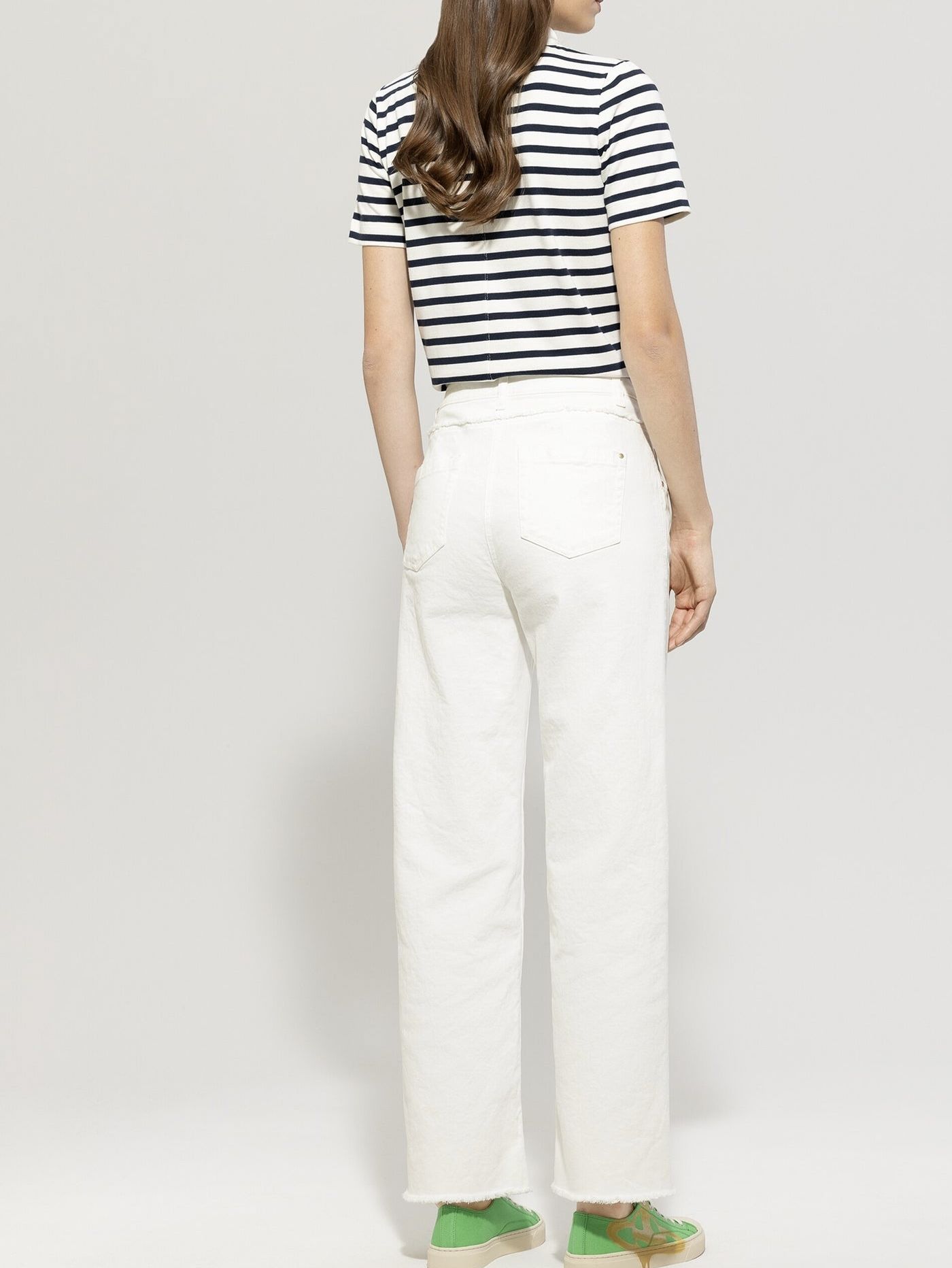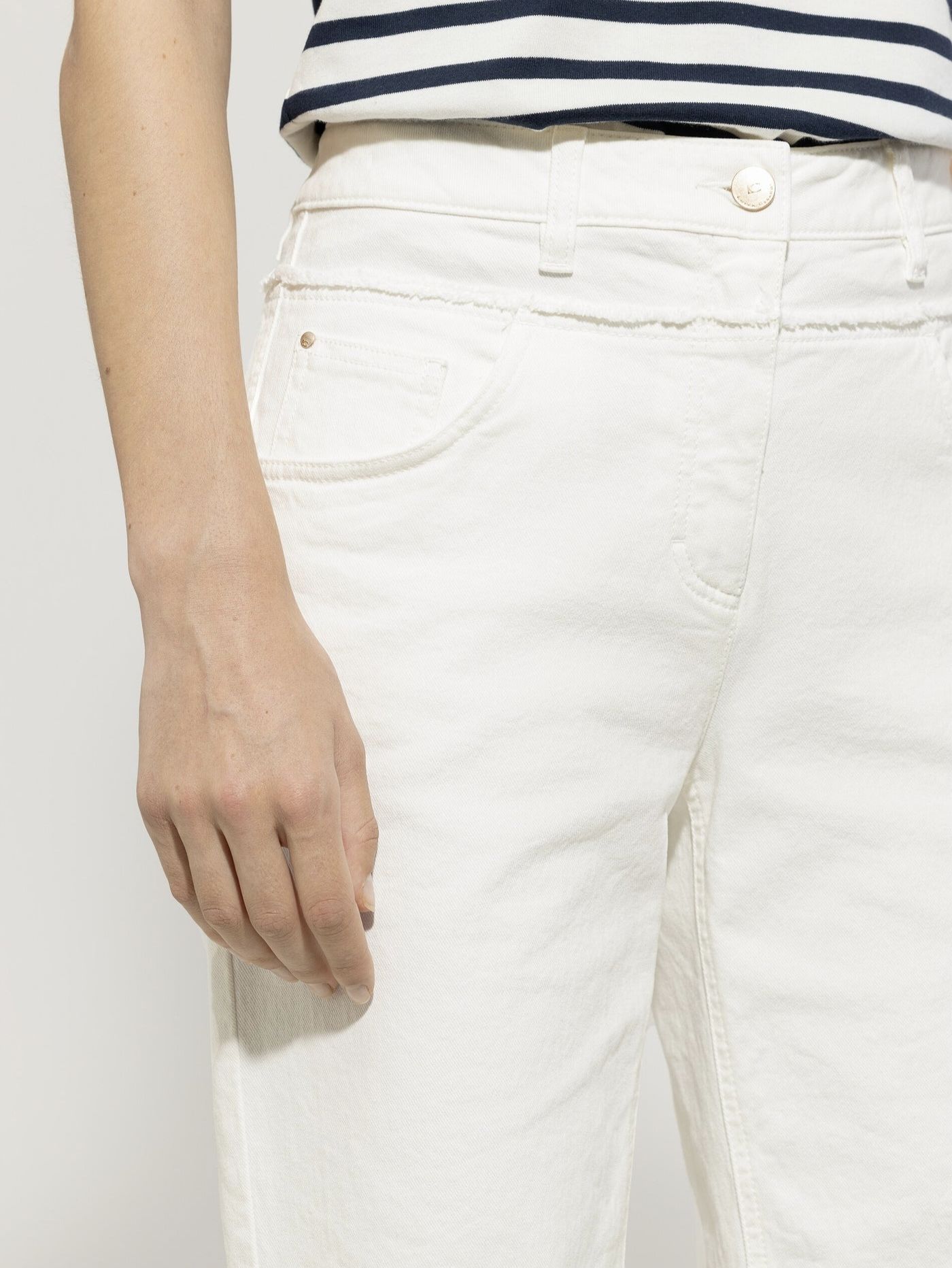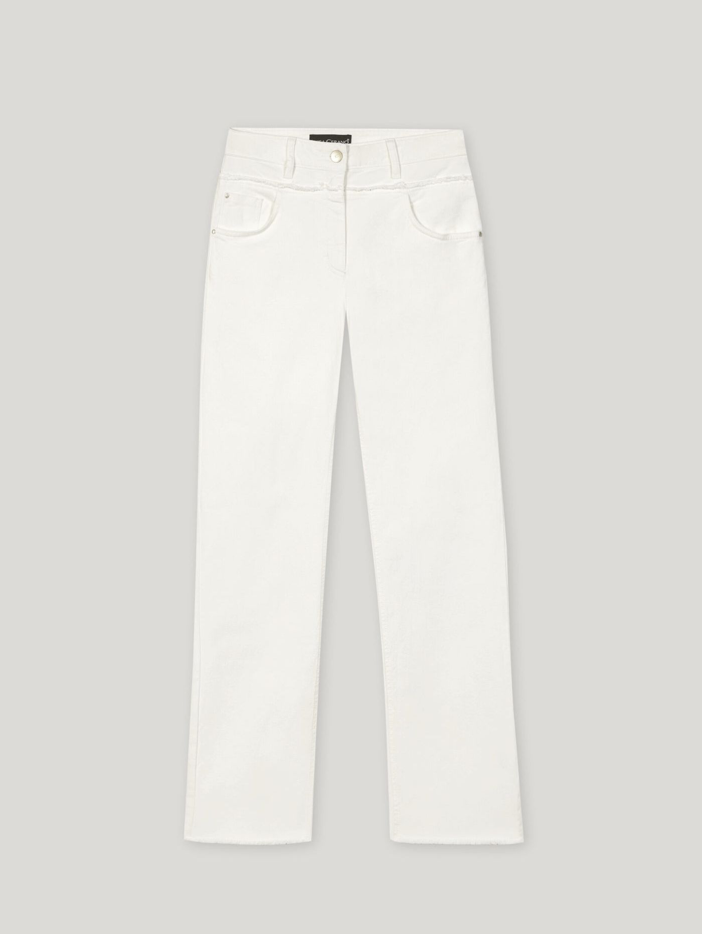 Прямые джинсовые брюки из прочного натурального денима с пятью карманами немецкого бренда Luisa Cerano.