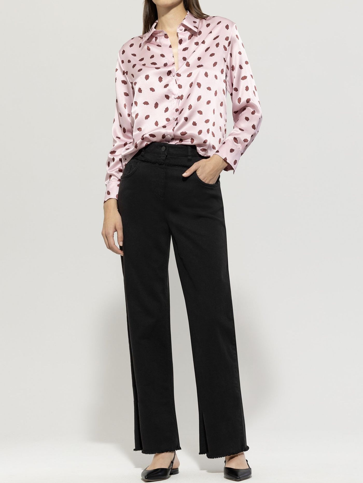 Бахрома по шву на поясе и открытый низ добавляют современный акцент.