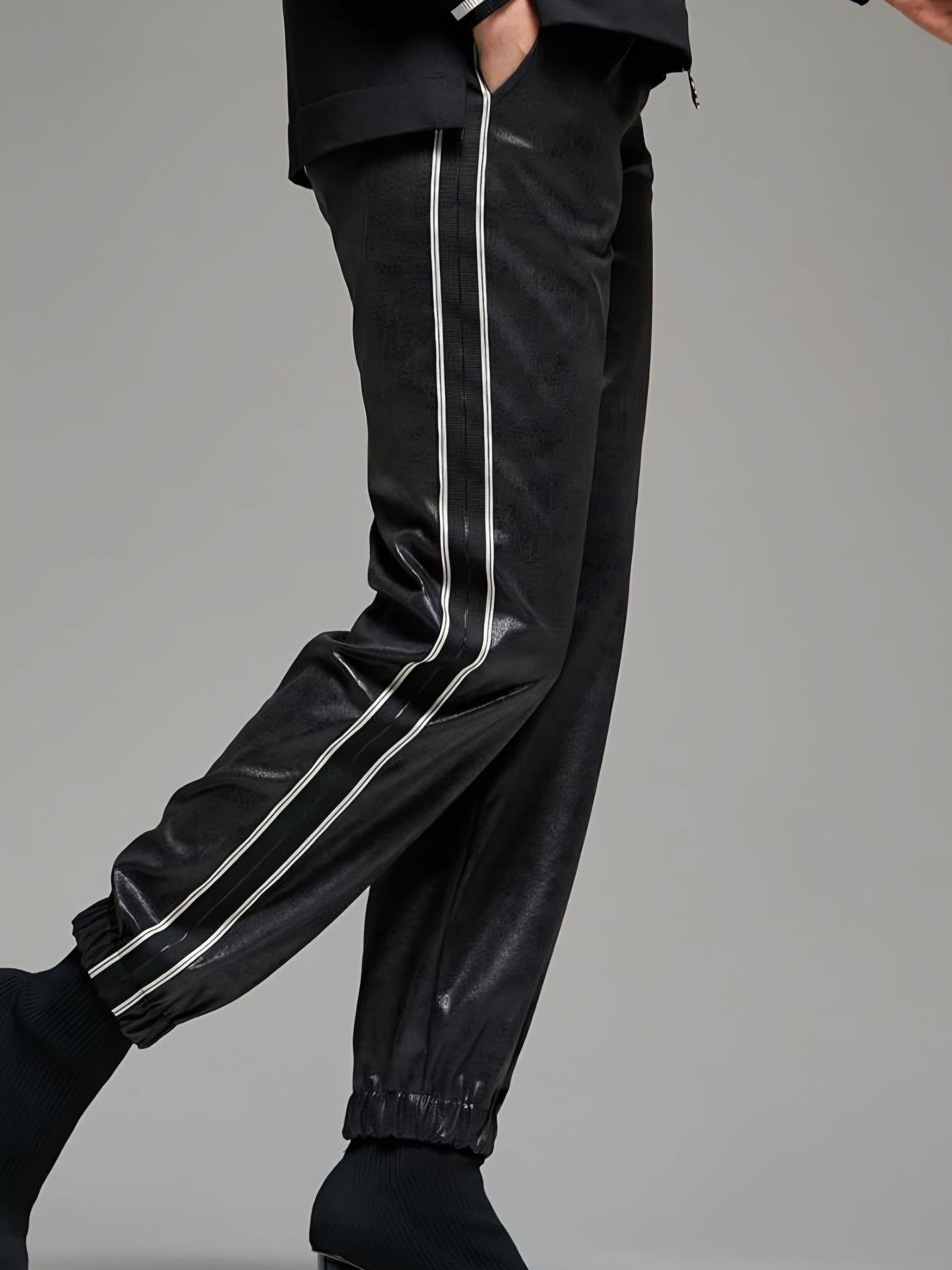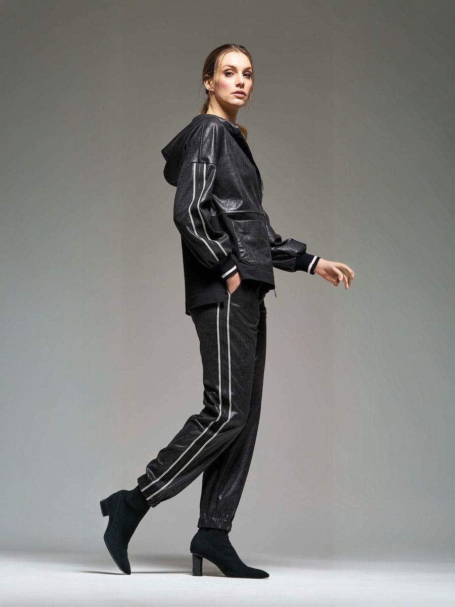 Женске брюки (джоггеры) из плотного, эластичного материала под "экокожу" с матовым блеском в стиле спорт-шик итальянского бренда Donne da Sogno.