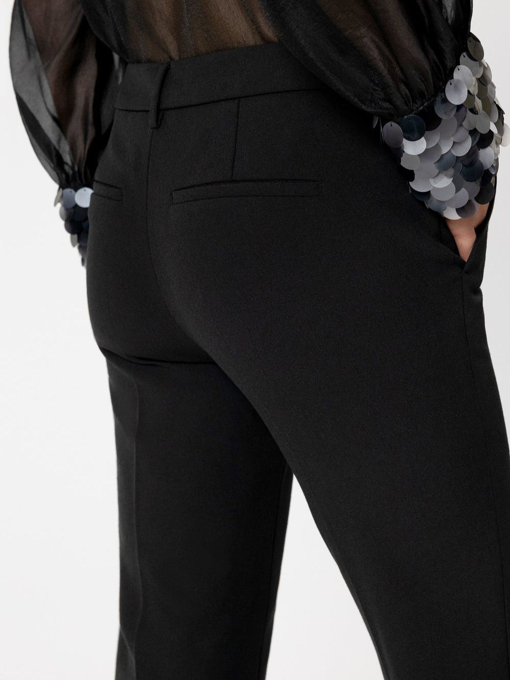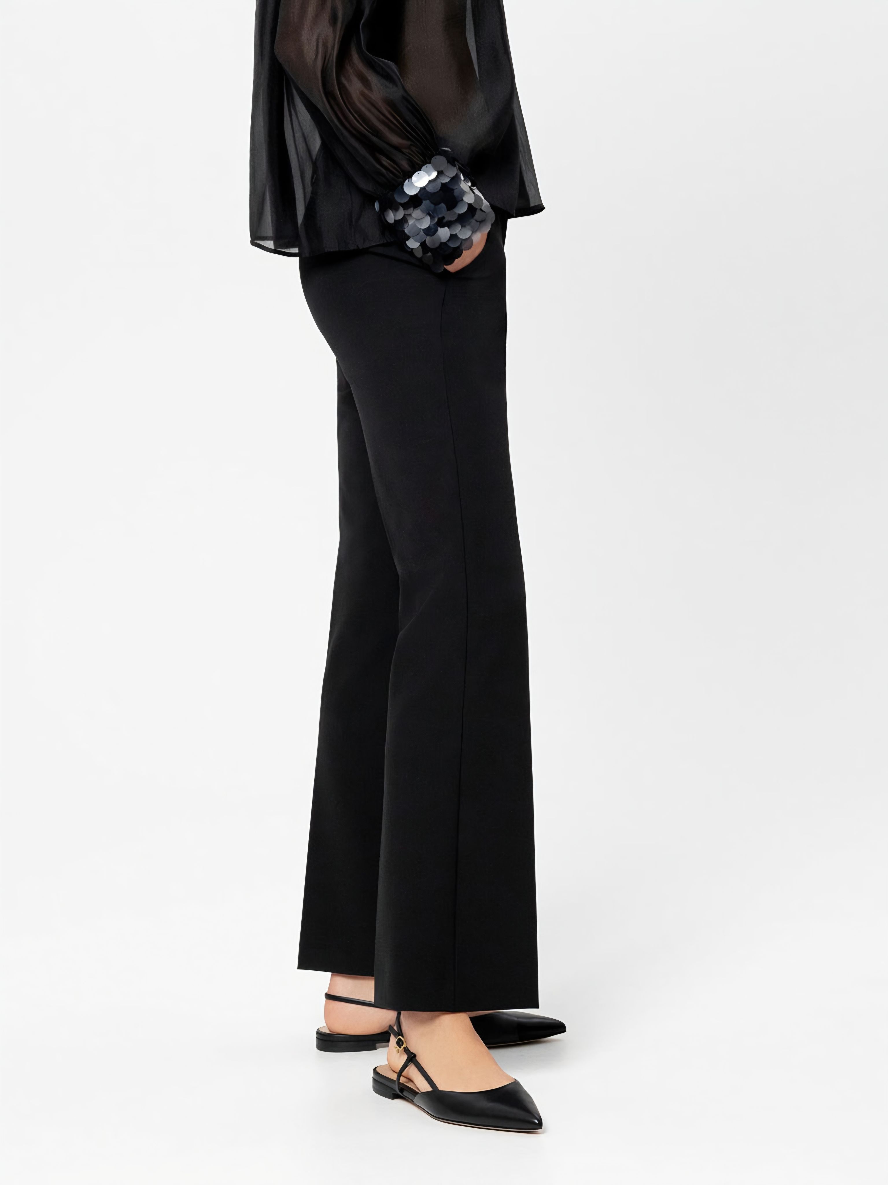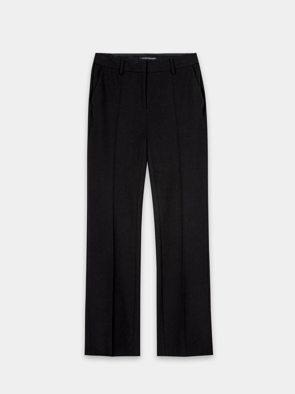 Приталенные расклешённые брюки из биэластичной техно-шерсти со стрелками немецкого бренда Luisa Cerano.